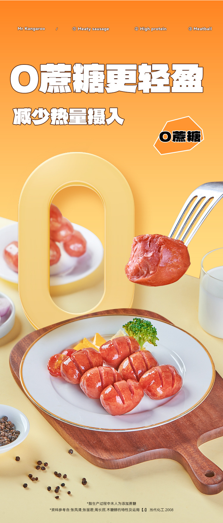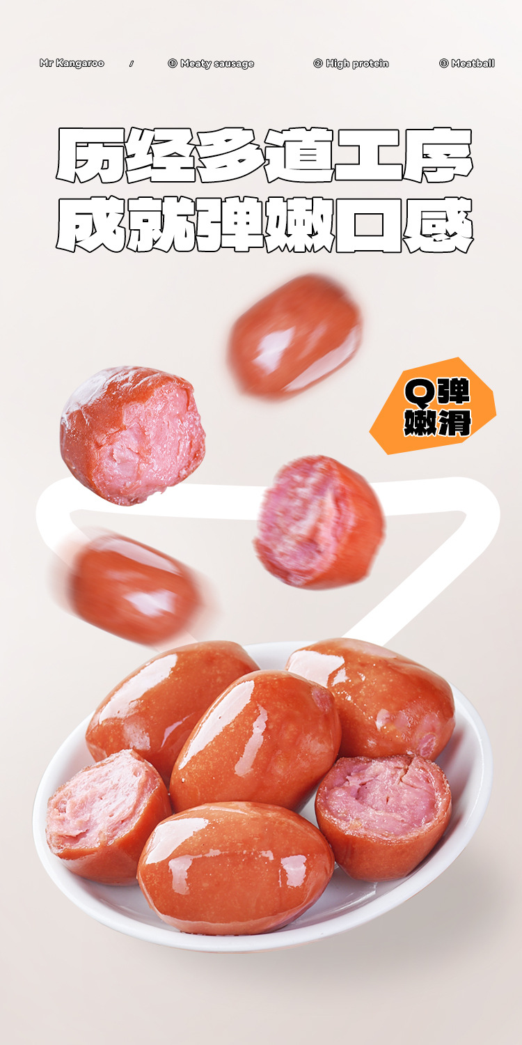 캥거루씨 바삭한 고기 소시지 바로 먹을 수 있는 치킨 소시지 식사 대용 간식 가벼운 음식 닭가슴살 소시지 햄 갈망해도 식사할 수 없는 날에 드세요