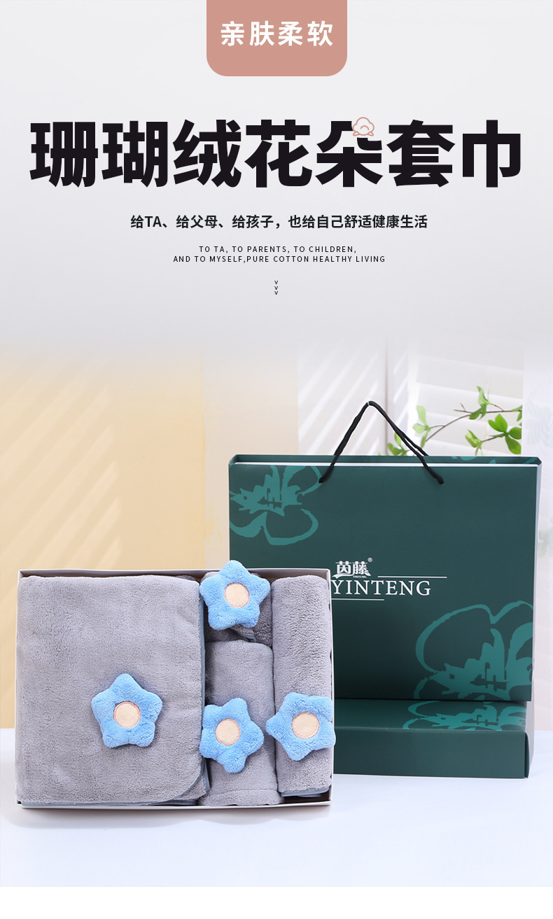 산호 양털 수건 목욕 수건 선물 상자 세트 로고 부드러운 물 흡수 4 종 세트 손 선물 회사 선물 타월스토어 가기