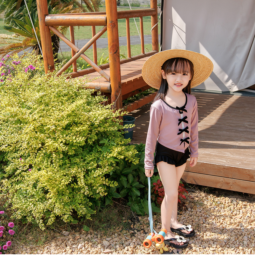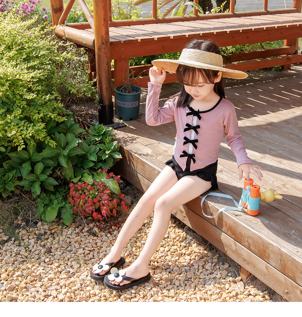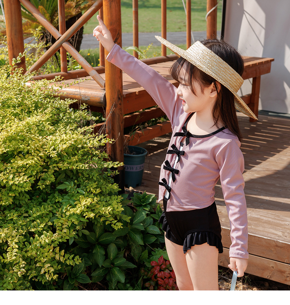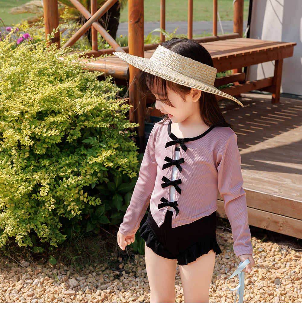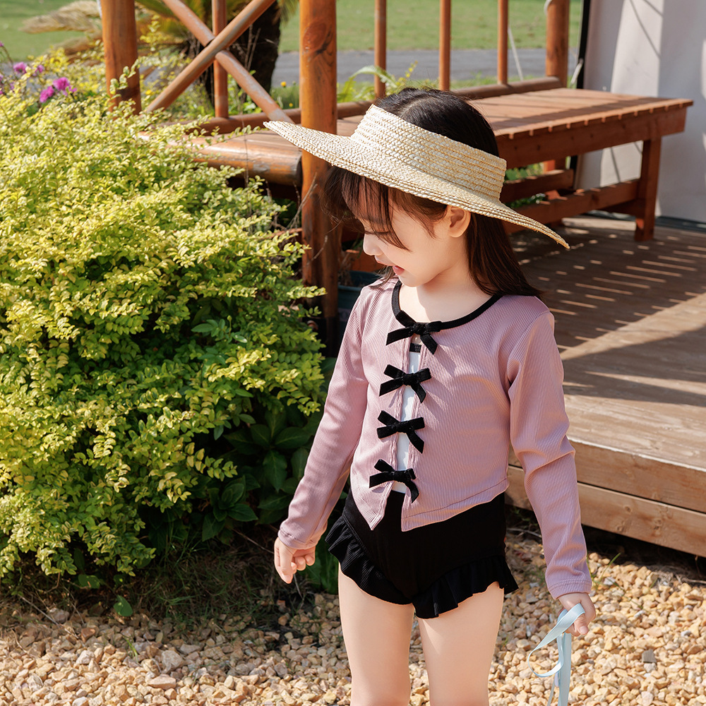 발레 여아 수영복 여아 2024 신제품 원피스 긴팔 보우 블라우스 온천방학 수영복스토어 가기