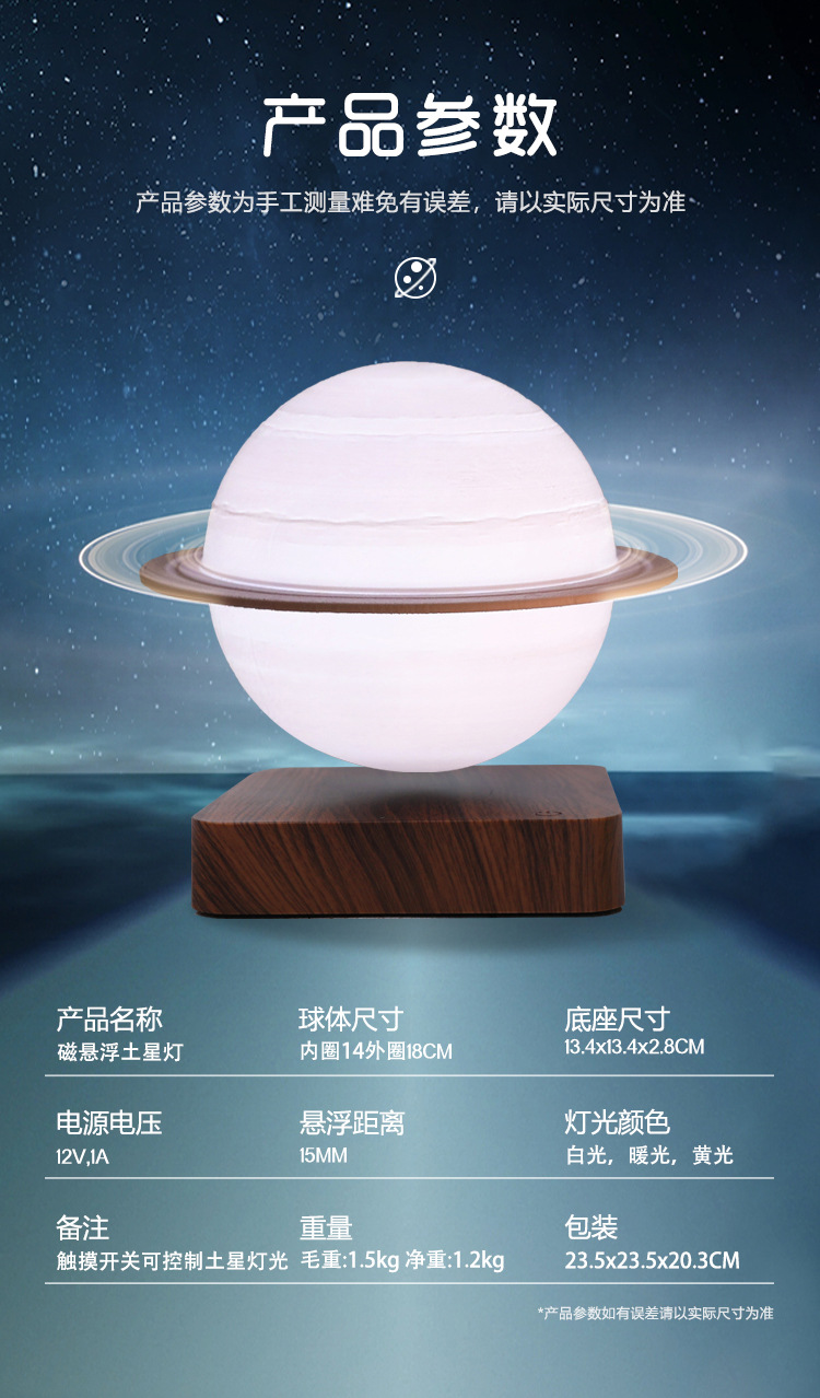 자기 서스펜션 토성 목성 램프 3D 통합 인쇄 창조적 인 장식 비즈니스 선물 소스 특허 도매 공급