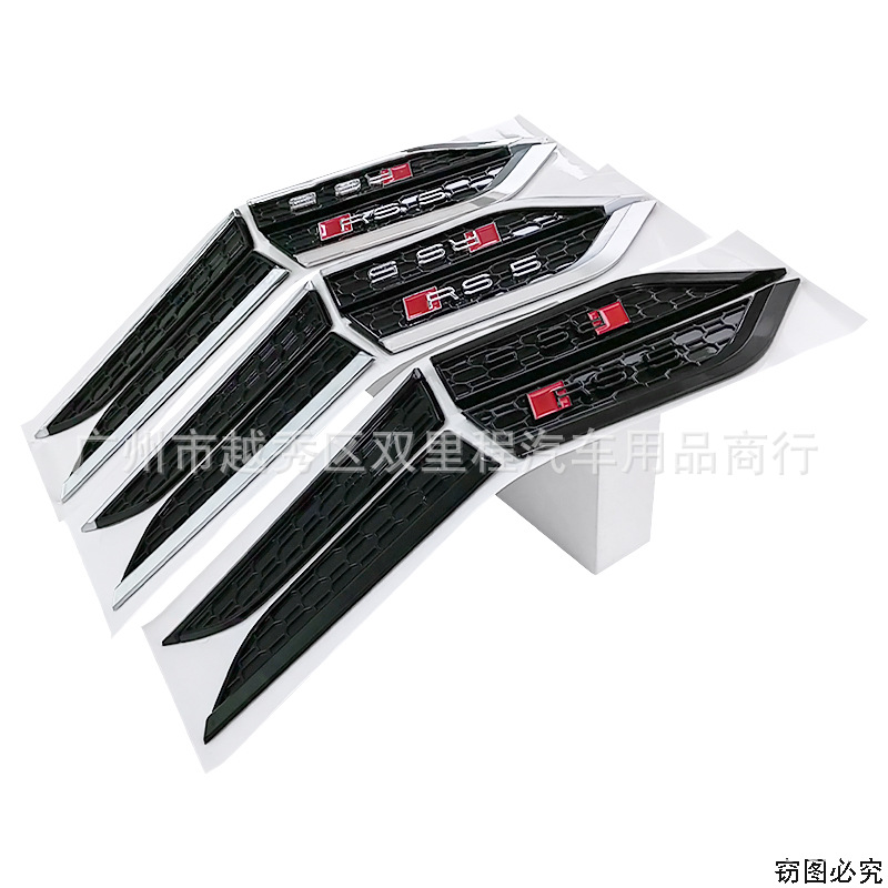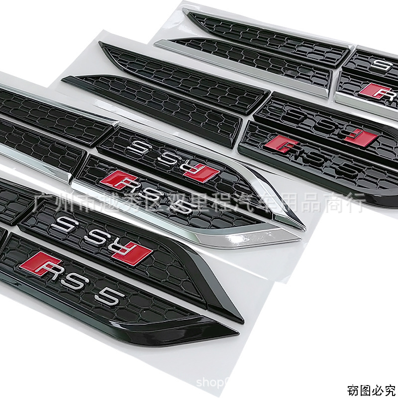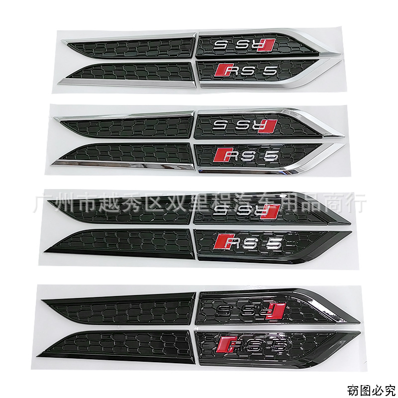 【产品名称】奥迪改装侧标RS5适用A5个性车贴黑武士风格原装亮黑ABS材质副厂标