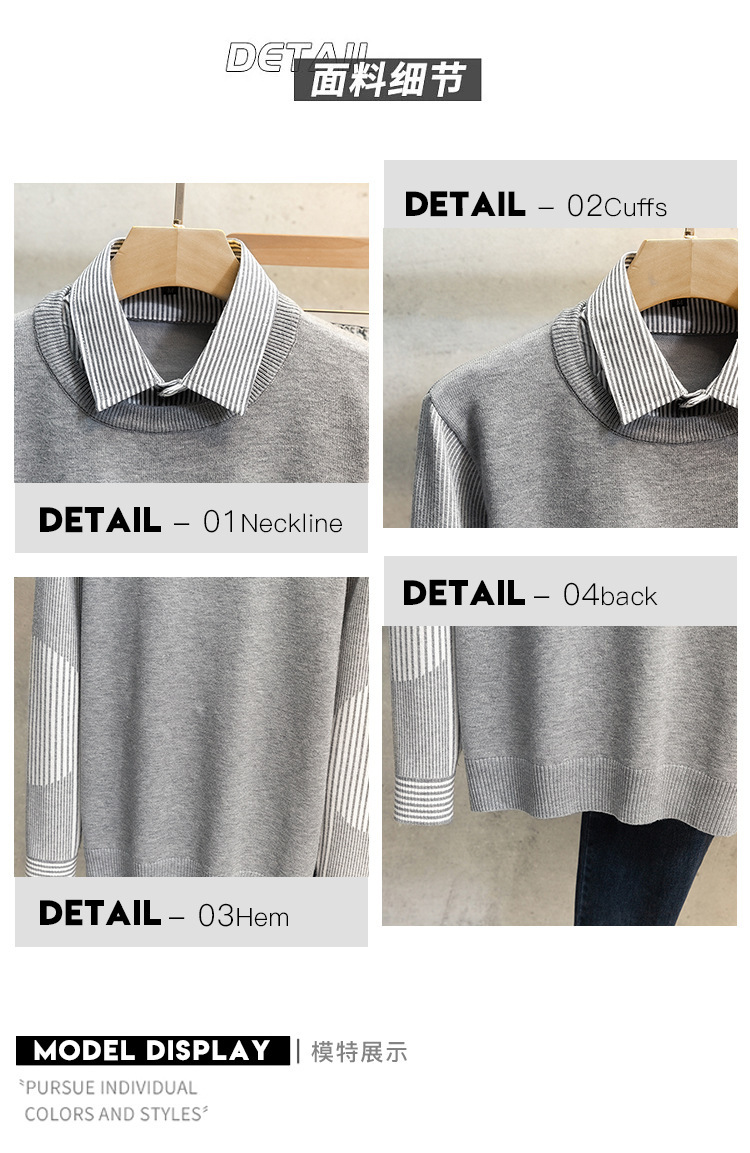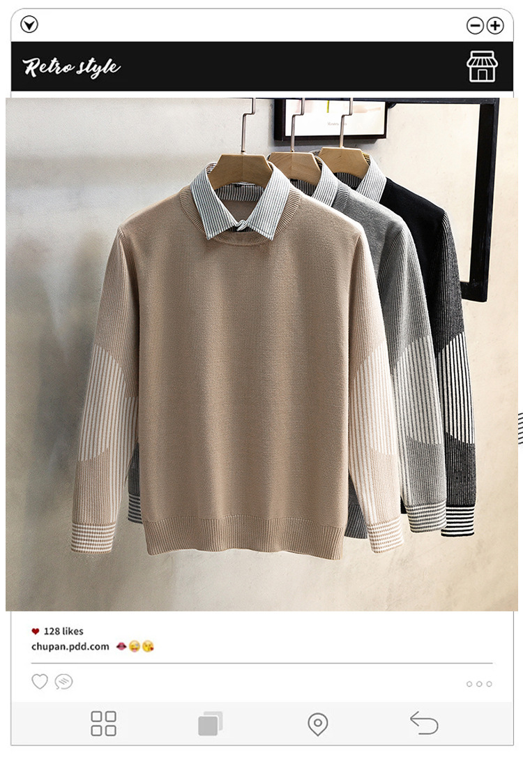 2024 가벼운 성숙한 스타일 셔츠 칼라 스웨터 남자의 가을과 겨울 일본식 가짜 투피스 스웨터 잘 생긴 캐주얼 스웨터스토어 가기