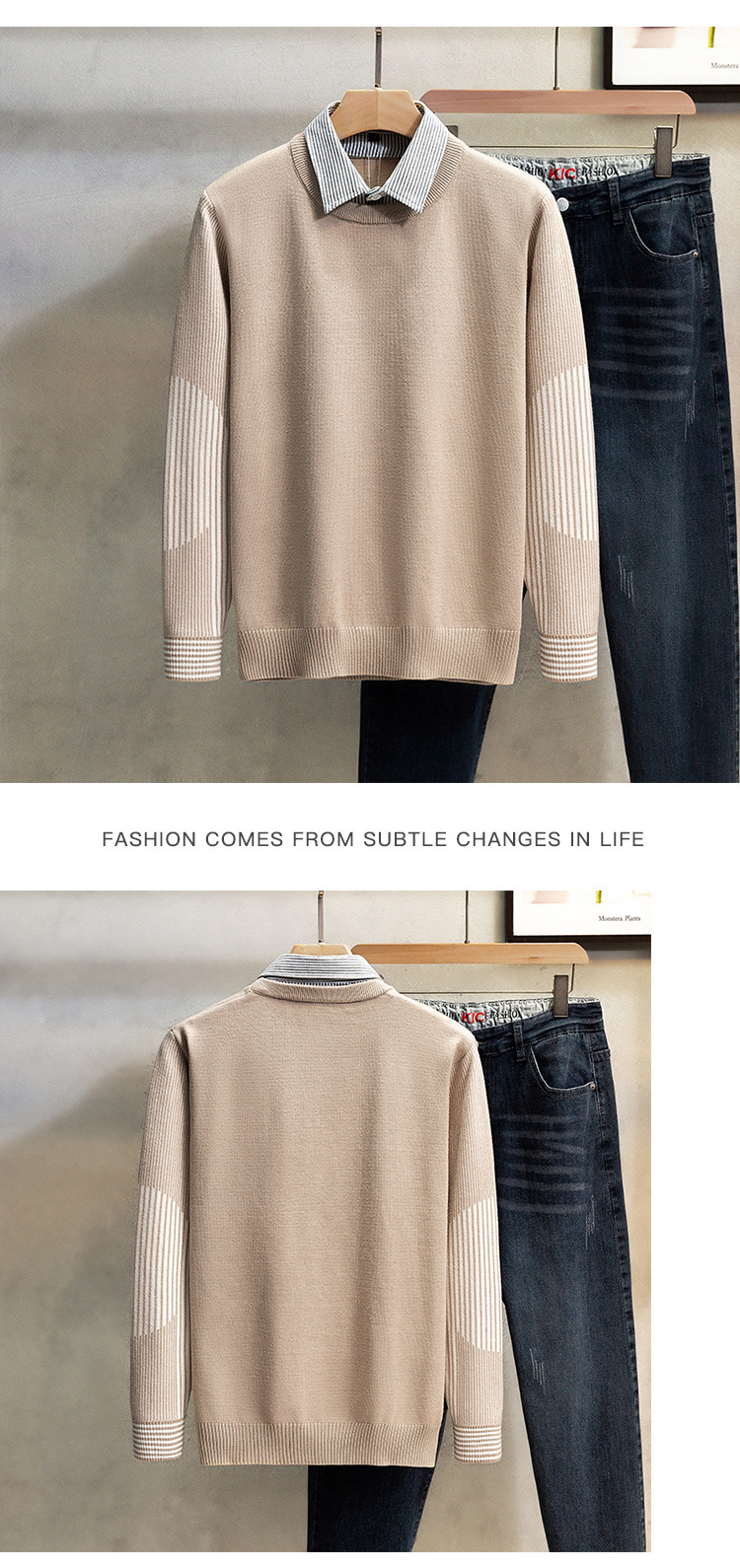 2024 가벼운 성숙한 스타일 셔츠 칼라 스웨터 남자의 가을과 겨울 일본식 가짜 투피스 스웨터 잘 생긴 캐주얼 스웨터