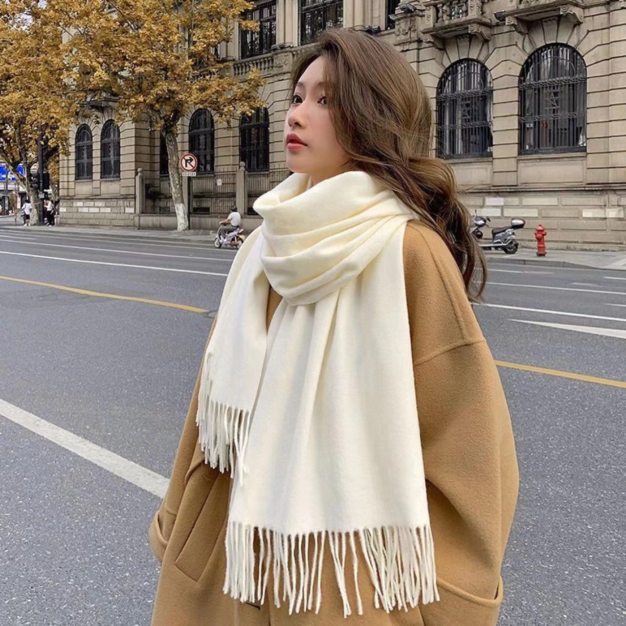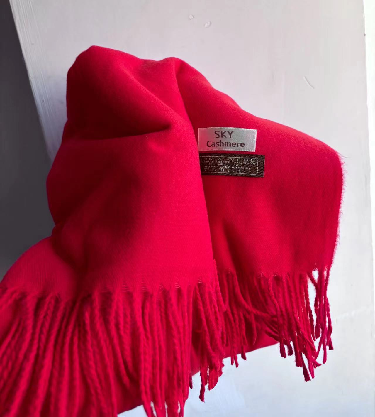 SKY 캐시미어 스카프 가시 머리 210g 두꺼운 단색 술 스카프 한국어 버전 목도리 빨간색 가시 머리 스카프 도매스토어 가기