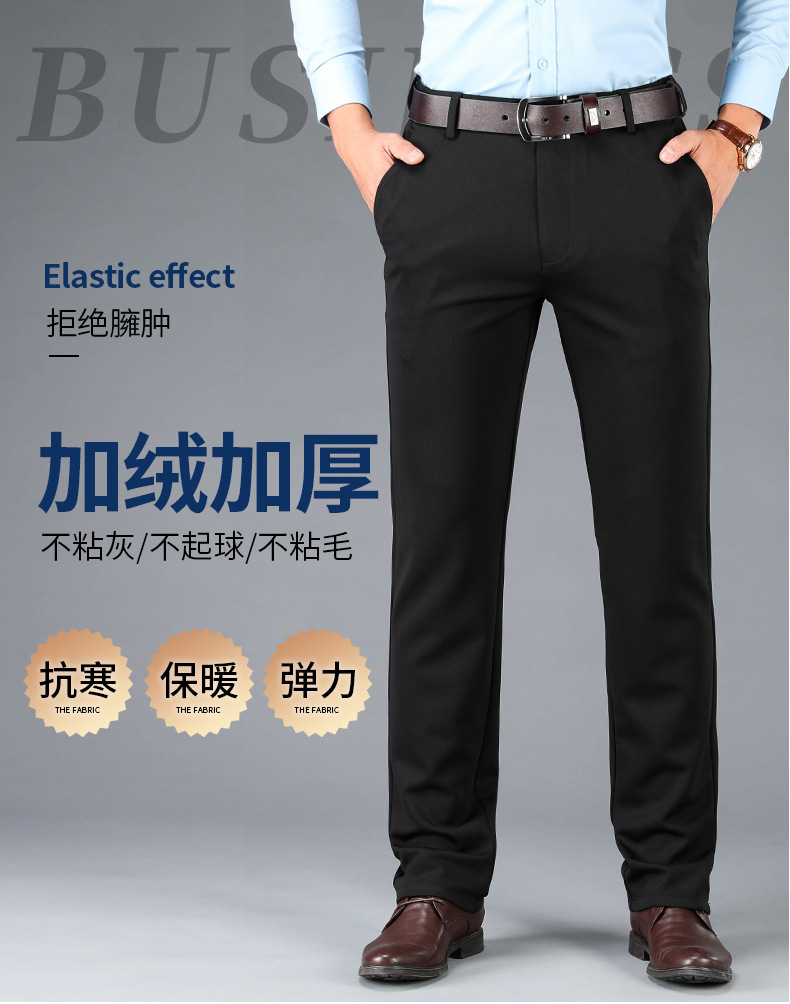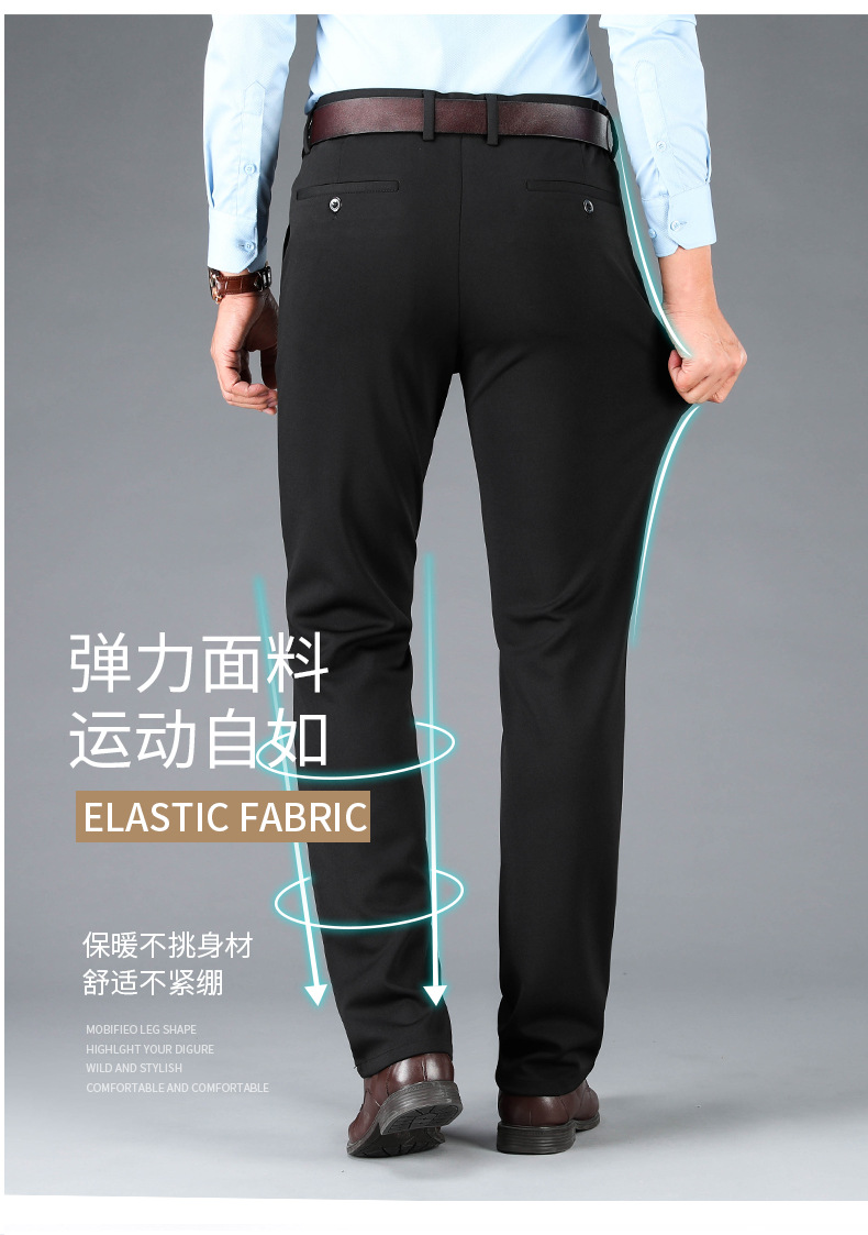 봄과 여름 새로운 스트레치 아이스 실크 바지 캐주얼 남자 바지 기모 남자 바지 뚱뚱한 플러스 사이즈 중년 남자 스트레이트 바지