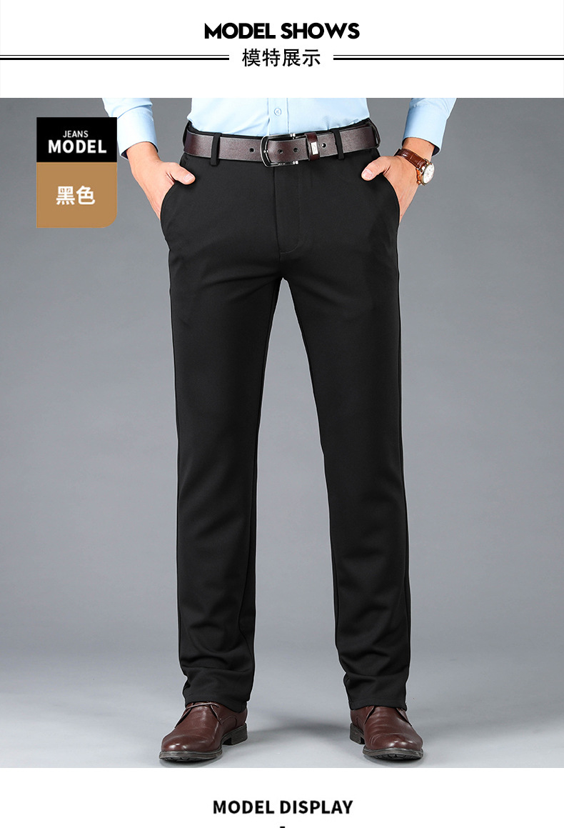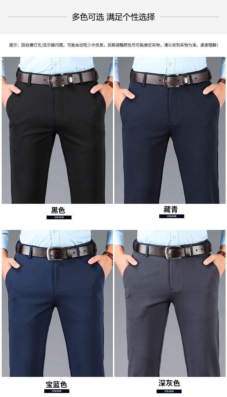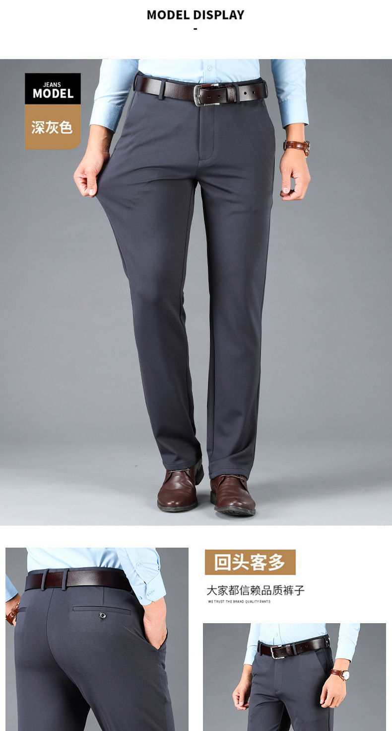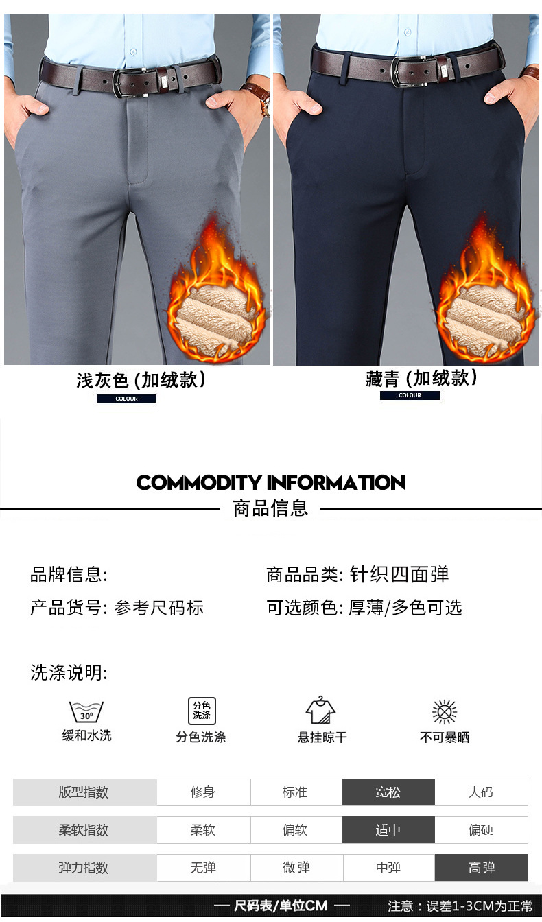 봄과 여름 새로운 스트레치 아이스 실크 바지 캐주얼 남자 바지 기모 남자 바지 뚱뚱한 플러스 사이즈 중년 남자 스트레이트 바지스토어 가기