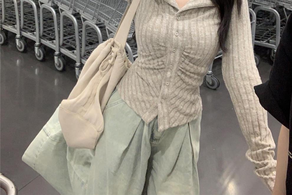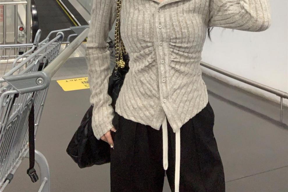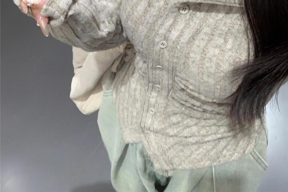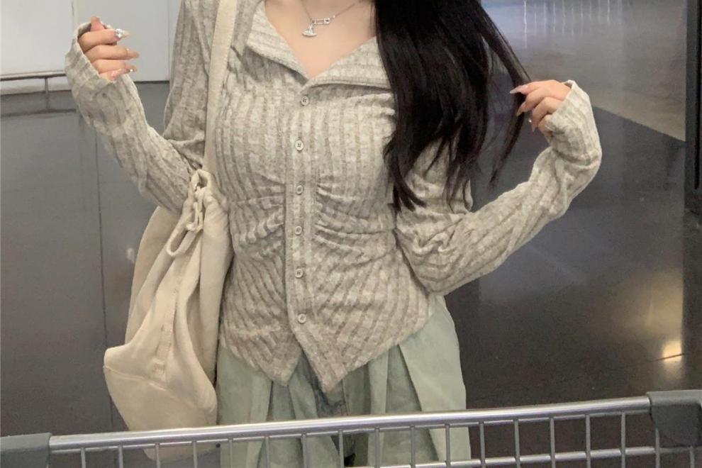 새로운 패션 하프 오픈 칼라 단색 여성의 가을 싱글 브레스트 카디건 탑 타이트 스트레치 불규칙한 밑단 작은 셔츠스토어 가기