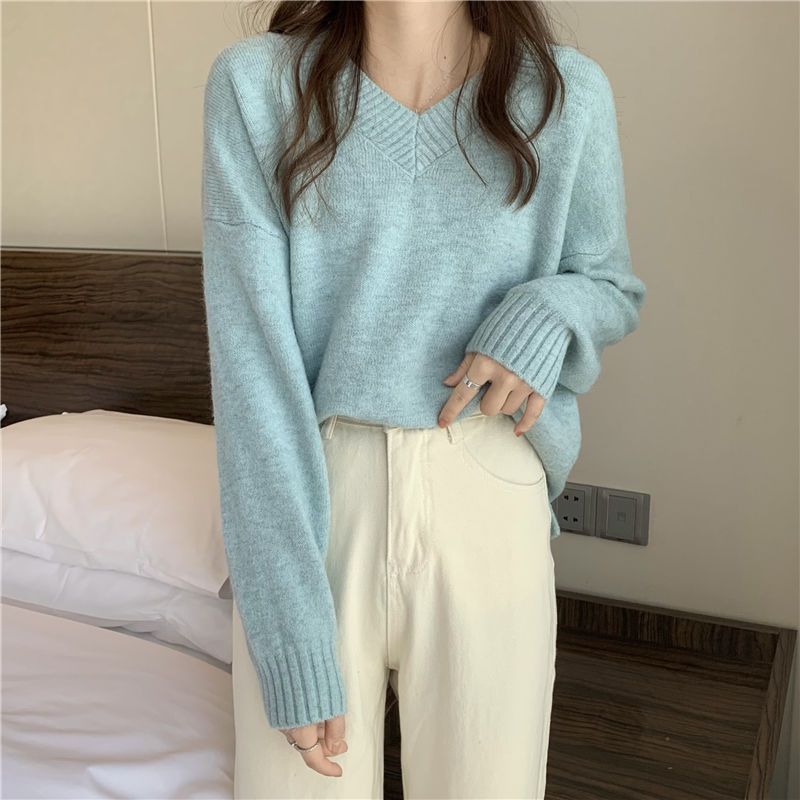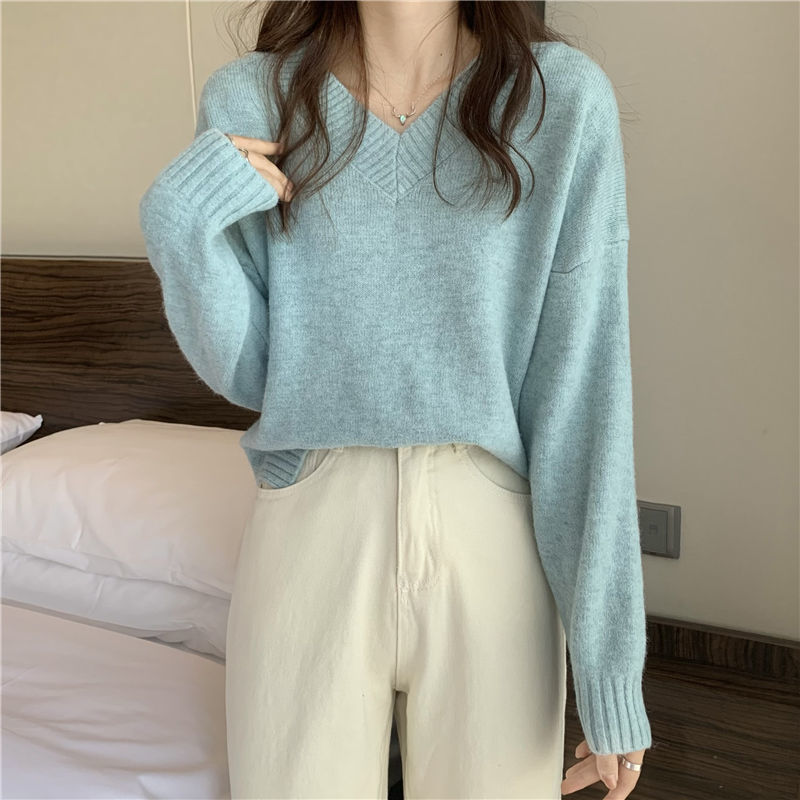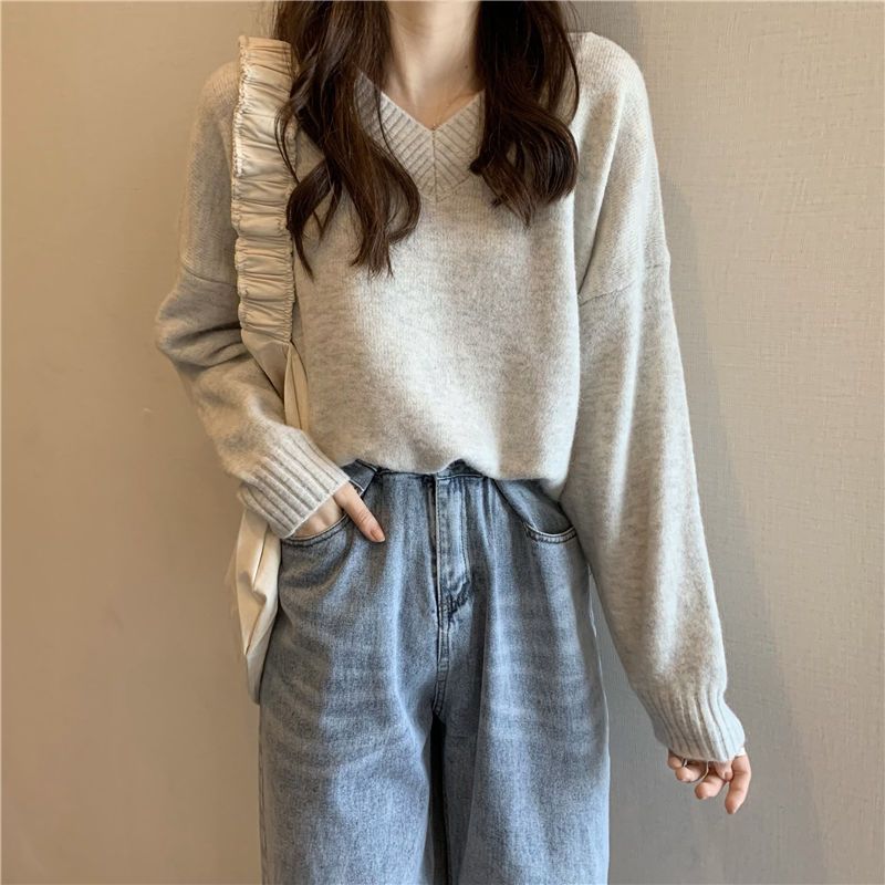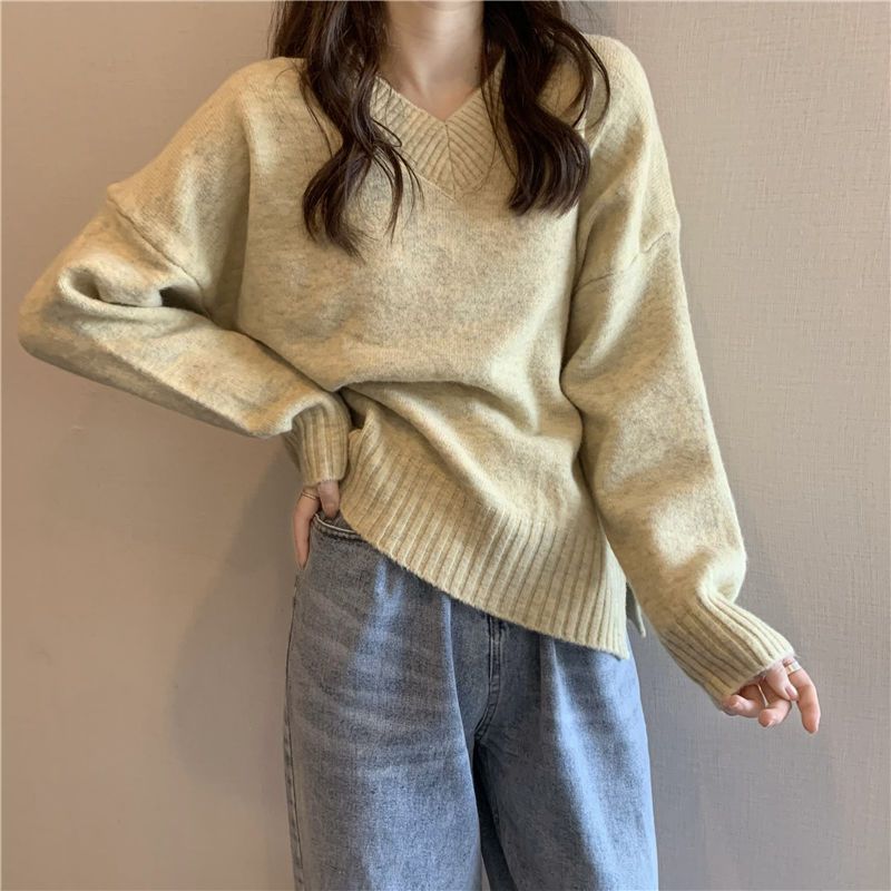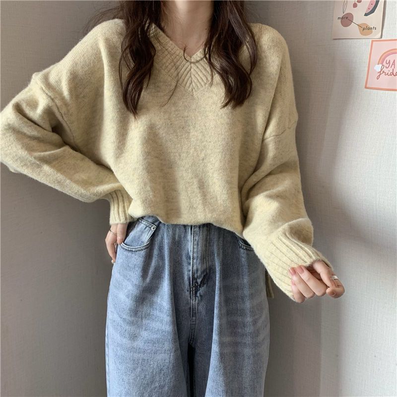 신상 한국 스타일 브이넥 순수하고 섹시한 고급 니트 스웨터 2024 방한 부드럽고 달콤한 루즈핏 니트웨어스토어 가기