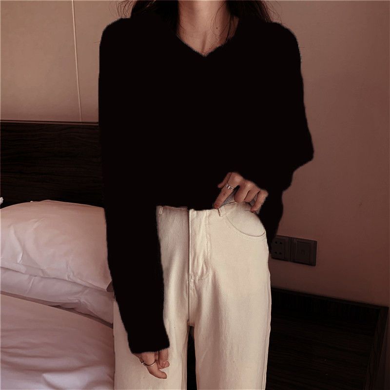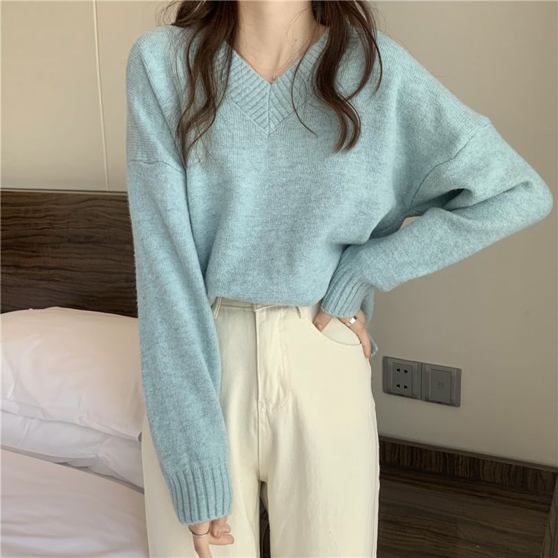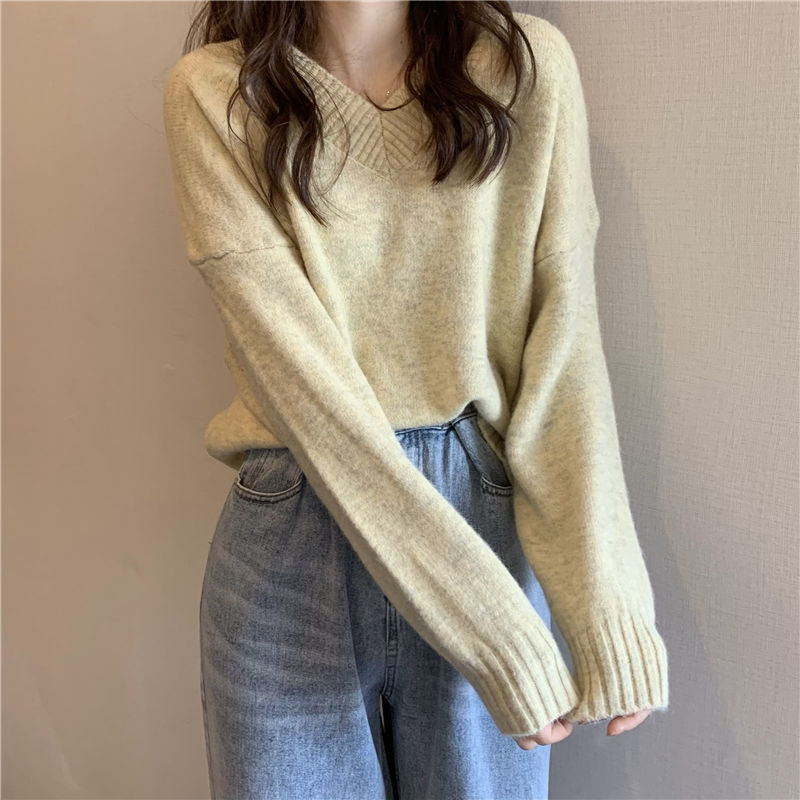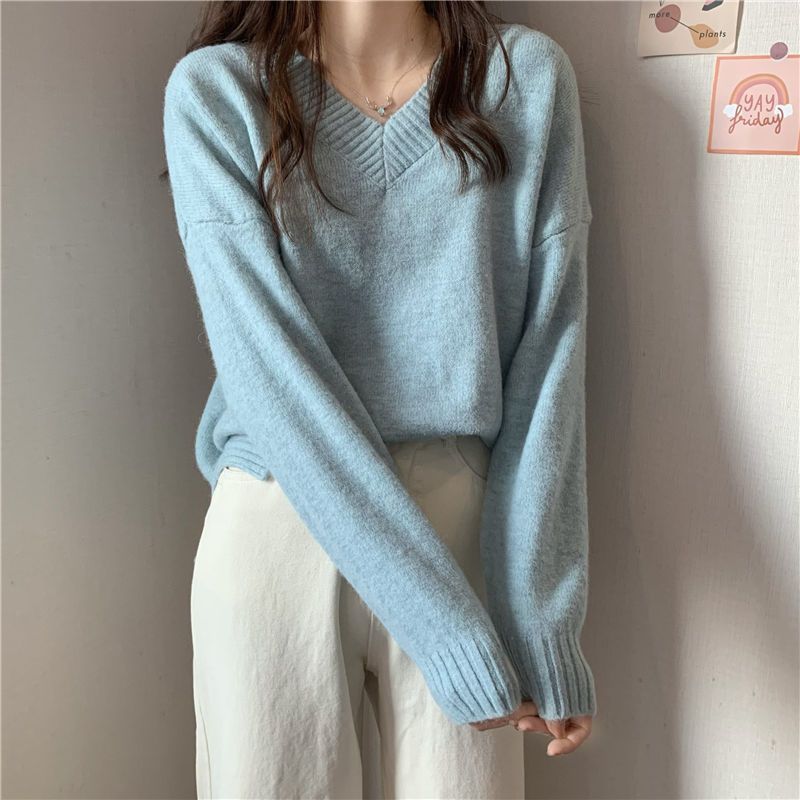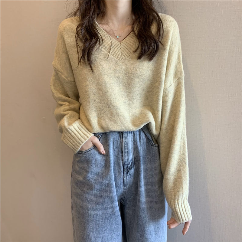 신상 한국 스타일 브이넥 순수하고 섹시한 고급 니트 스웨터 2024 방한 부드럽고 달콤한 루즈핏 니트웨어스토어 가기