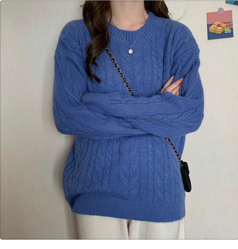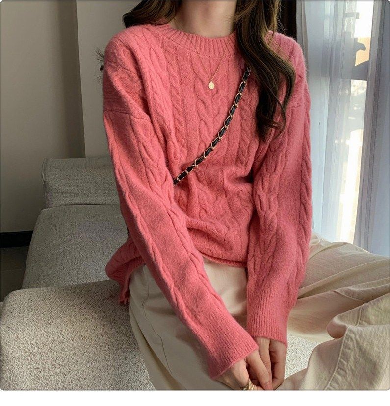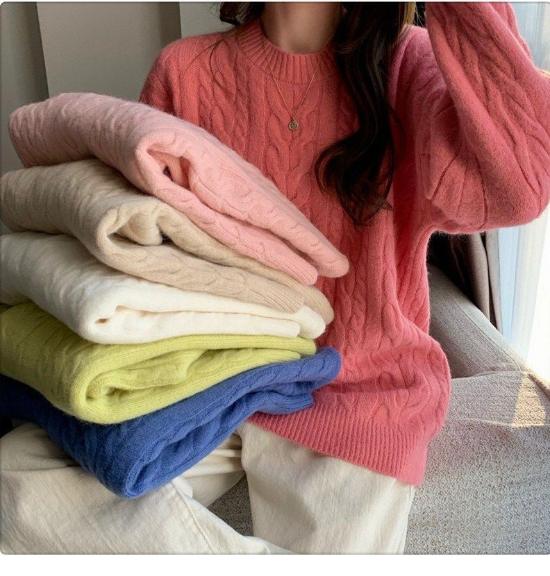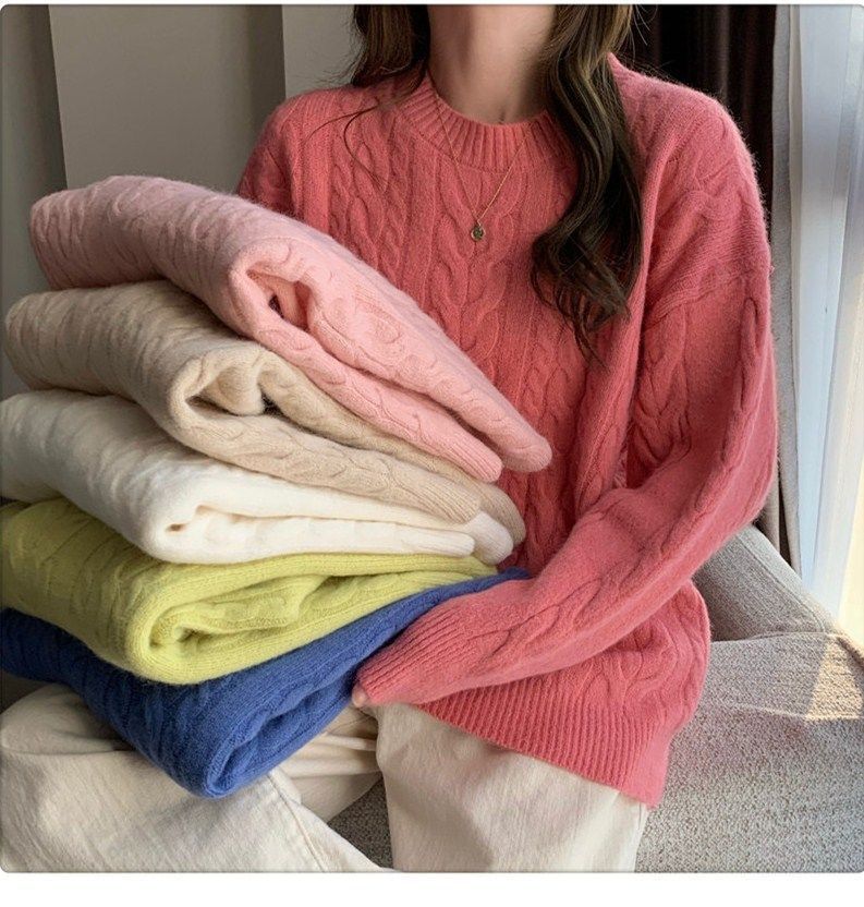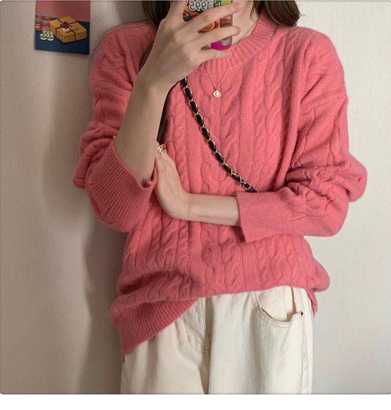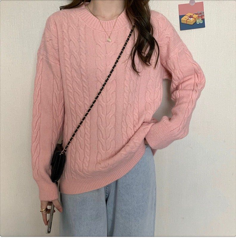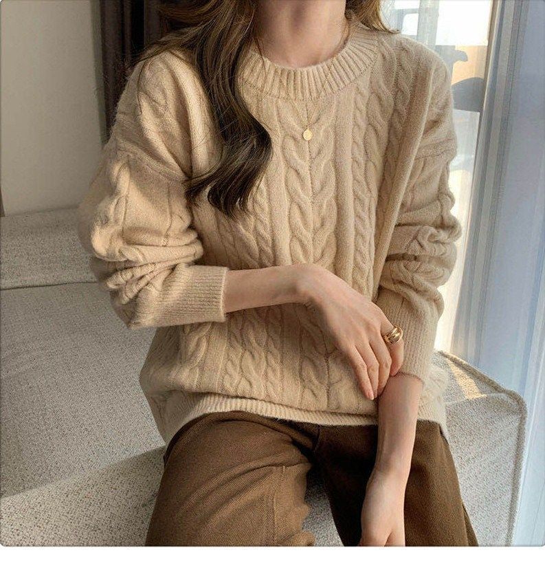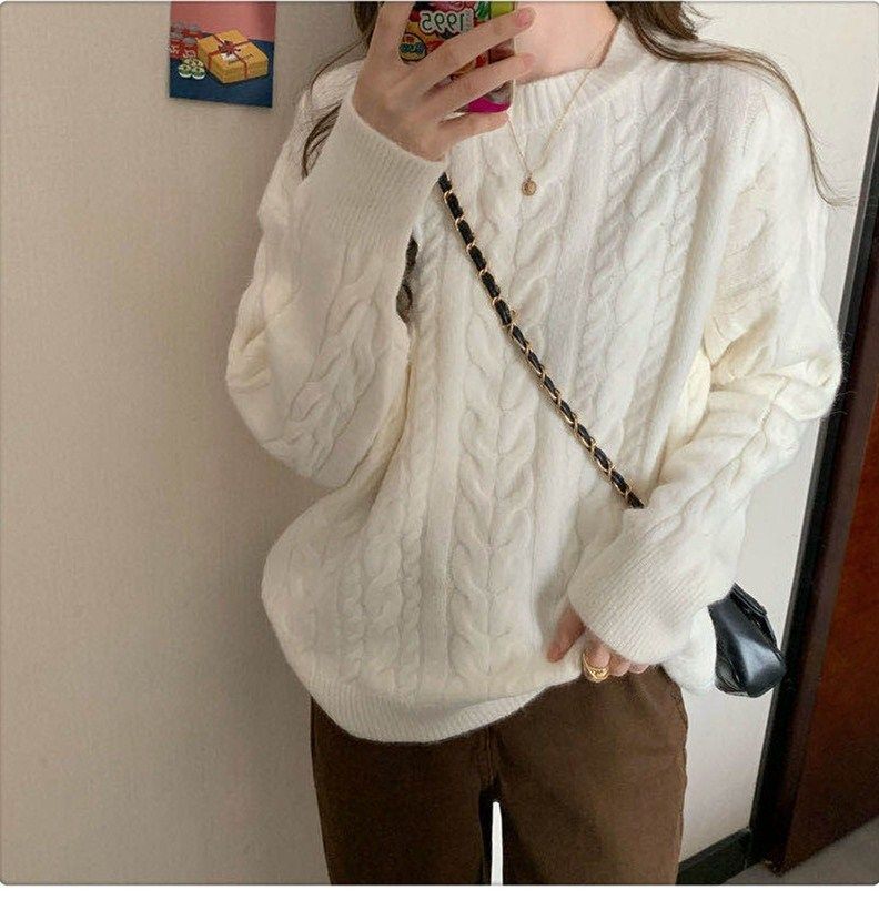 한국 스타일 인기 만점 다용도 루즈핏 니트 베이직 스웨터 2024 가을 겨울 스타일 작은 사이즈 스트레이트 풀오버 꼬임 니트 여성용스토어 가기