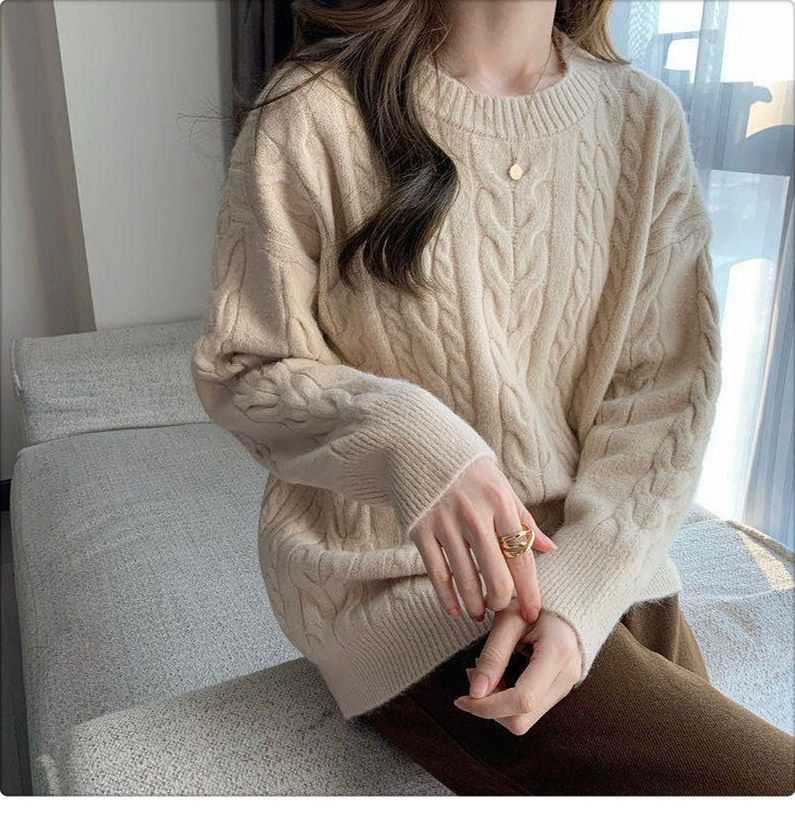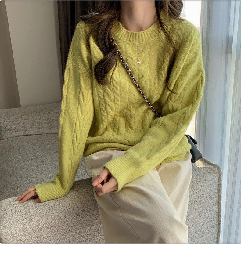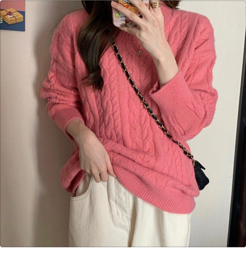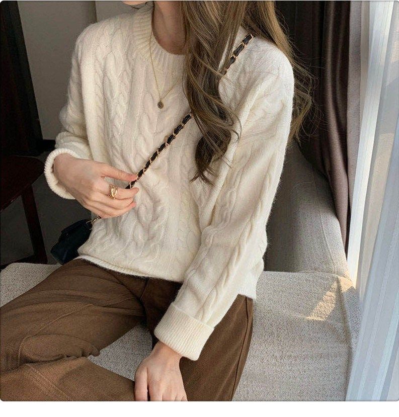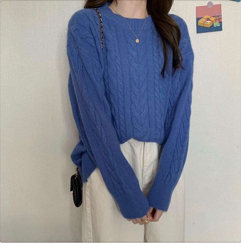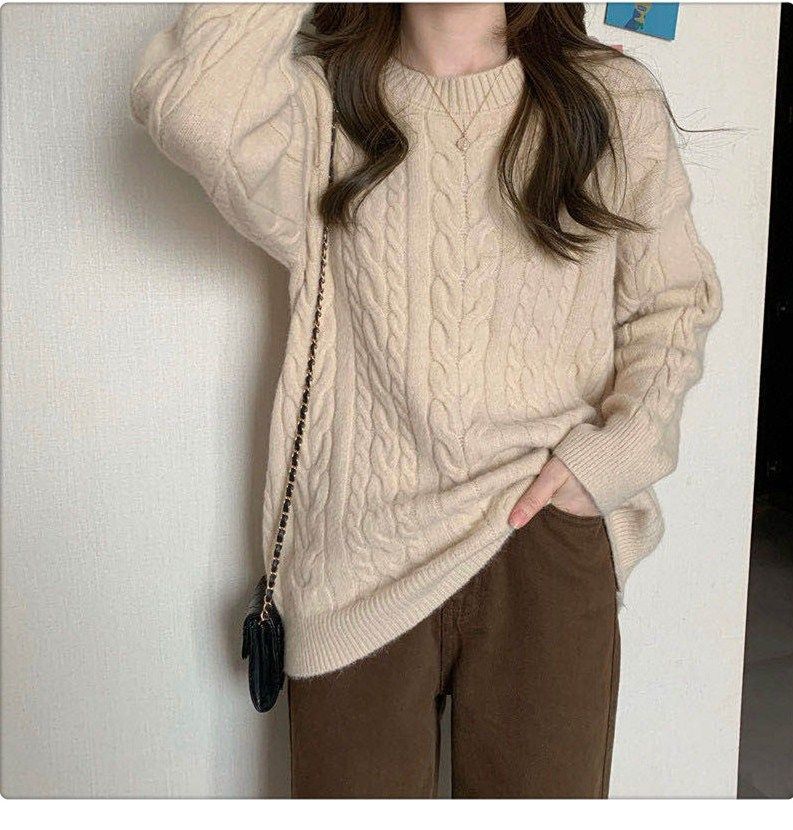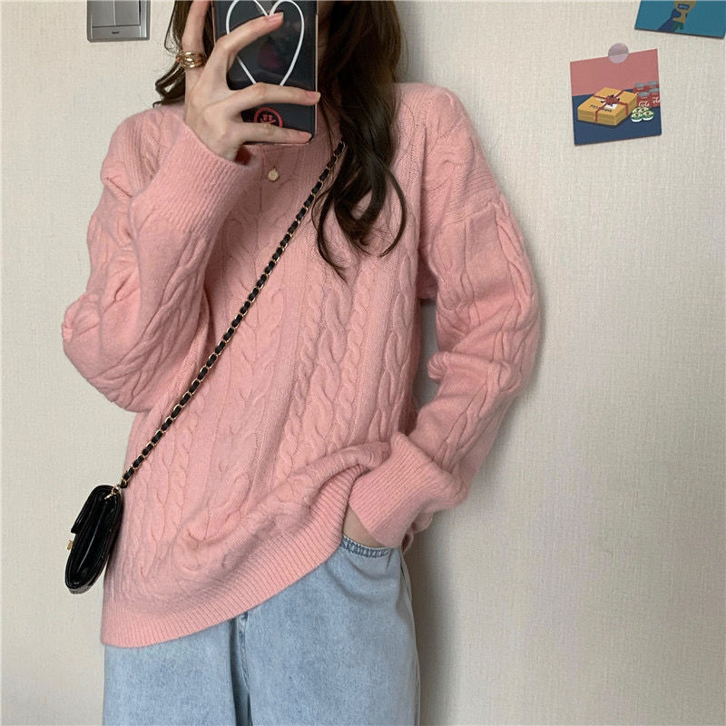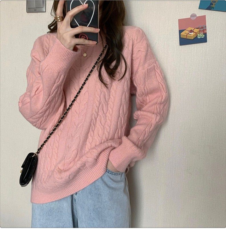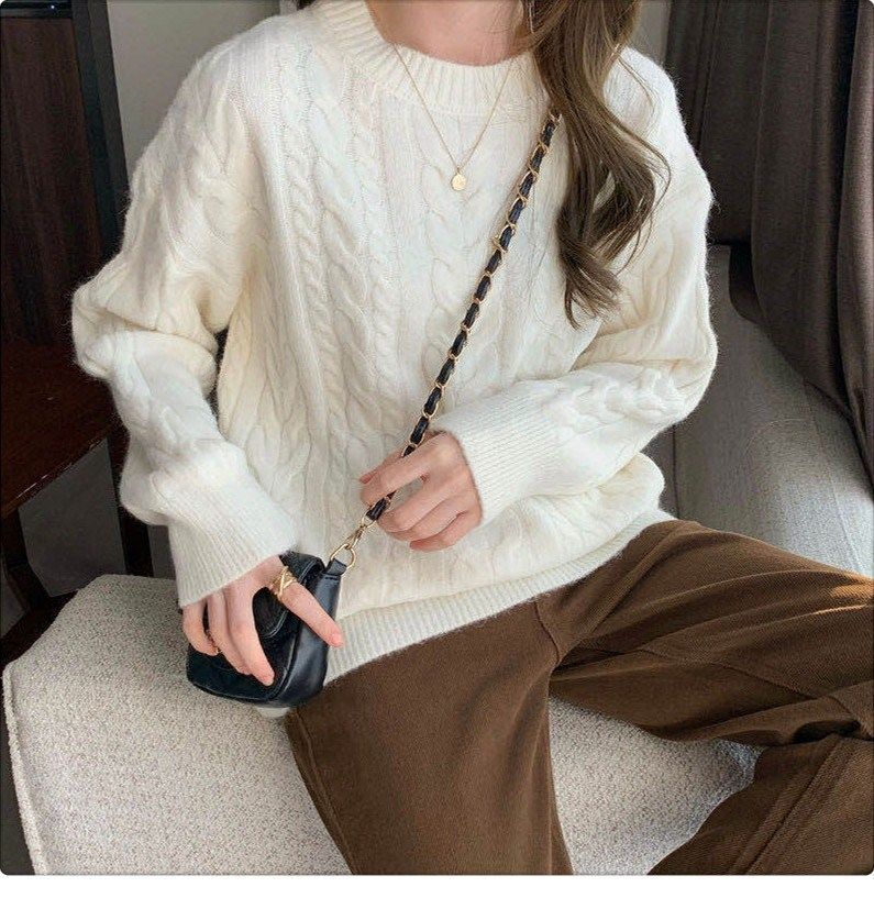 한국 스타일 인기 만점 다용도 루즈핏 니트 베이직 스웨터 2024 가을 겨울 스타일 작은 사이즈 스트레이트 풀오버 꼬임 니트 여성용스토어 가기