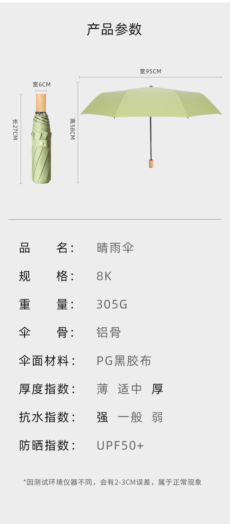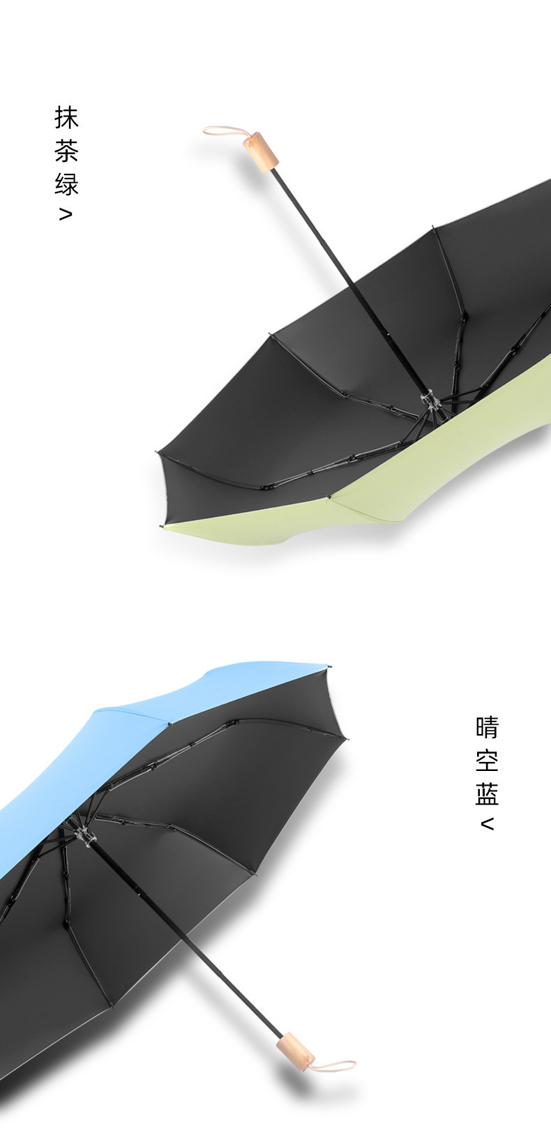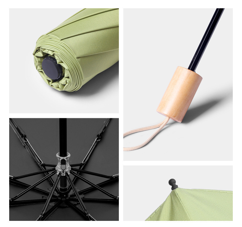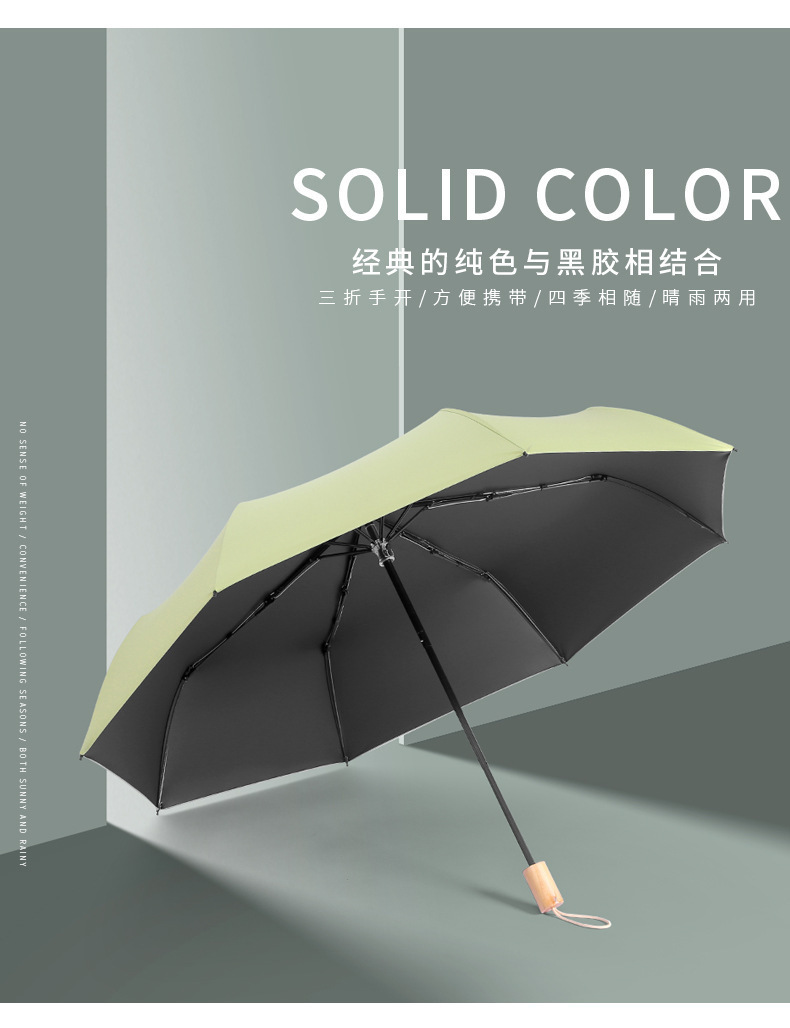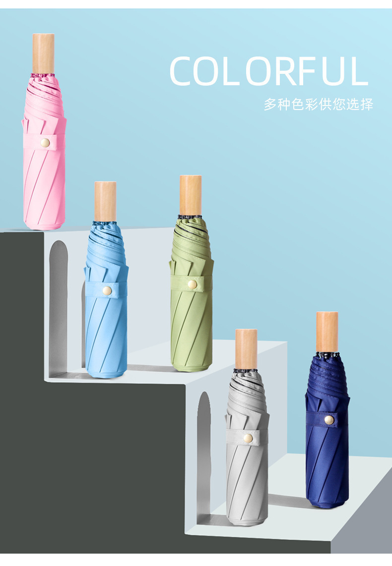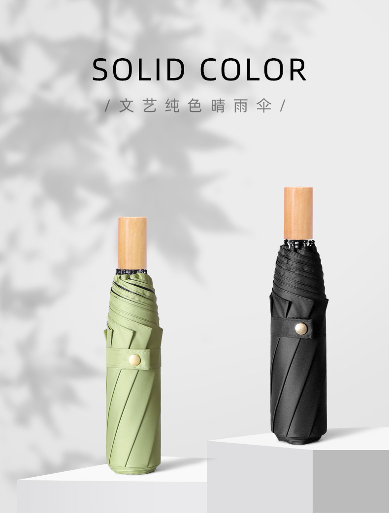 3 개의 접는 검은 고무 단단한 나무 손잡이 학생 여자의 맑은 우산 작은 신선한 패션 태양 우산 간단한 고가 우산스토어 가기