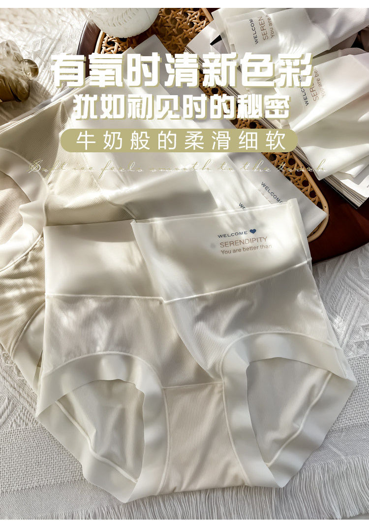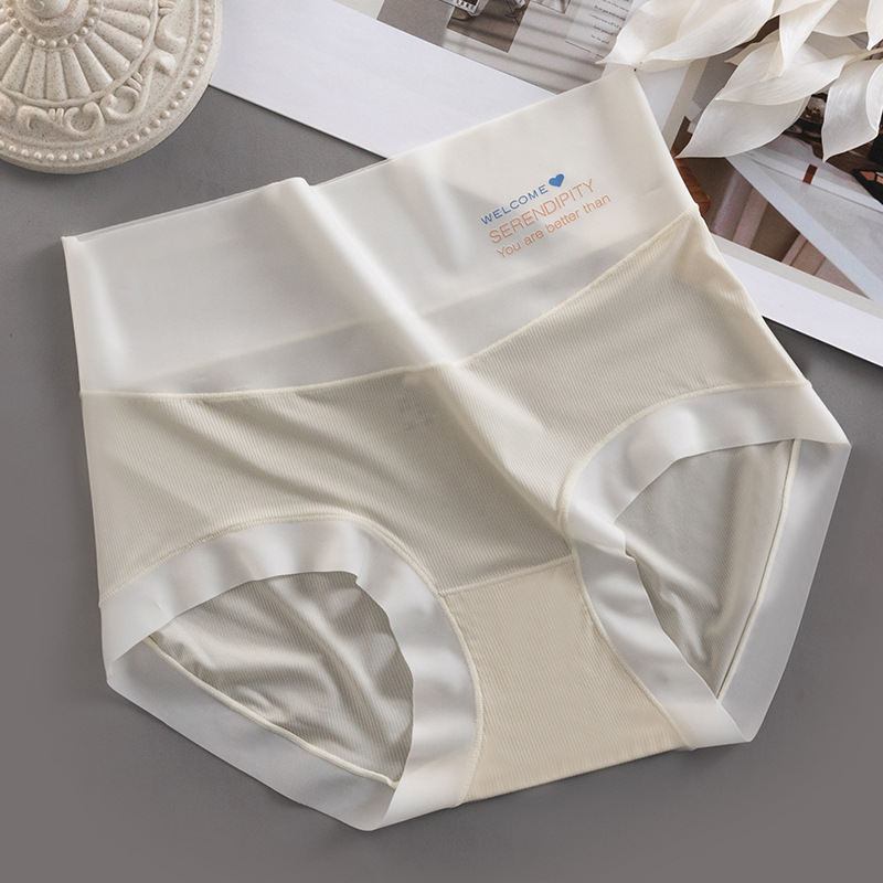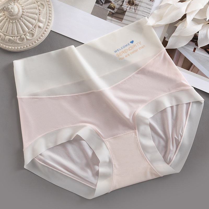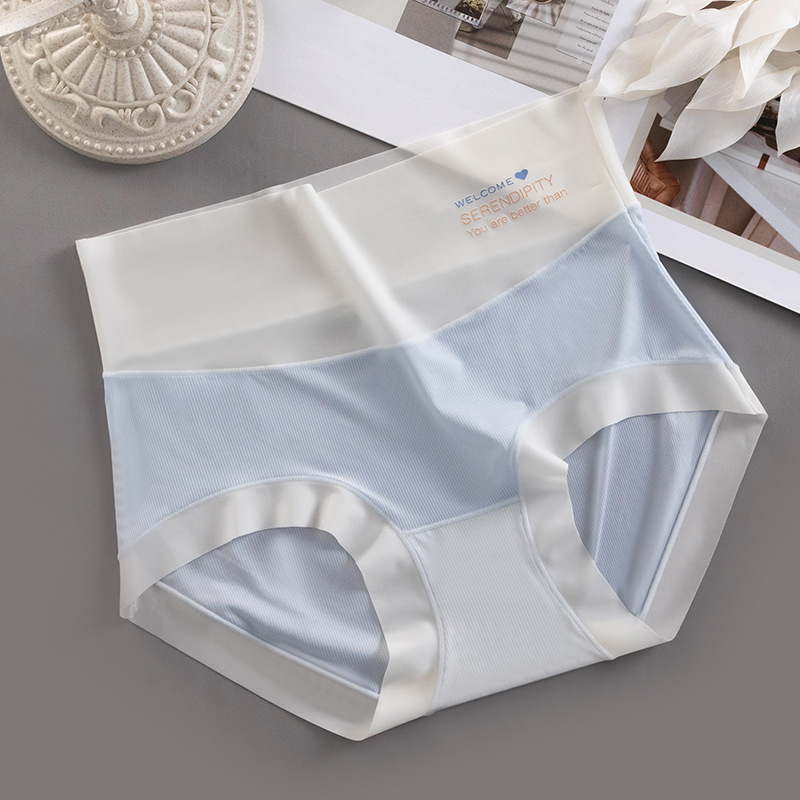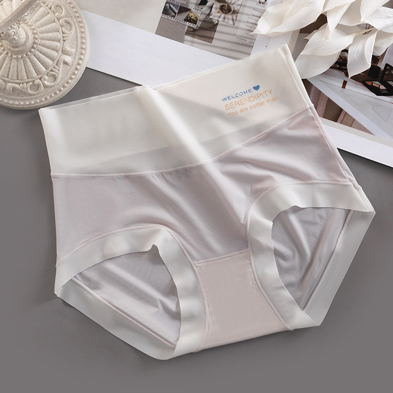 하이 웨이스트 속옷 여성용 순면 항균 가랑이 여름 얇은 소녀의 통기성 알몸 아이스 실크 원활한 여성용 삼각형 반바지스토어 가기