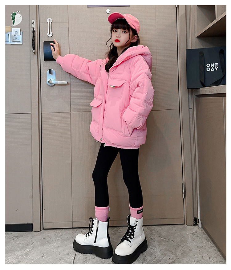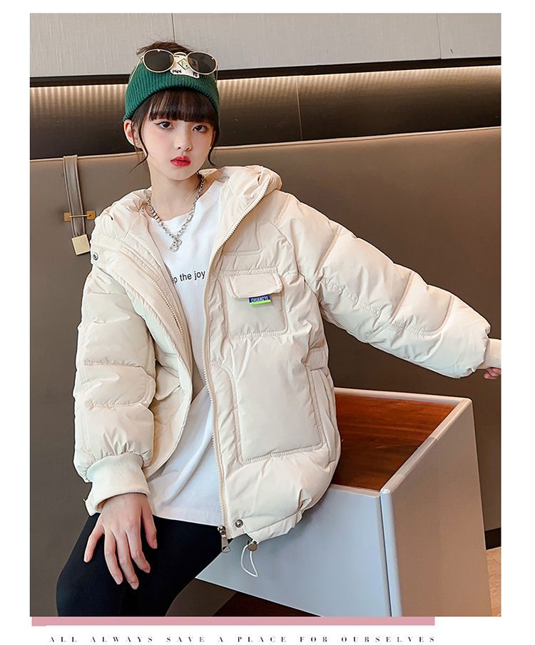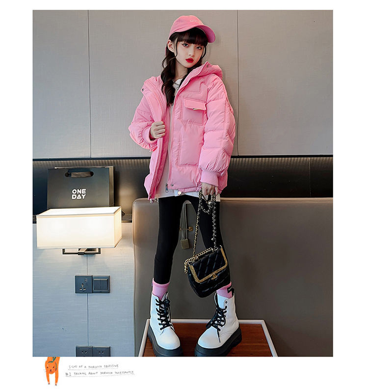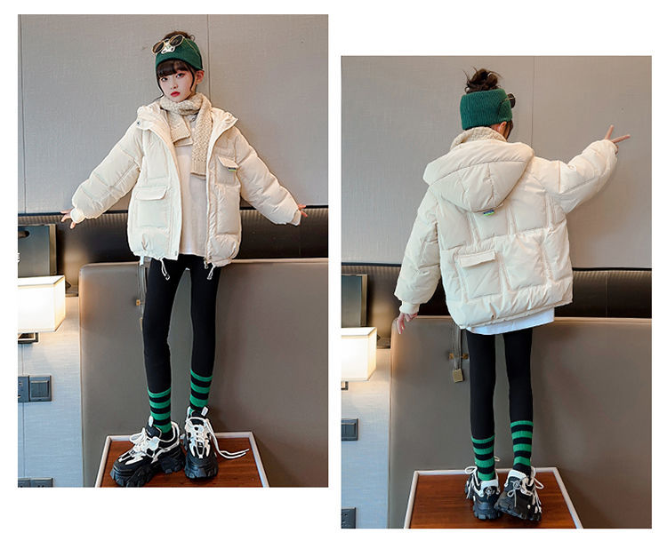 여아 면 패딩 재킷 면 패딩 겨울 의류 2023 따뜻한 큰 소녀 두꺼운 다운 면 패딩 재킷 여성 큰 어린이 후드 면 패딩 재킷 겨울스토어 가기