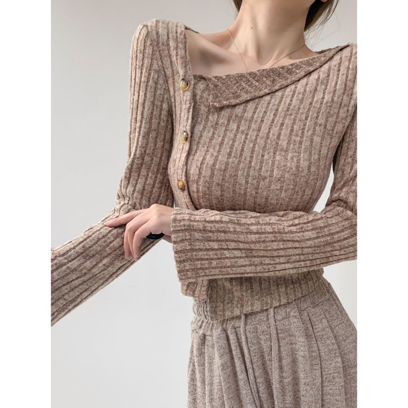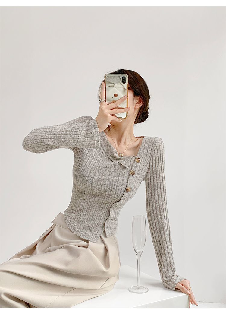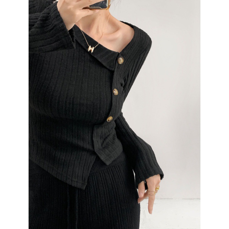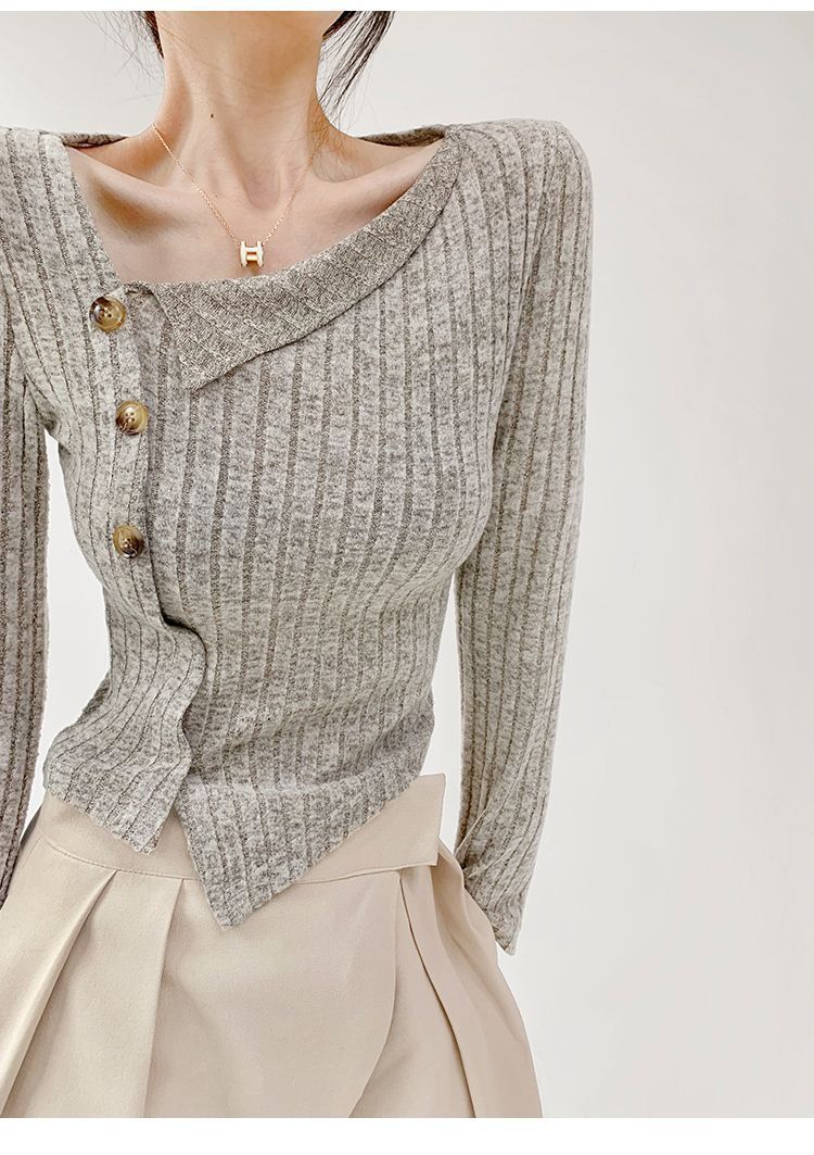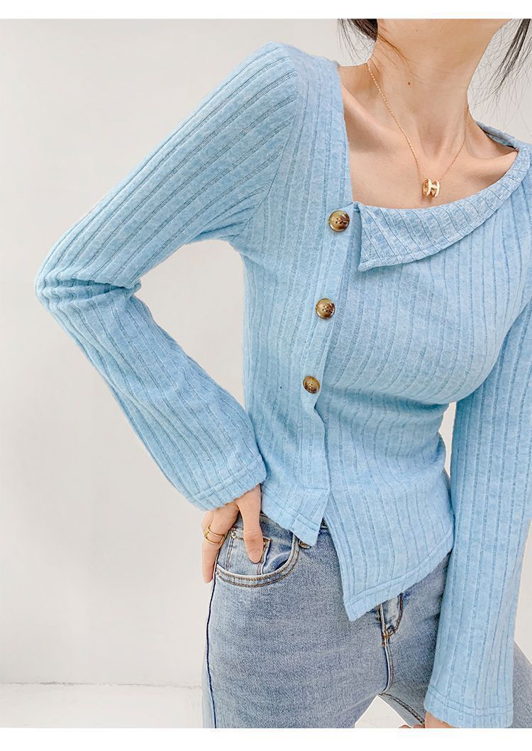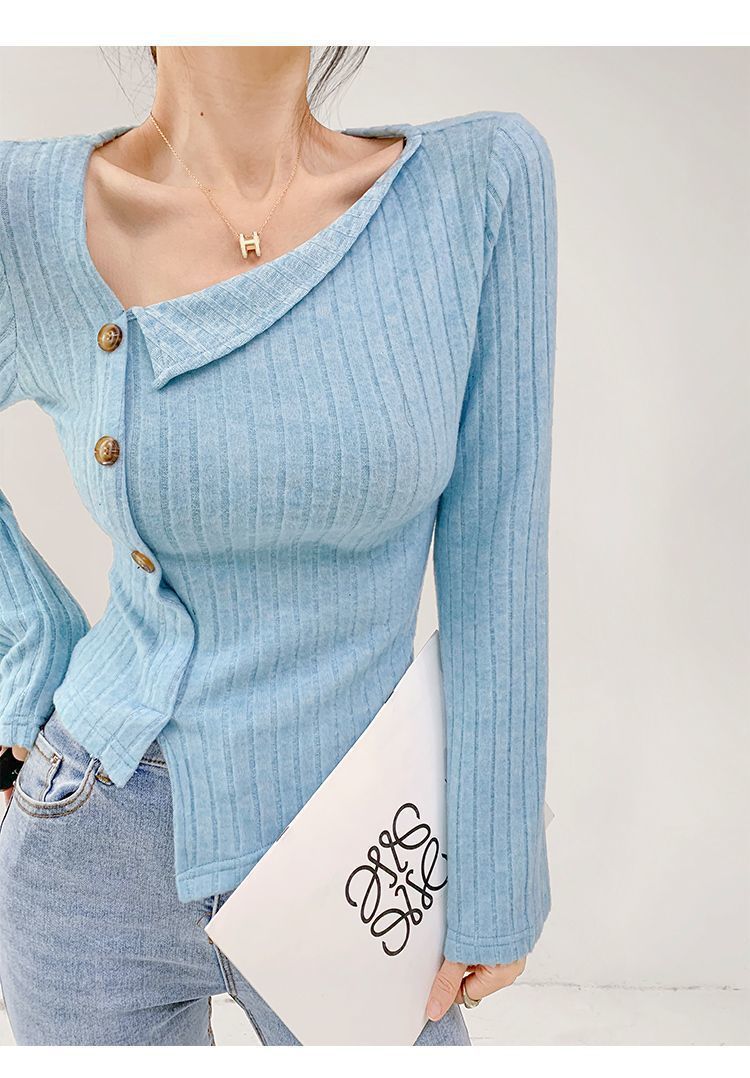핫 걸 디자인 센스 신상품 도트 플로럴 긴팔 여성용 젠틀 스타일 슬림핏 불규칙 틸트 싱글 브레스트 트렌디 탑