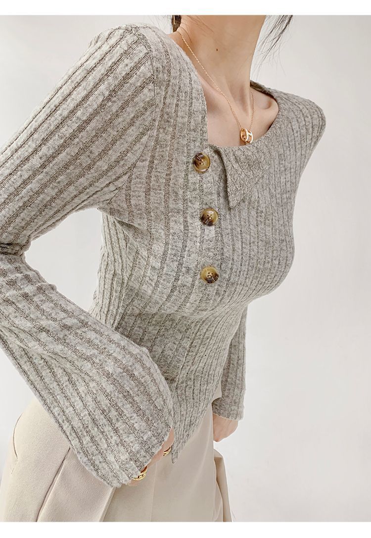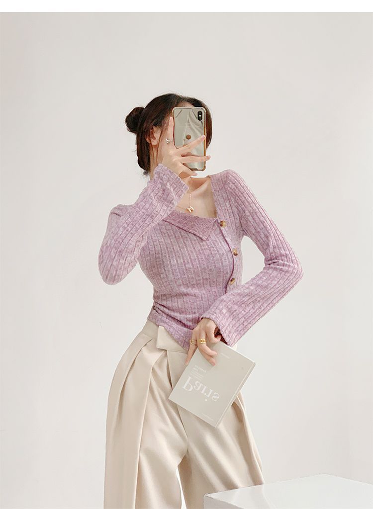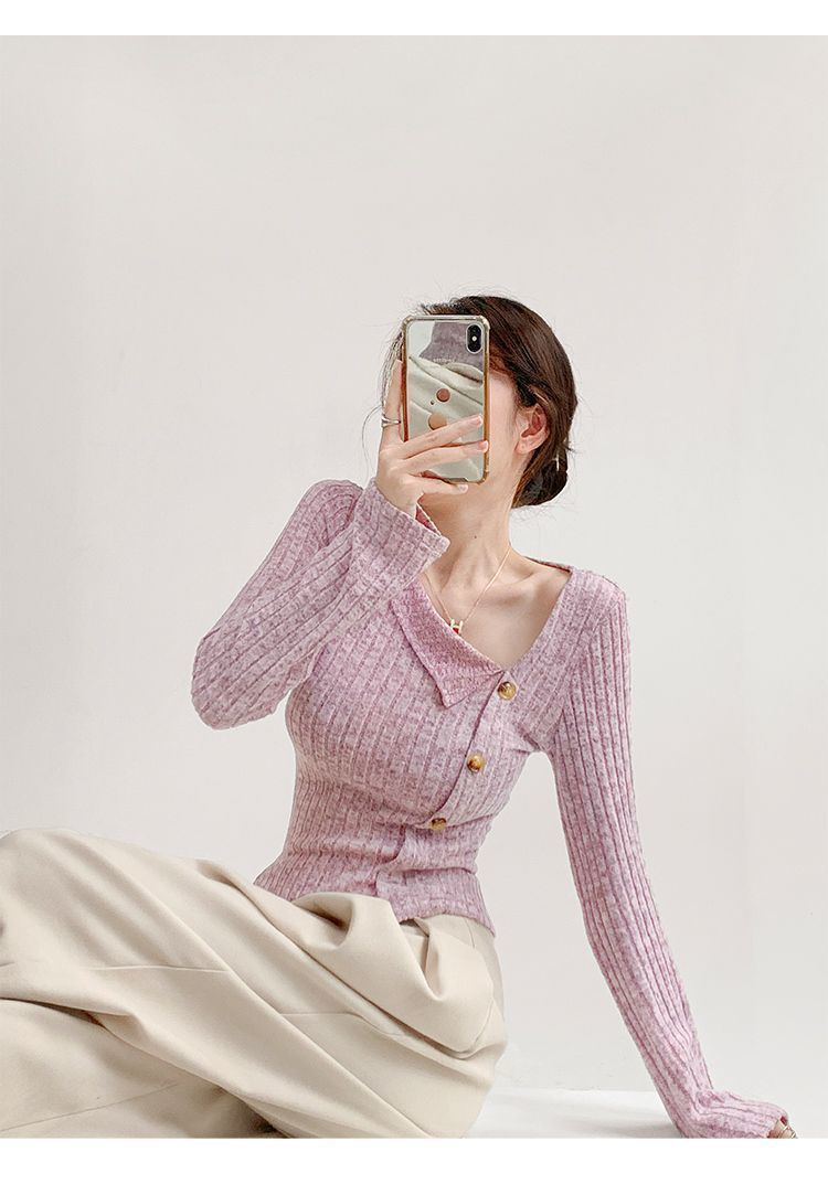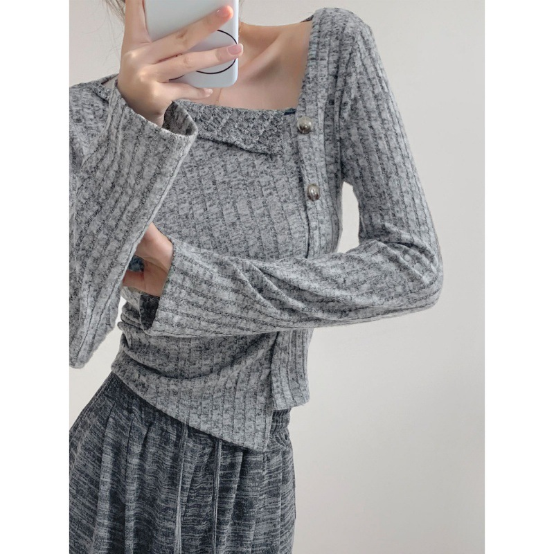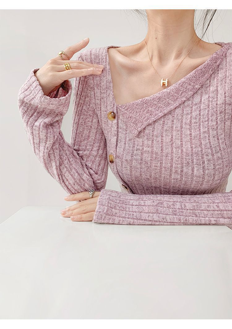 핫 걸 디자인 센스 신상품 도트 플로럴 긴팔 여성용 젠틀 스타일 슬림핏 불규칙 틸트 싱글 브레스트 트렌디 탑