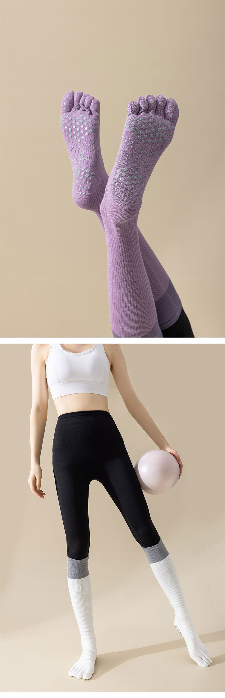 요가 양말 종아리 양말 전문 미끄럼 방지 필라테스 댄스 스포츠 5 손가락 양말 스플릿 발가락 따뜻한 스타킹