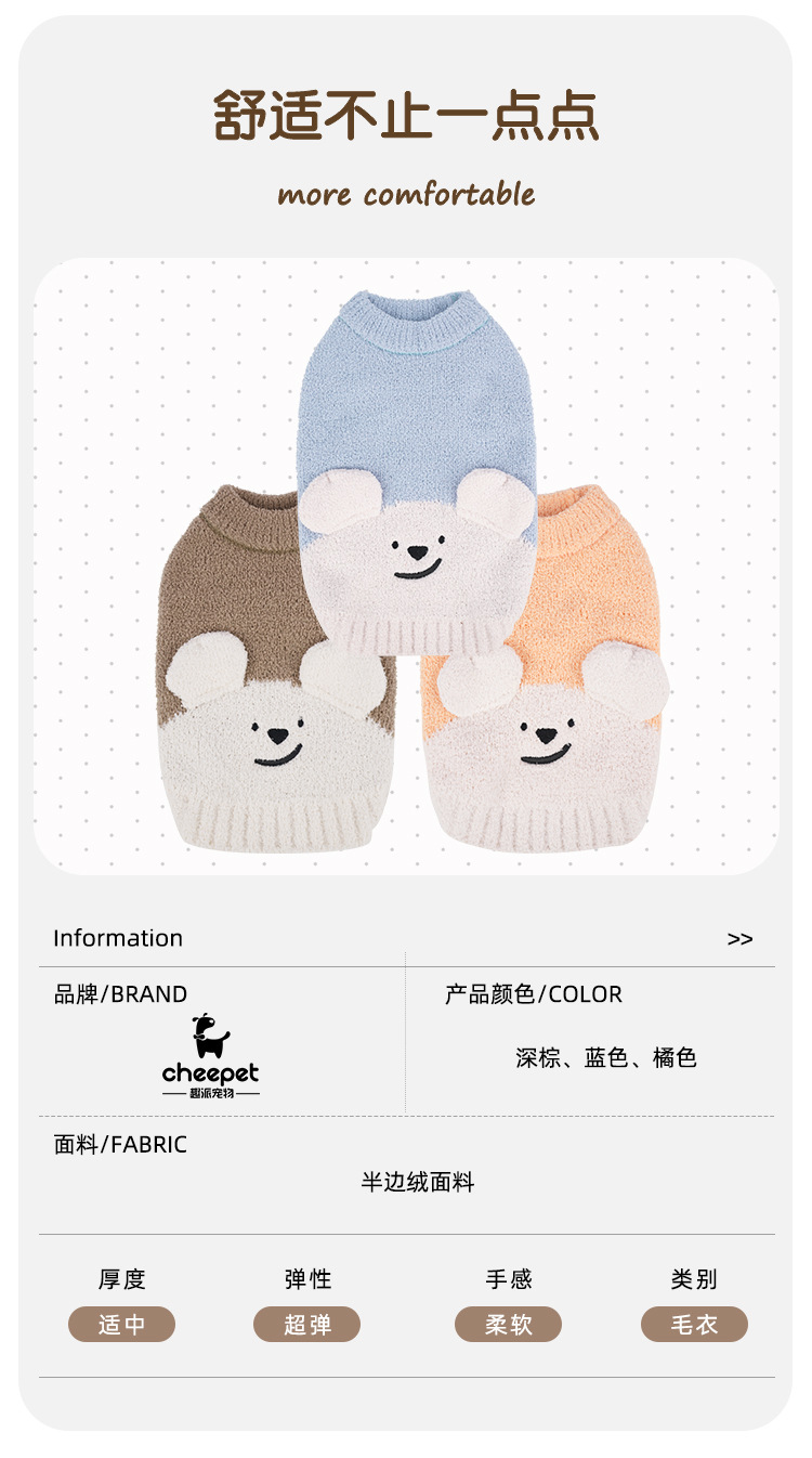 강아지 스웨터 반 벨벳 가을과 겨울 옷 곰 보메이 애완 동물 고양이 의류보다 따뜻한 두꺼운 탄성 고양이스토어 가기
