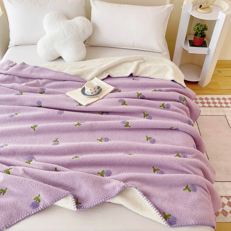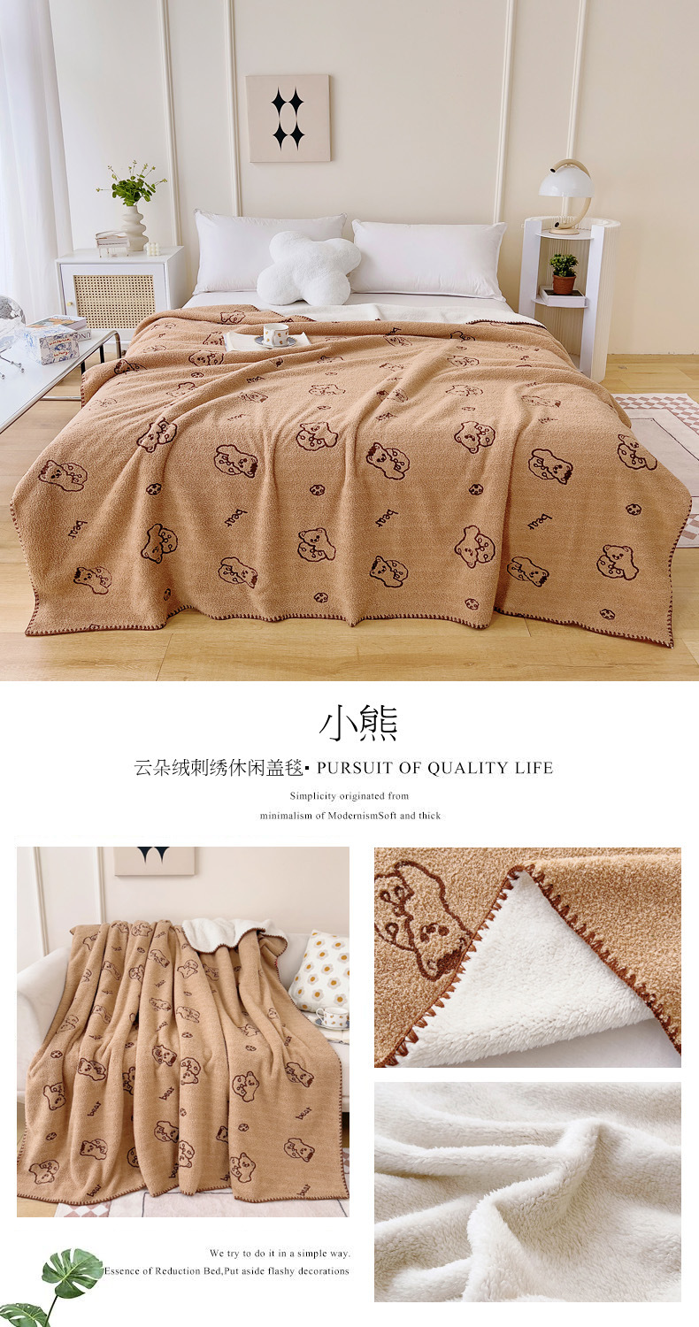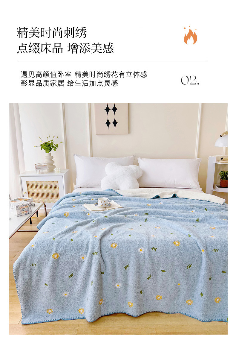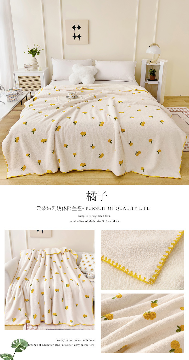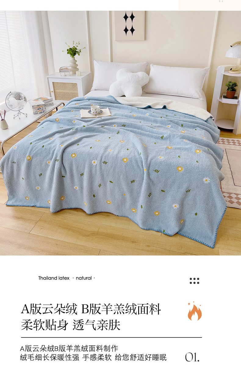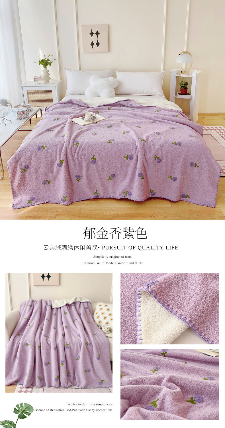 작은 신선한 바람과 구름 벨벳 자수 담요 사무실 낮잠 담요 다기능 양고기 벨벳 숄 담요 제조 업체스토어 가기