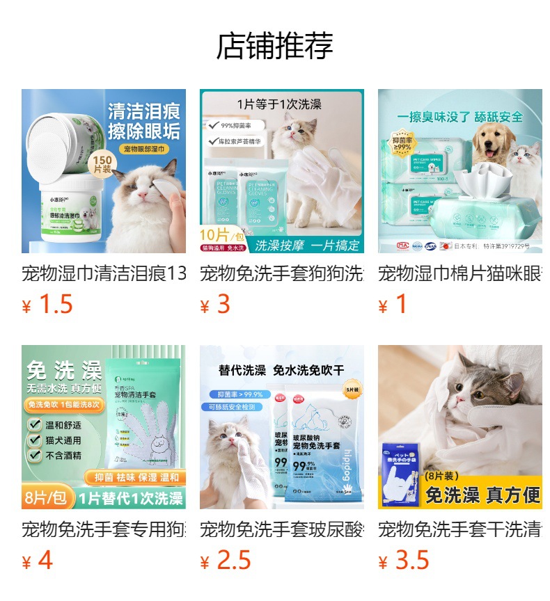 애완동물 물티슈, 노워시 청소용 장갑, 강아지 목욕 및 탈취, 고양이 강아지 및 새끼 고양이 드라이클리닝 애완동물 청소용품스토어 가기