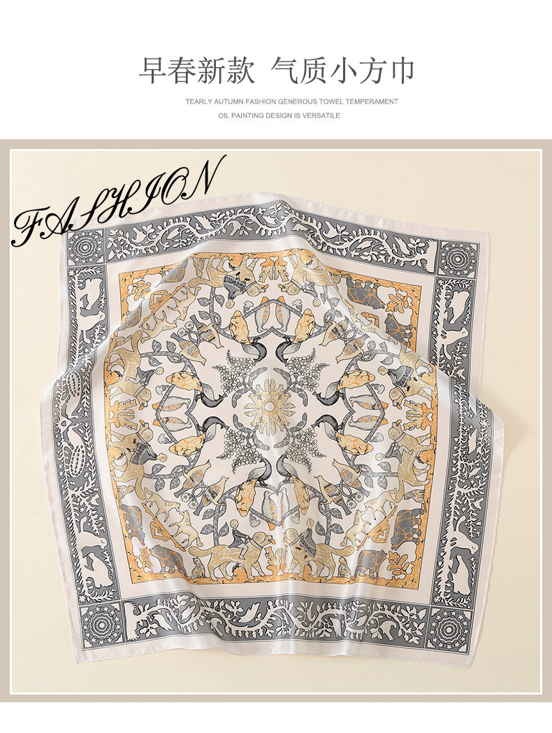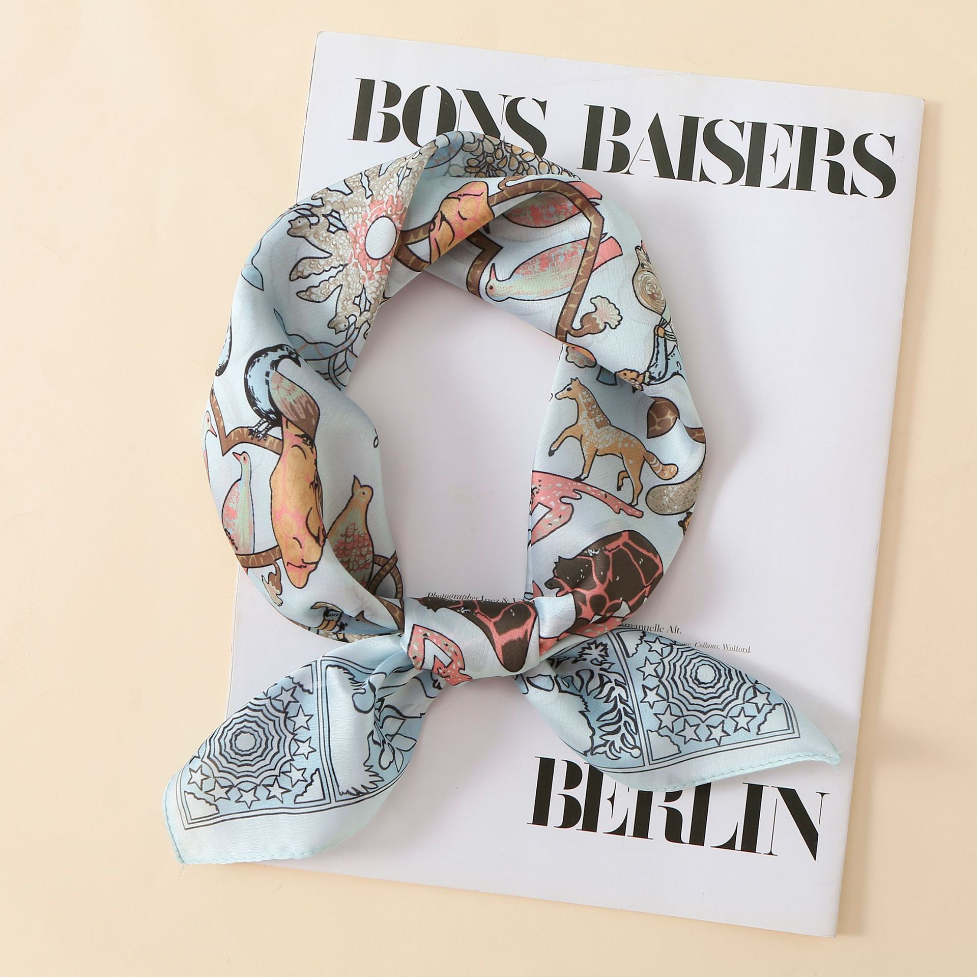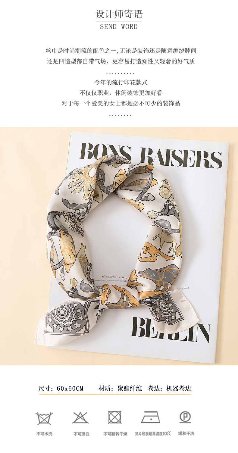 우아한 복고풍 작은 실크 스카프 인쇄 작은 사각형 스카프 여성의 얇은 23 년 새 스카프 한국 장식 모든 일치 스튜어디스 스카프