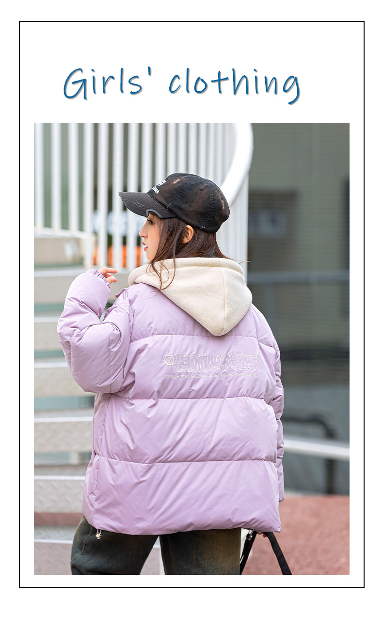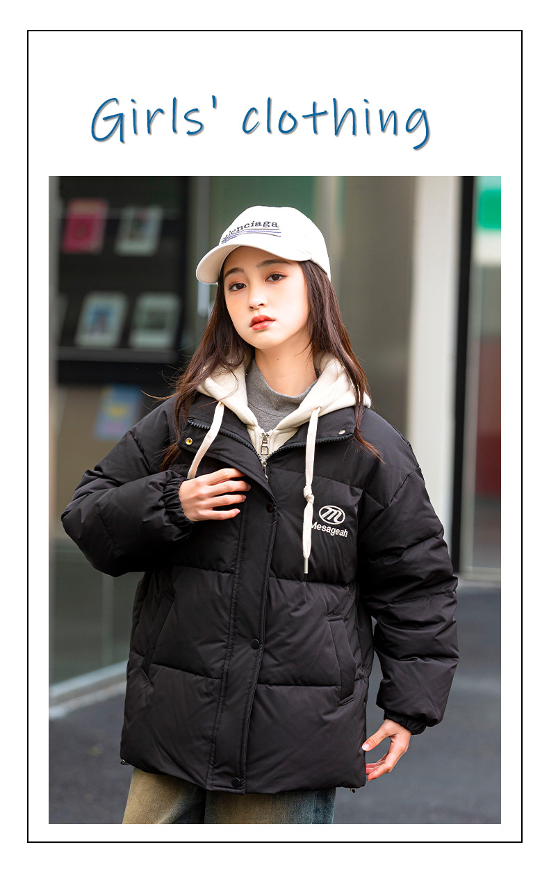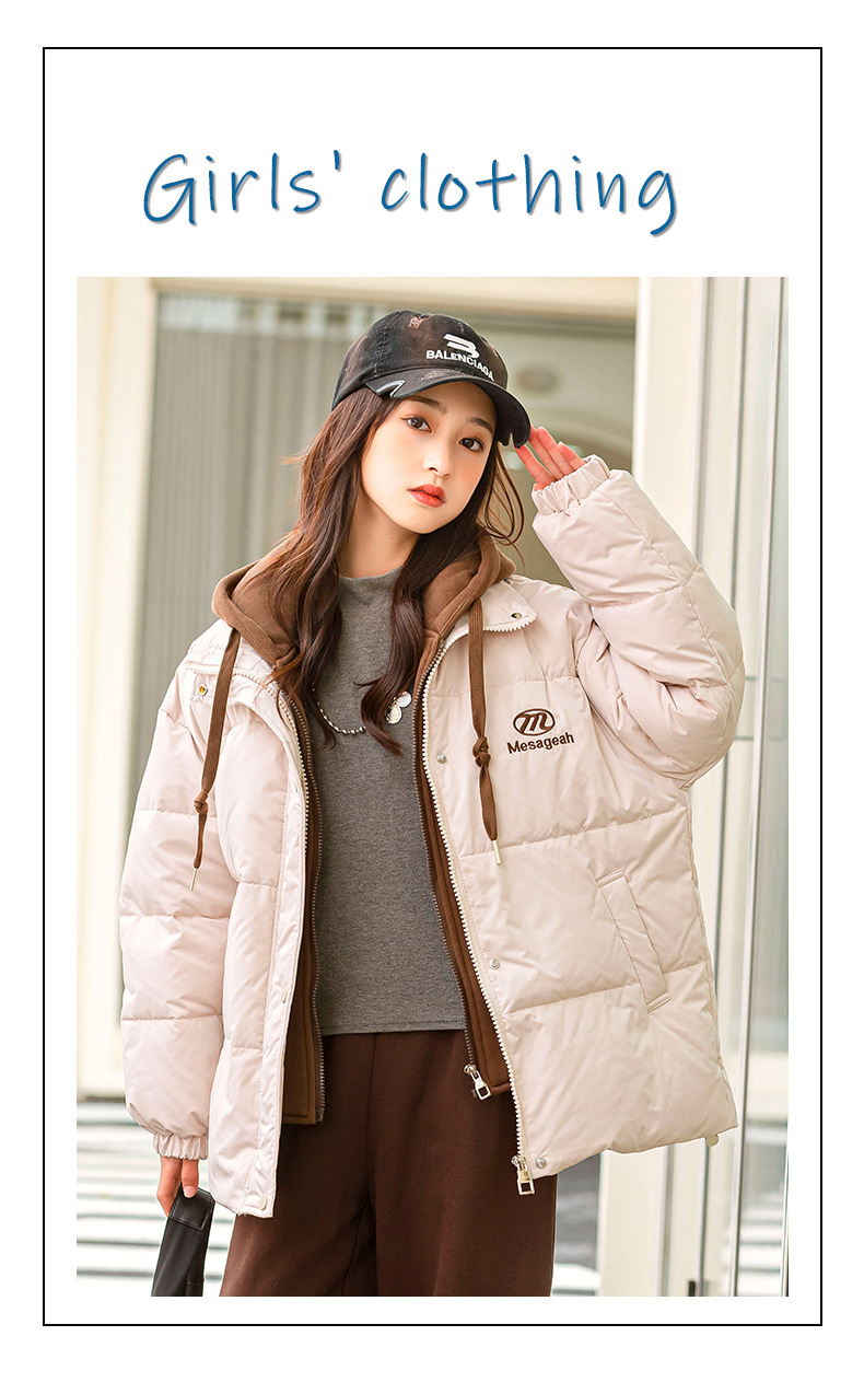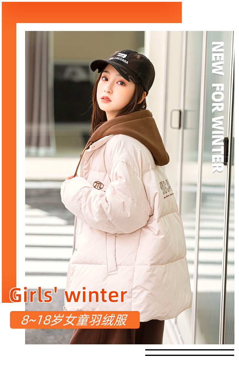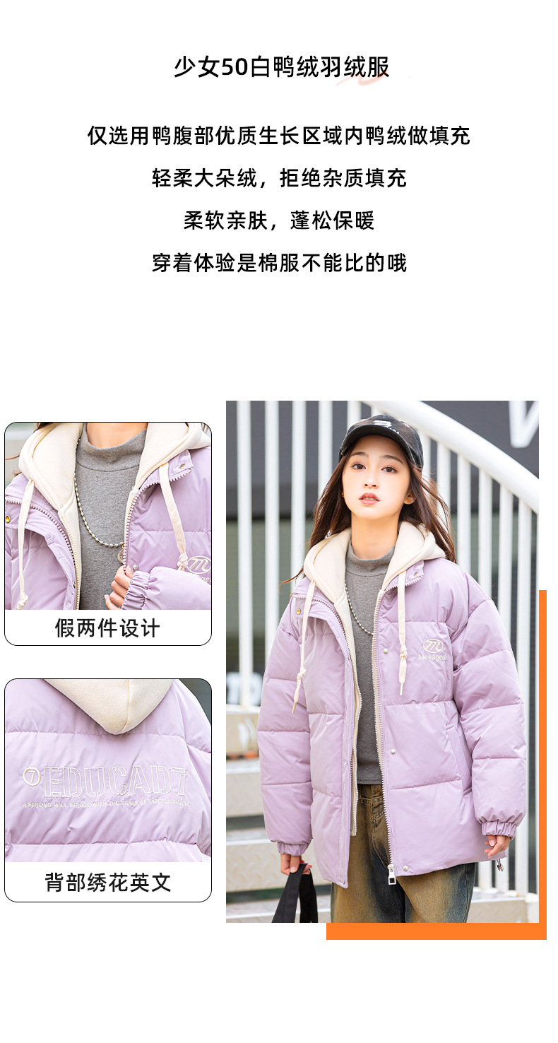 여아 다운 재킷 2023 새로운 어린이 겨울 짧은 큰 어린이 중학생 기모 후드 가짜 투피스 재킷스토어 가기