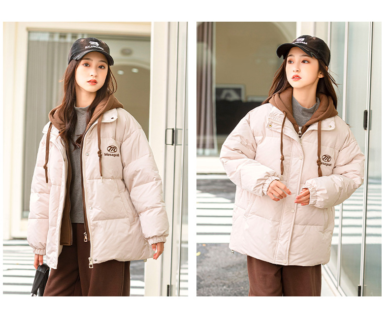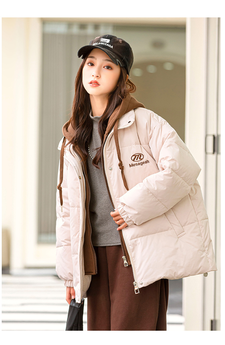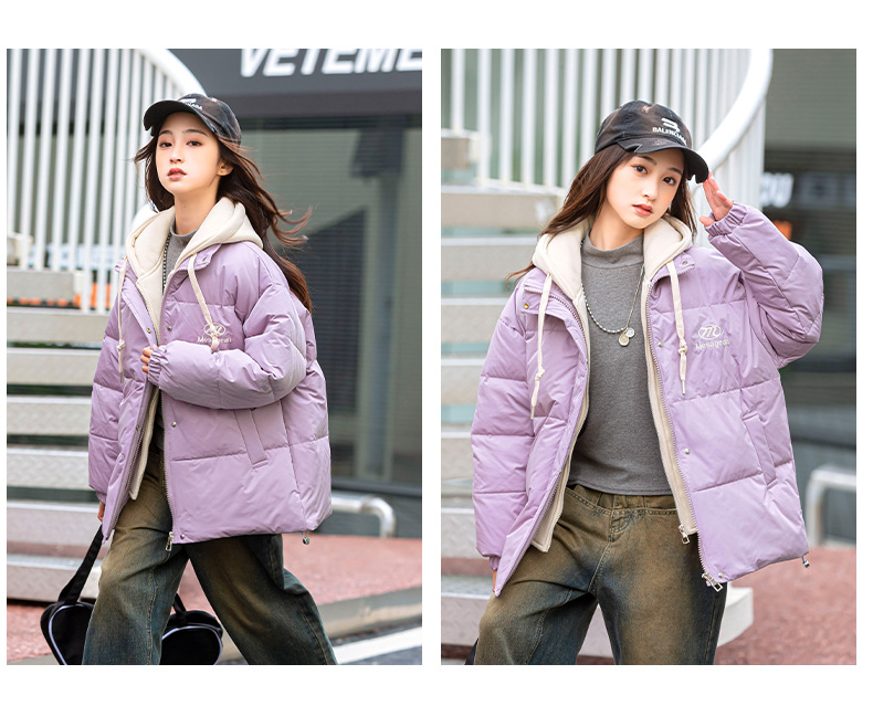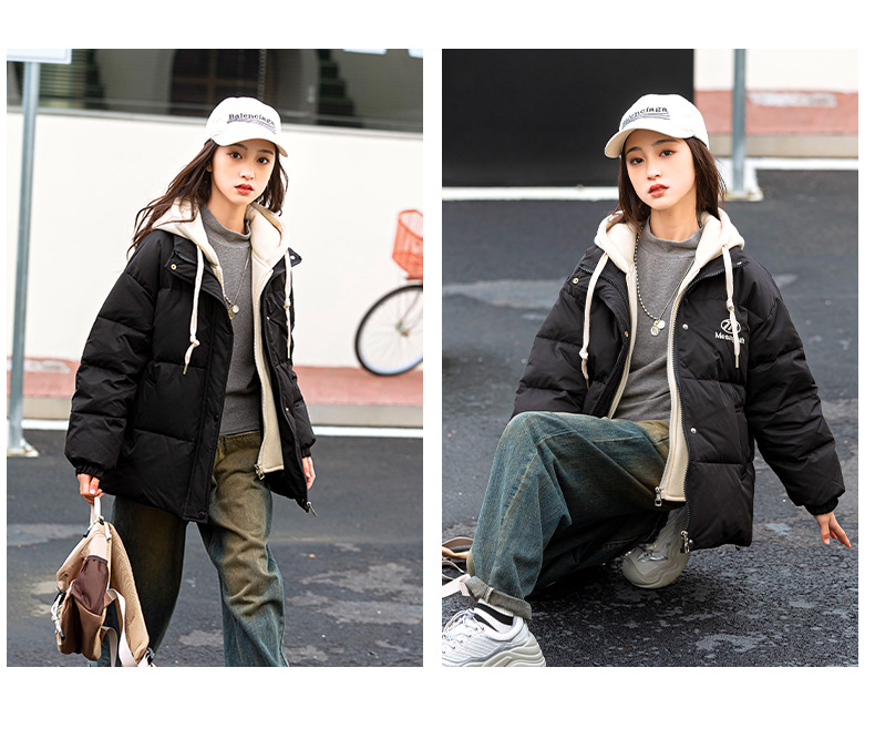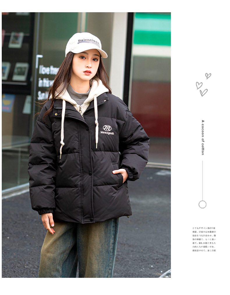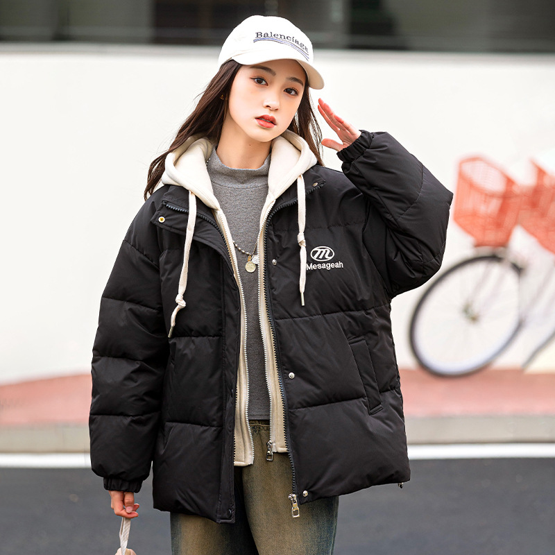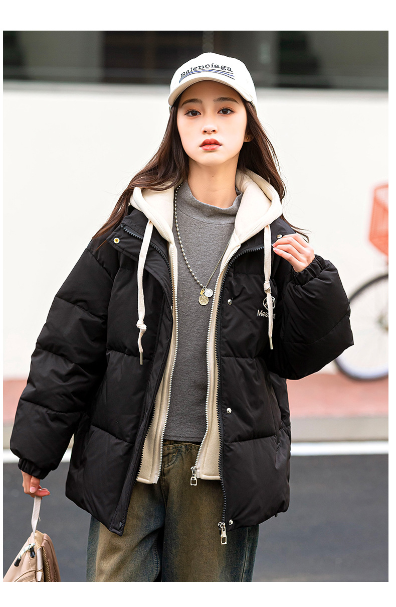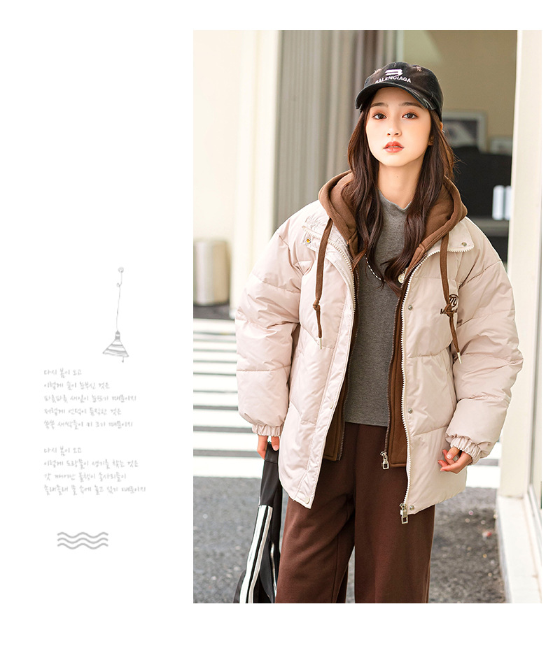 여아 다운 재킷 2023 새로운 어린이 겨울 짧은 큰 어린이 중학생 기모 후드 가짜 투피스 재킷스토어 가기