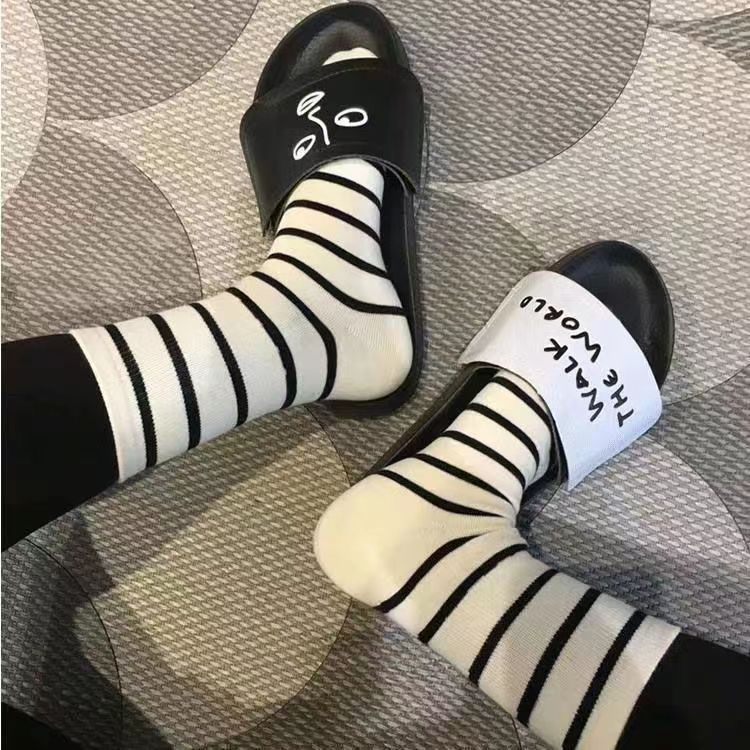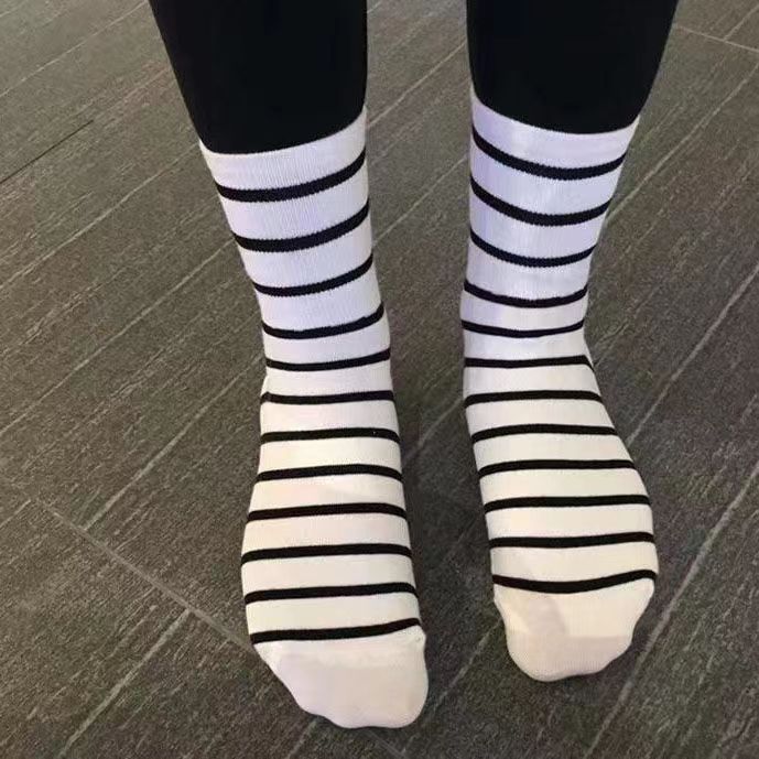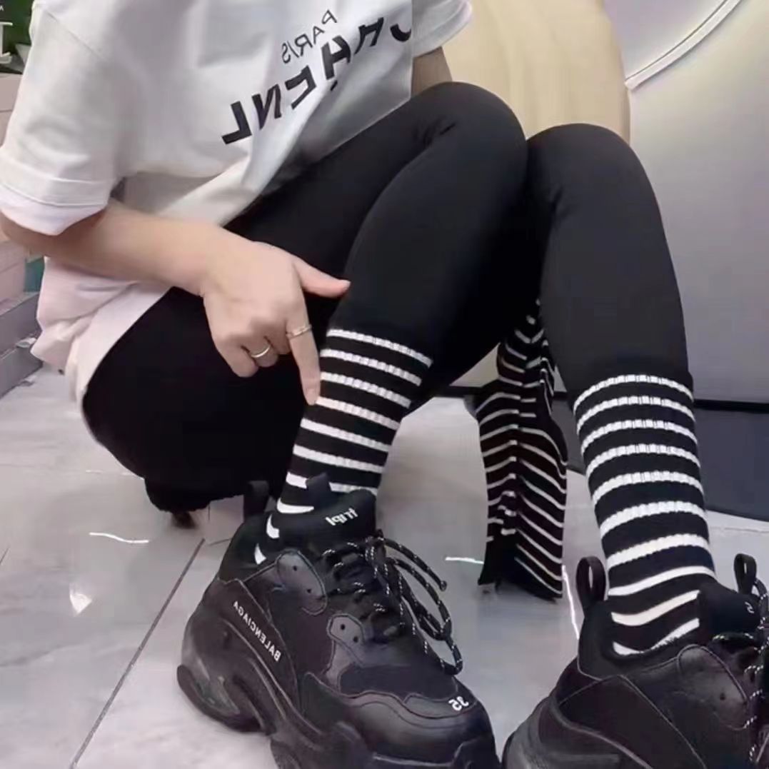 春秋款中筒袜女条纹美拉德色系出街外穿配鲨鱼裤时尚外穿好看袜子