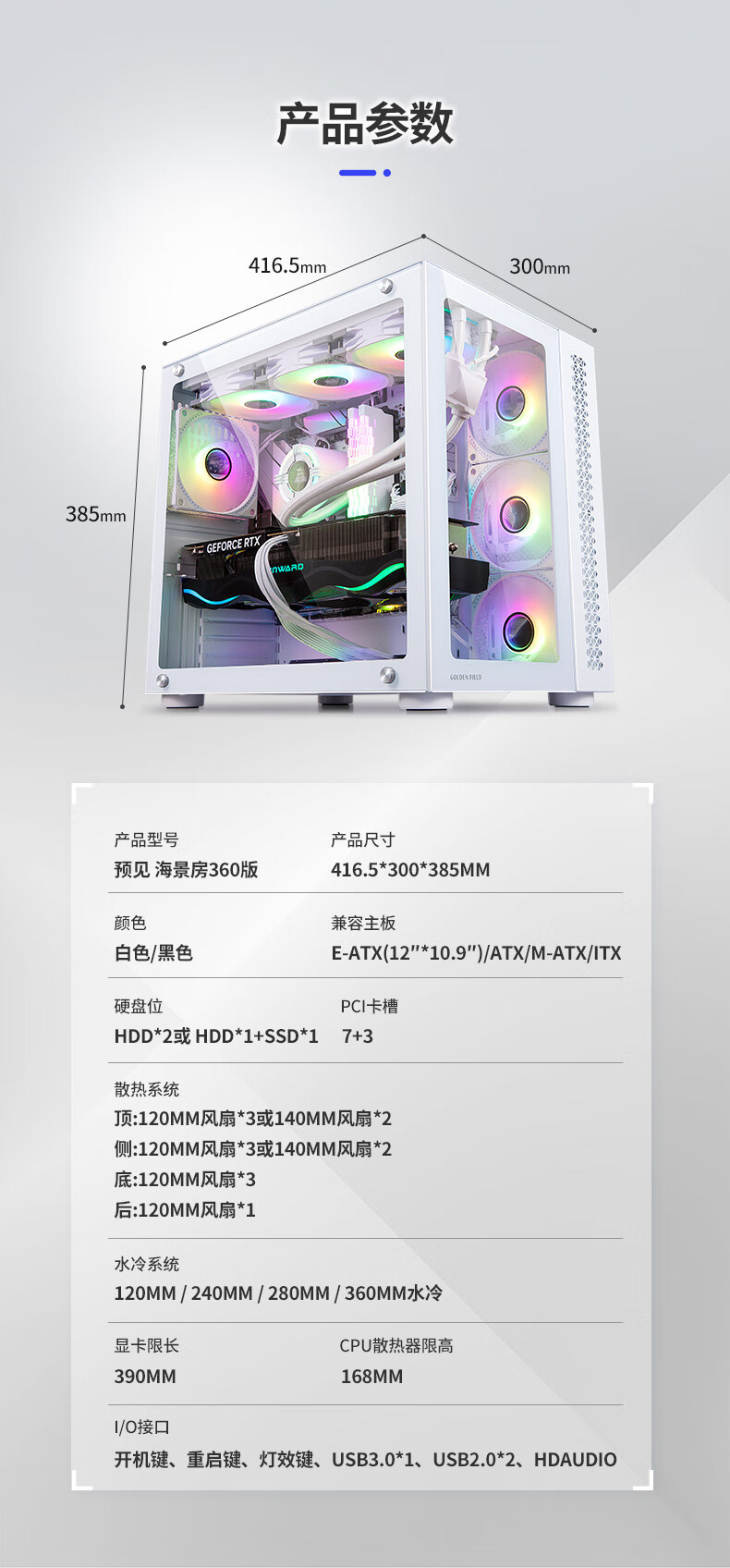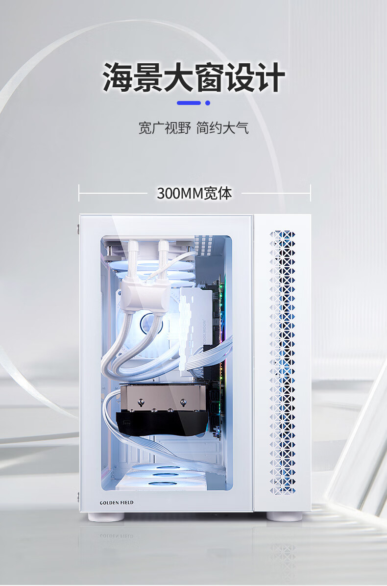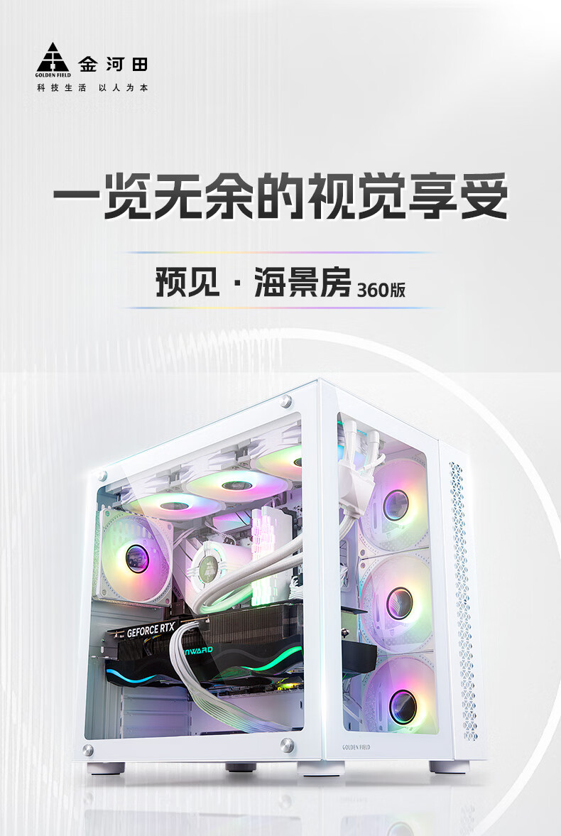 Jinhetian 예지 바다 전망 방 360 데스크탑 컴퓨터 섀시 ATX 파노라마 측면 수냉식 흑백 지원 E-ATX스토어 가기