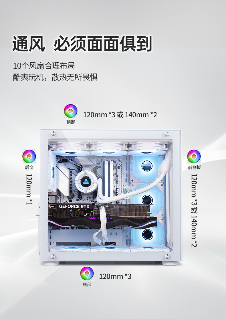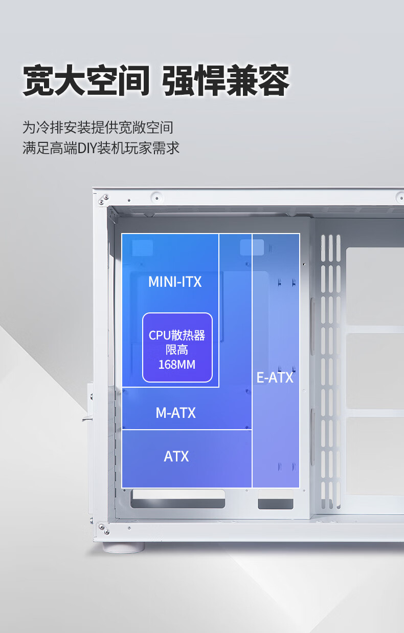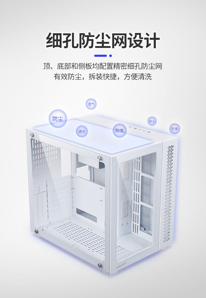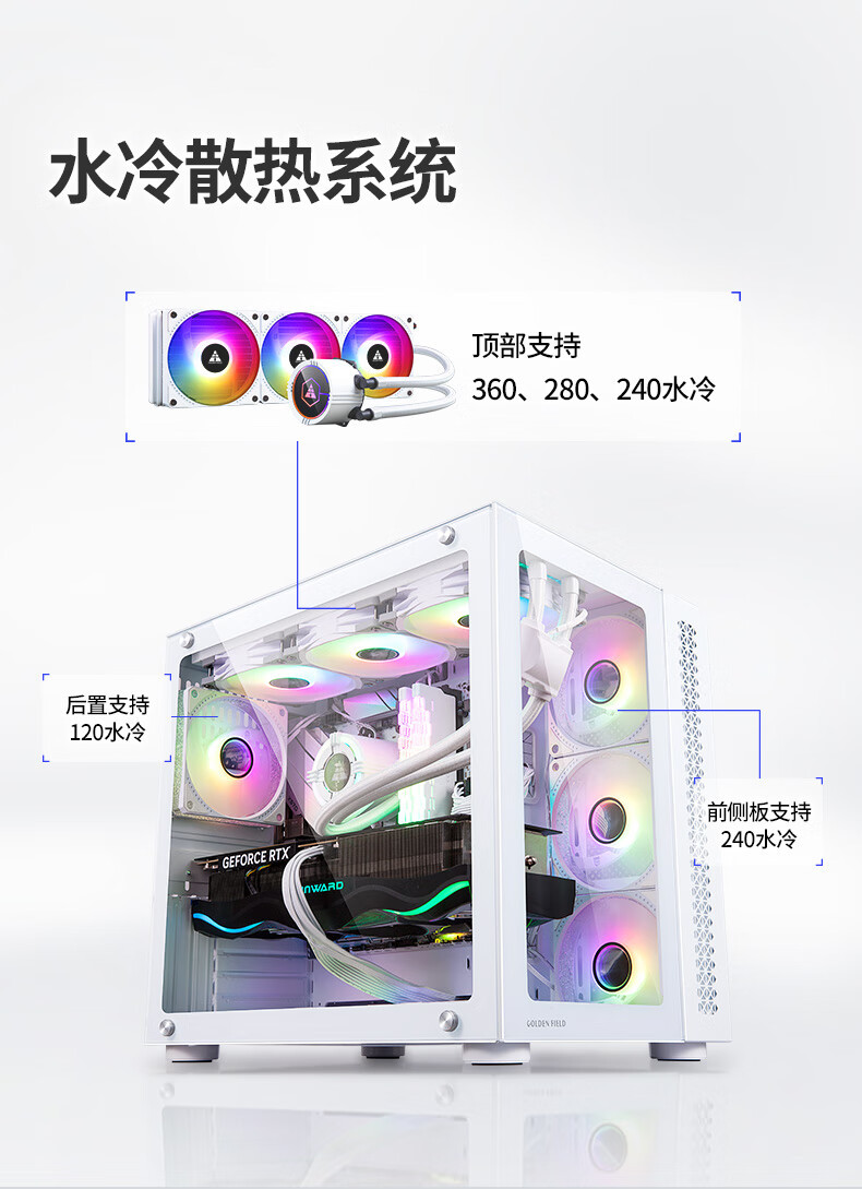 Jinhetian 예지 바다 전망 방 360 데스크탑 컴퓨터 섀시 ATX 파노라마 측면 수냉식 흑백 지원 E-ATX스토어 가기