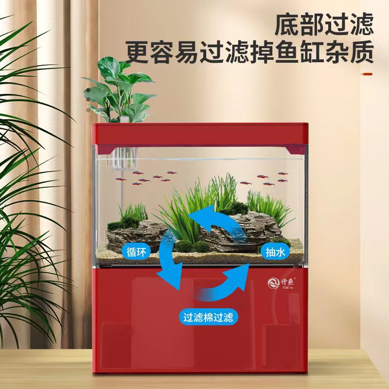 슈퍼 화이트 어항 거실 작은 홈 오피스 생태 게으른 미니 밀짚 탱크 데스크탑 양동이 물고기 탱크 물없는스토어 가기