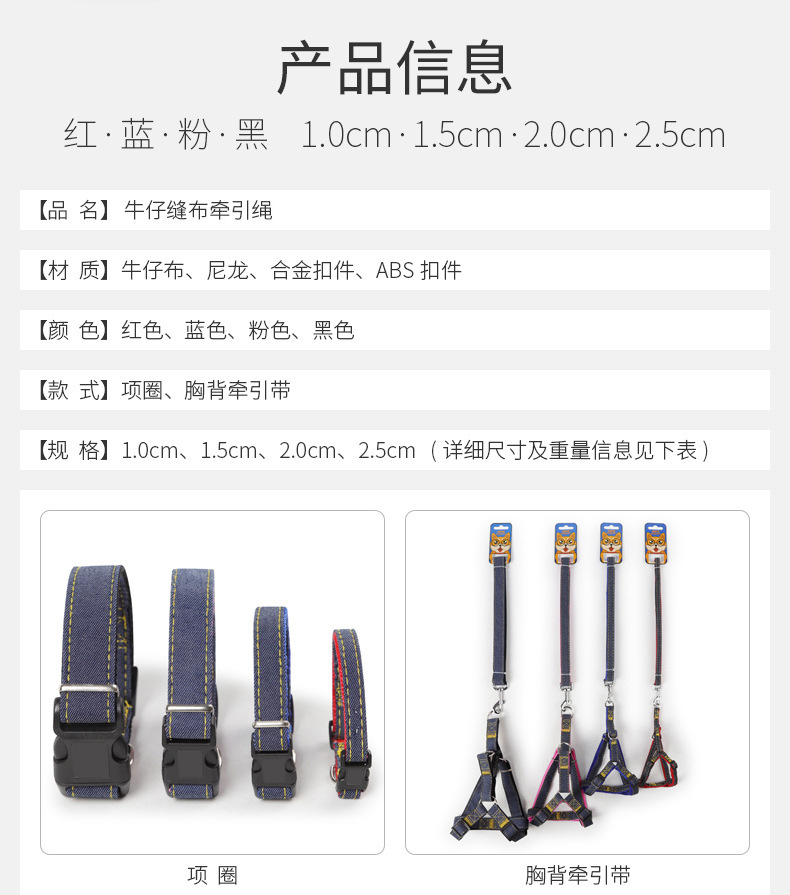 새로운 데님 개 견인 로프 내마모성 개 산책 로프 대형 개 목걸이 애완 동물 가슴 스트랩 제조 업체 도매