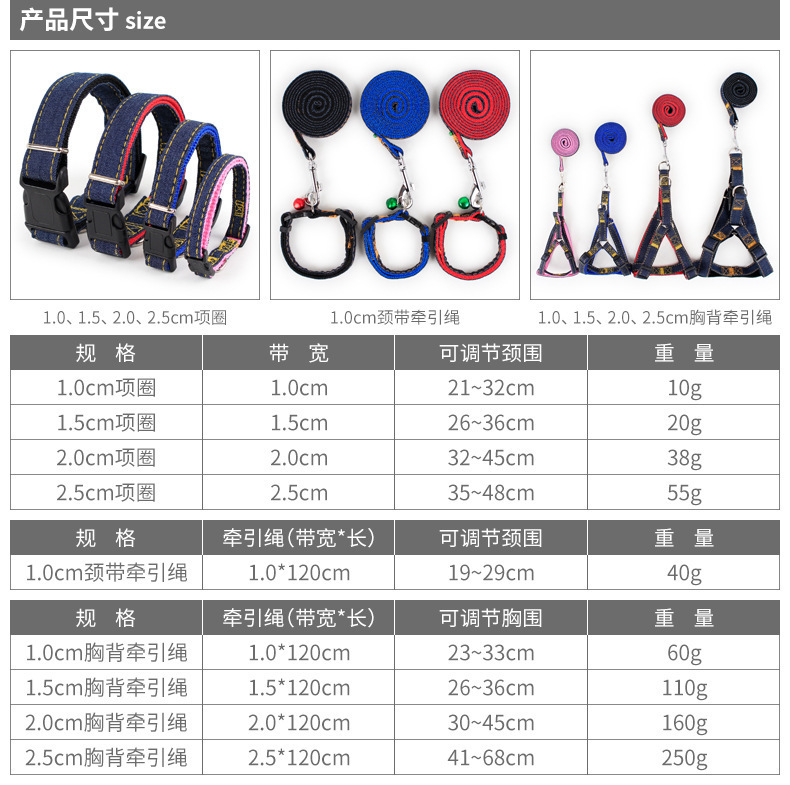 새로운 데님 개 견인 로프 내마모성 개 산책 로프 대형 개 목걸이 애완 동물 가슴 스트랩 제조 업체 도매스토어 가기