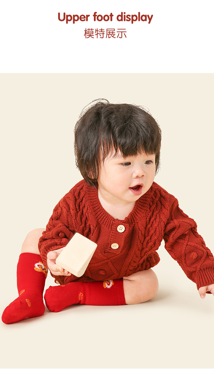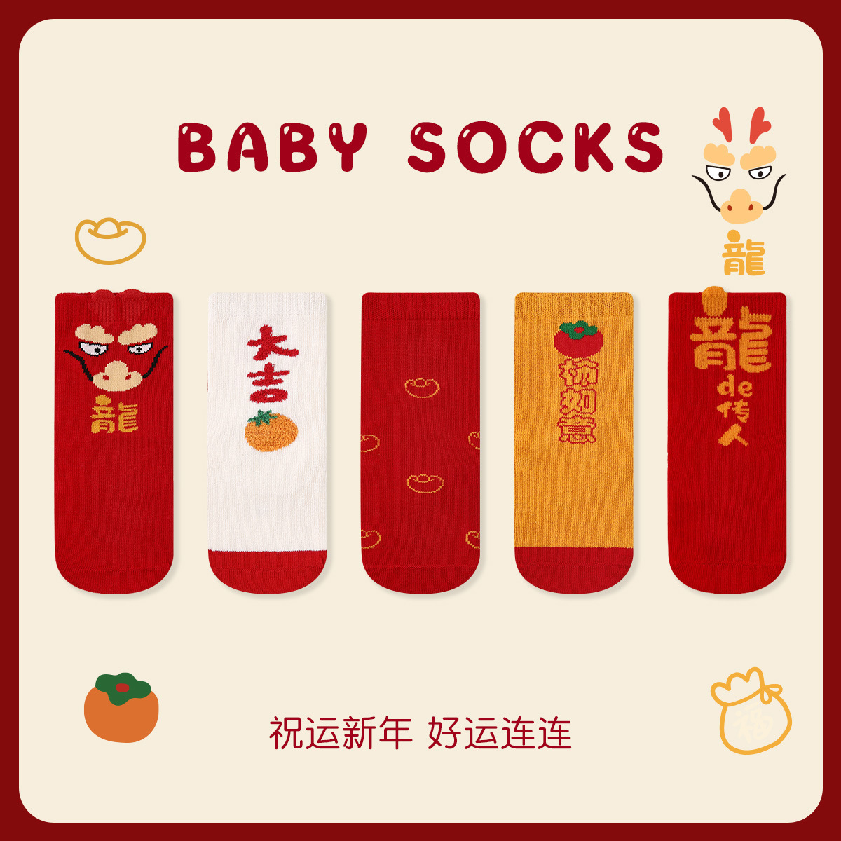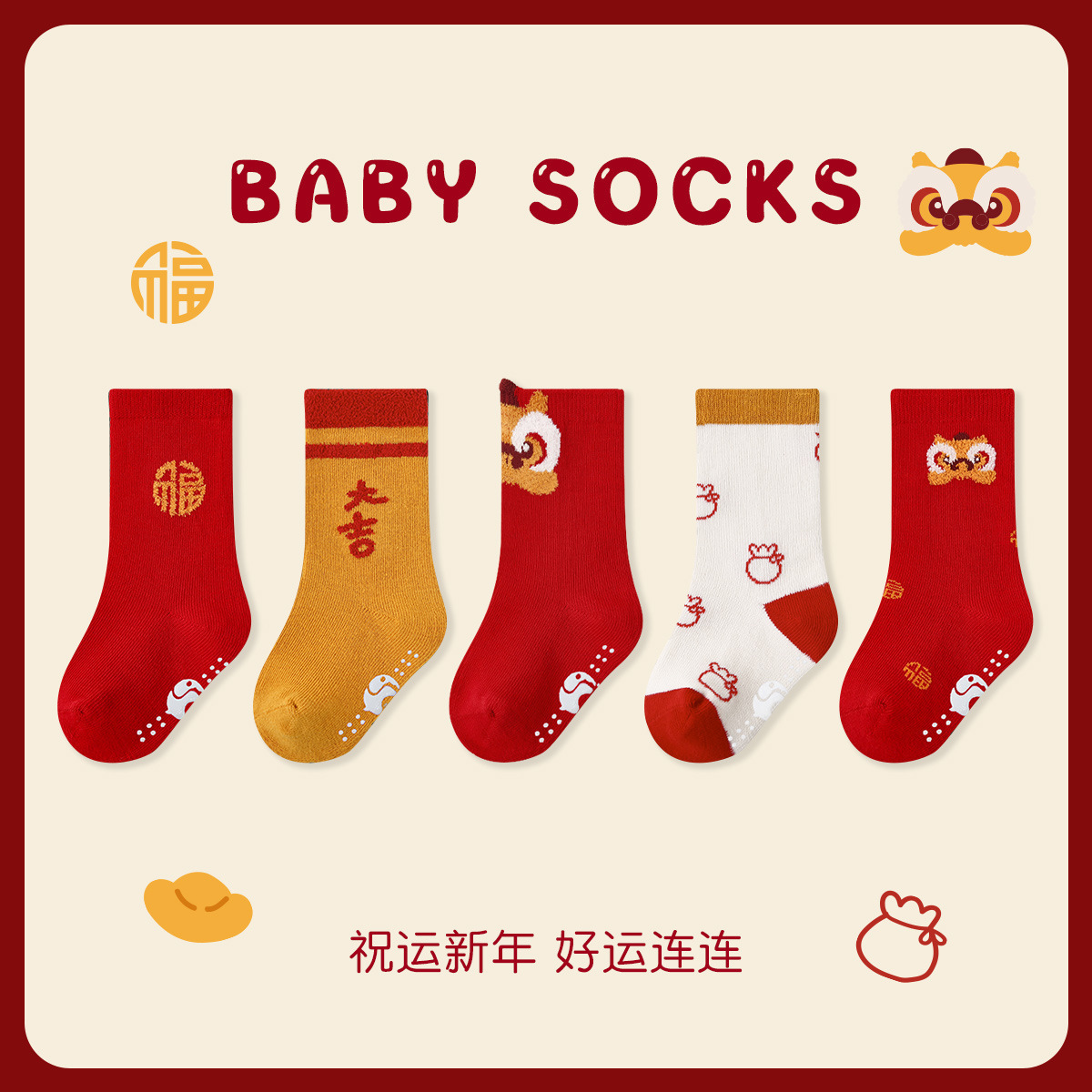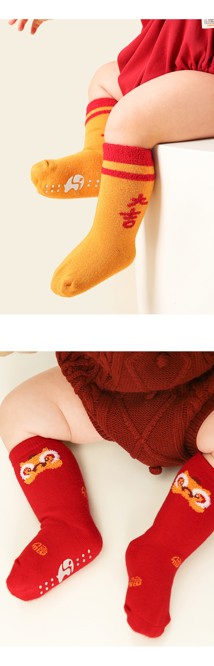 5 쌍-어린이 양말 도매 2023 겨울 빨간 새해 아기 양말 면 뼈없는 미끄럼 방지 아기 양말스토어 가기