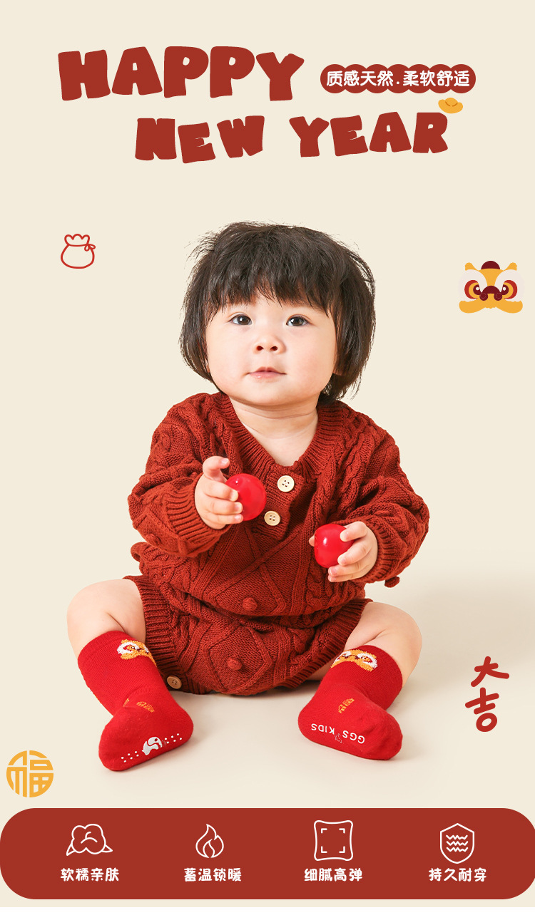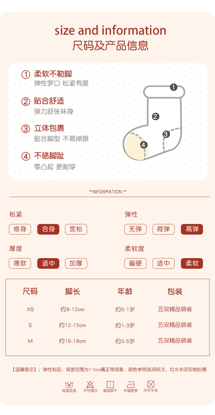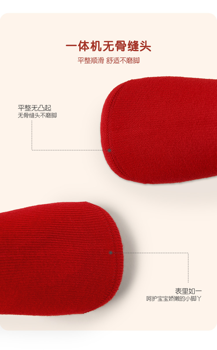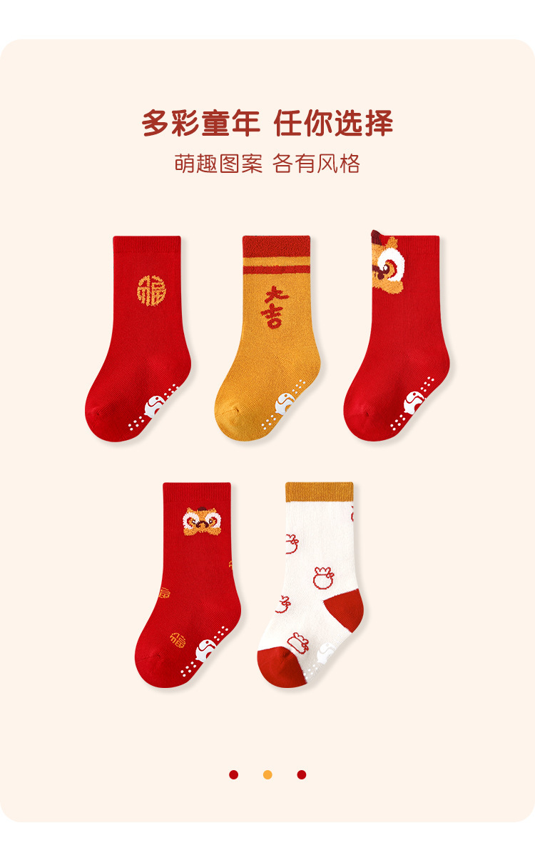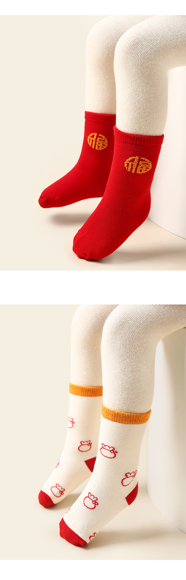 5 쌍-어린이 양말 도매 2023 겨울 빨간 새해 아기 양말 면 뼈없는 미끄럼 방지 아기 양말
