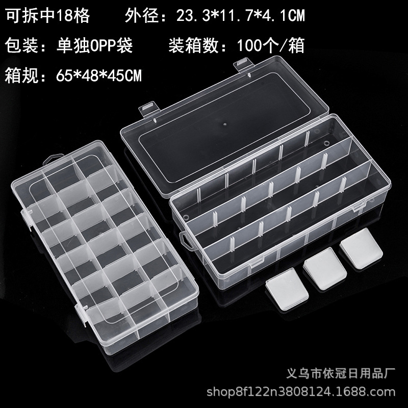 투명 플라스틱 18 그리드 보석 하드웨어 도구 낚시 장비 보관 상자 문구 네일 아트 비즈 정렬 보관 상자스토어 가기