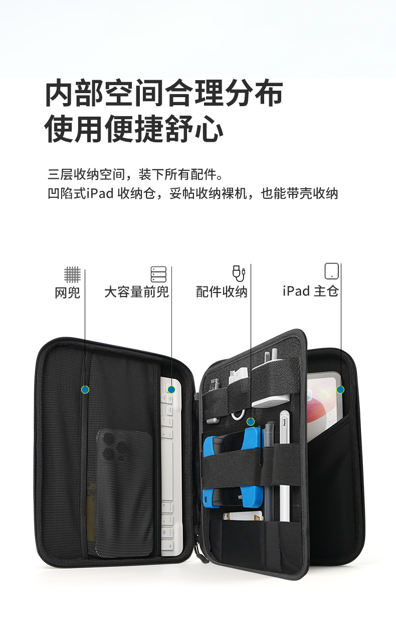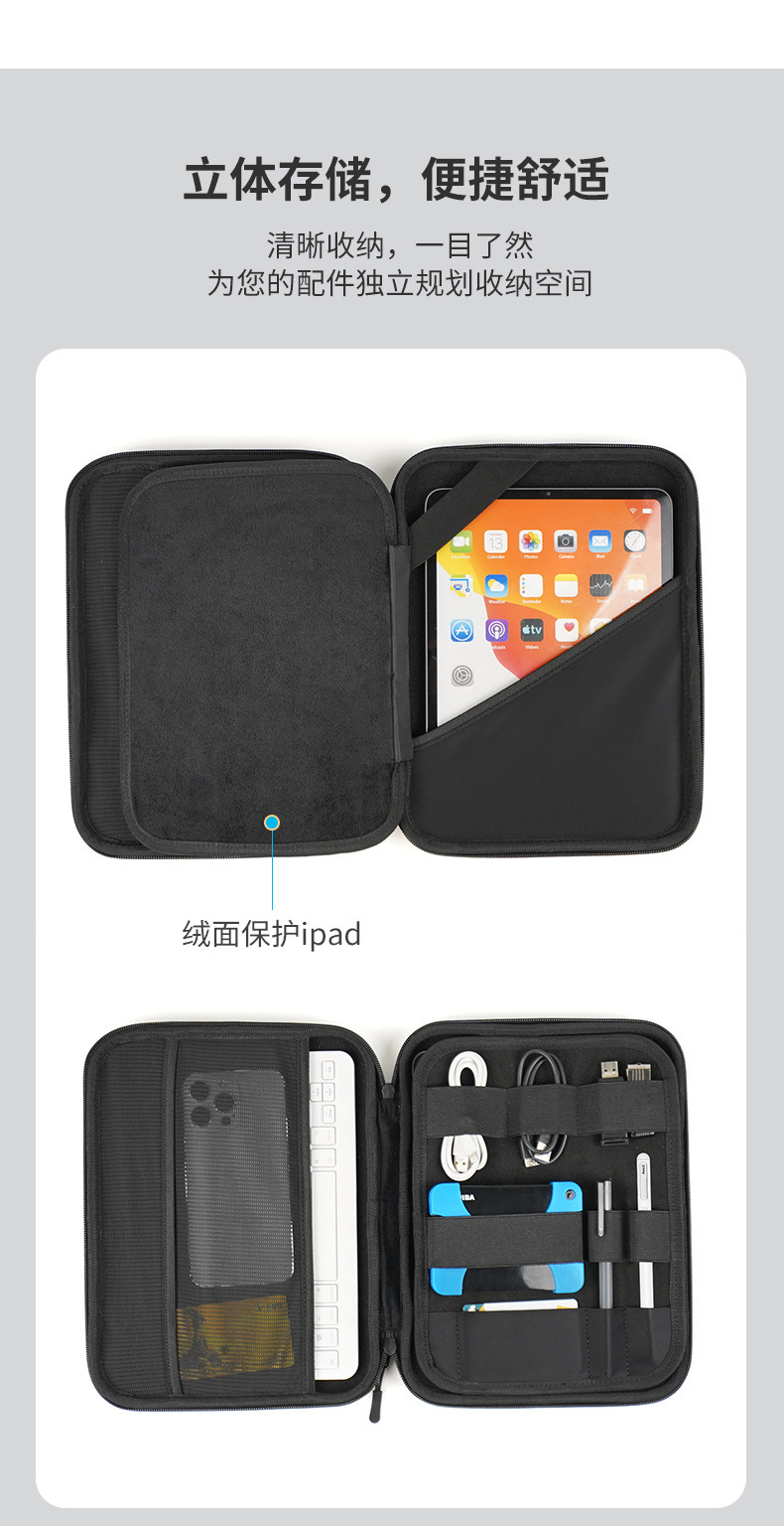 아이패드 컴퓨터 가방 보호 케이스 12.9인치 10.8인치 휴대용 내부 가방 다기능 데이터 케이블 보관함 휴대용스토어 가기
