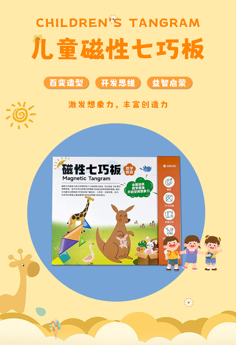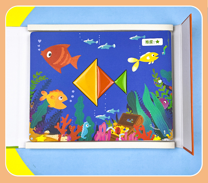 • 자석 칠교놀이 20*24 [30페이지 상황별 문제 카드 + 108가지 모양 독립 문제집] 초등 교과서 내용 연계
