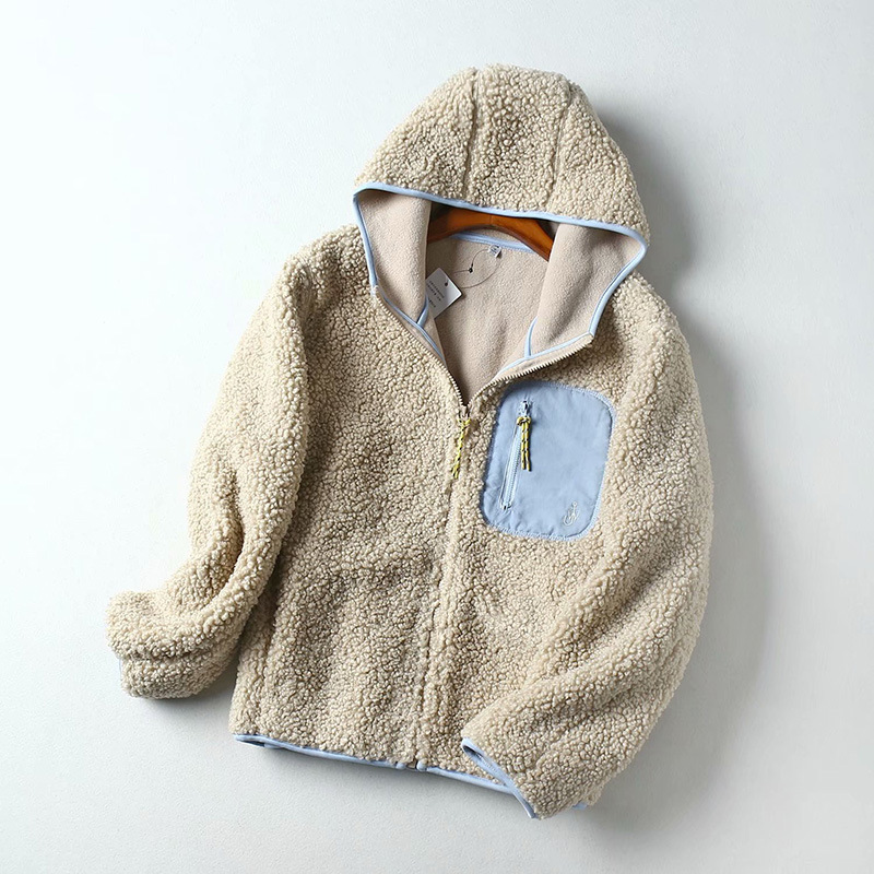 일본 스타일 겨울 여성용 가디건 인조 양털 폴라 플리스 지퍼 후드 모피 코트 W421586 453249스토어 가기