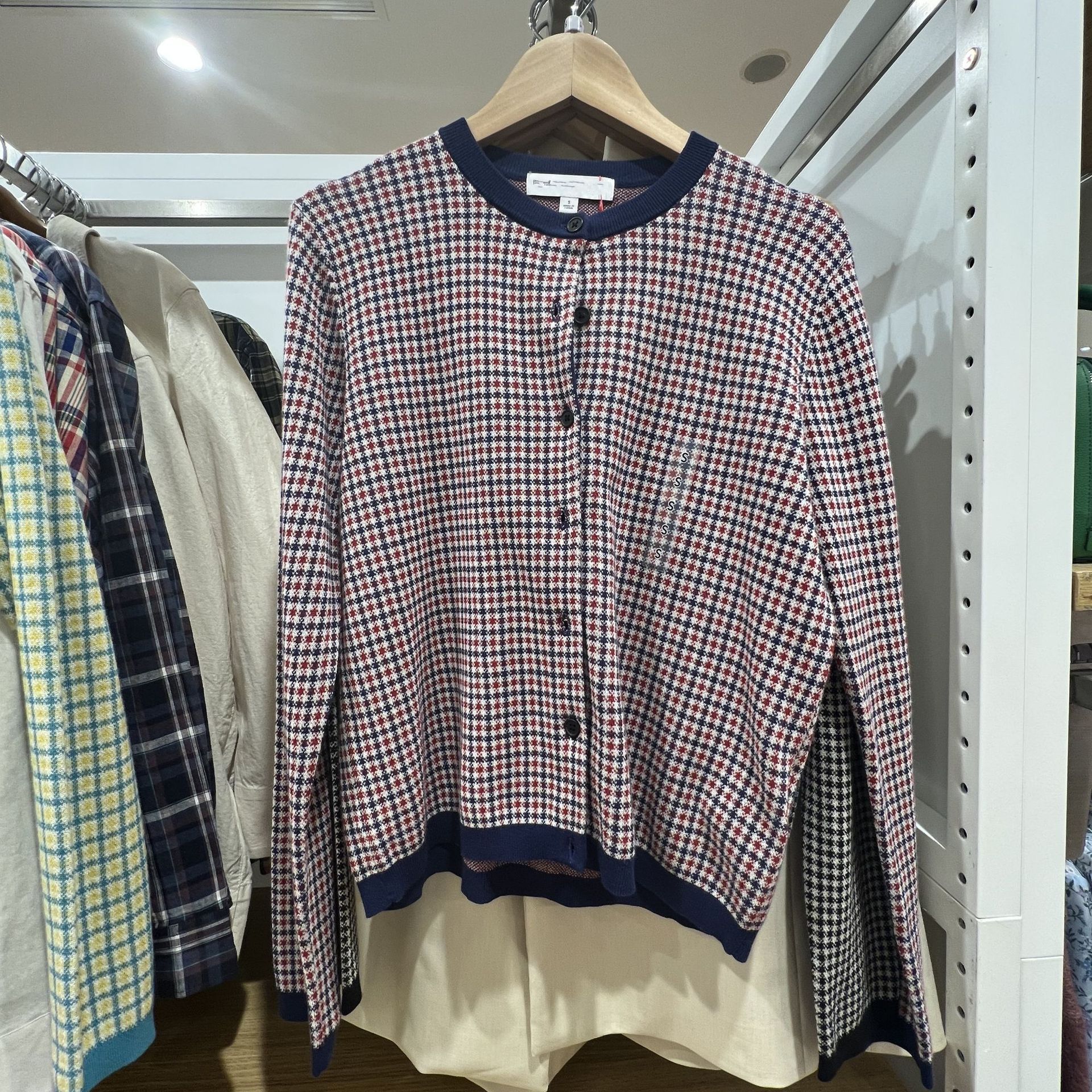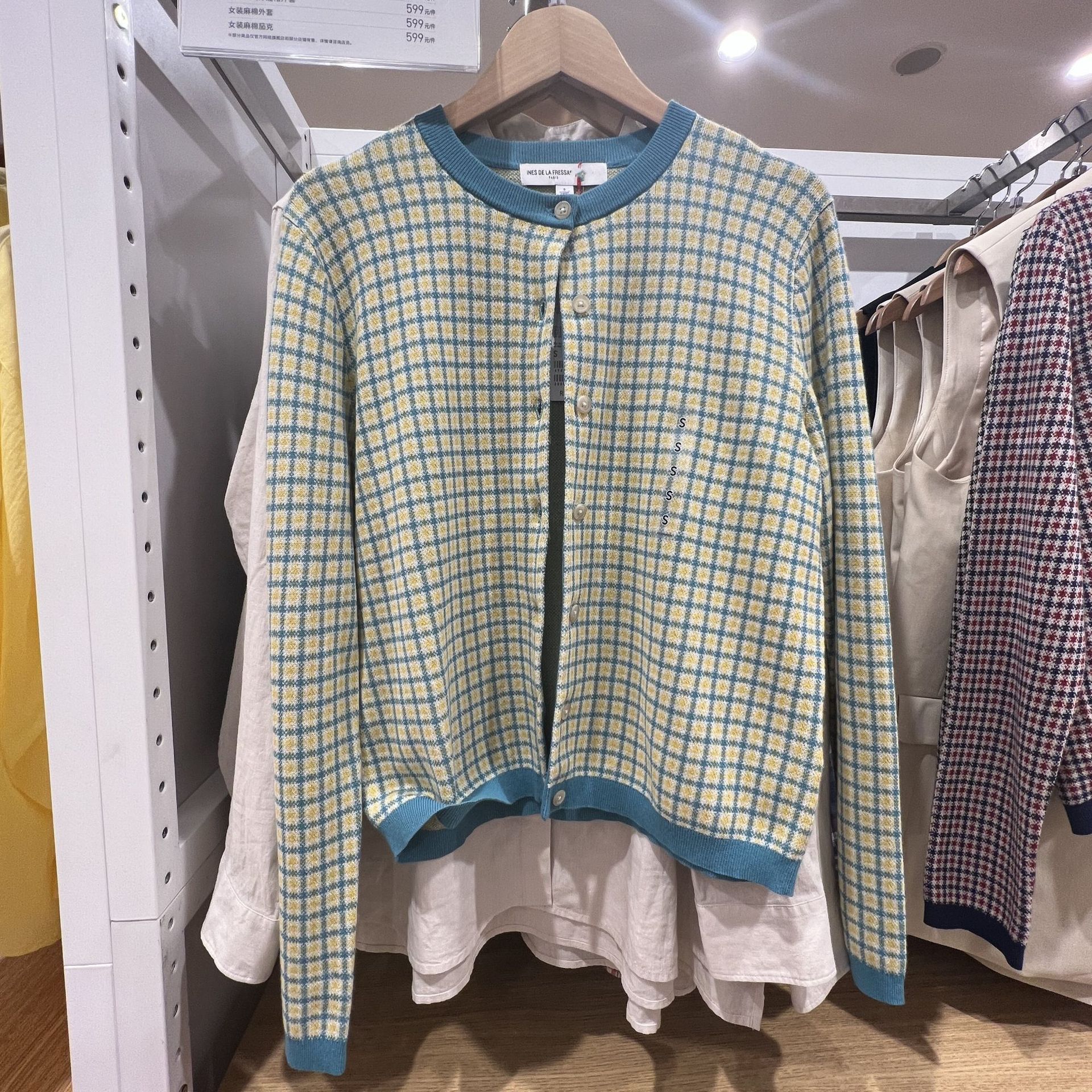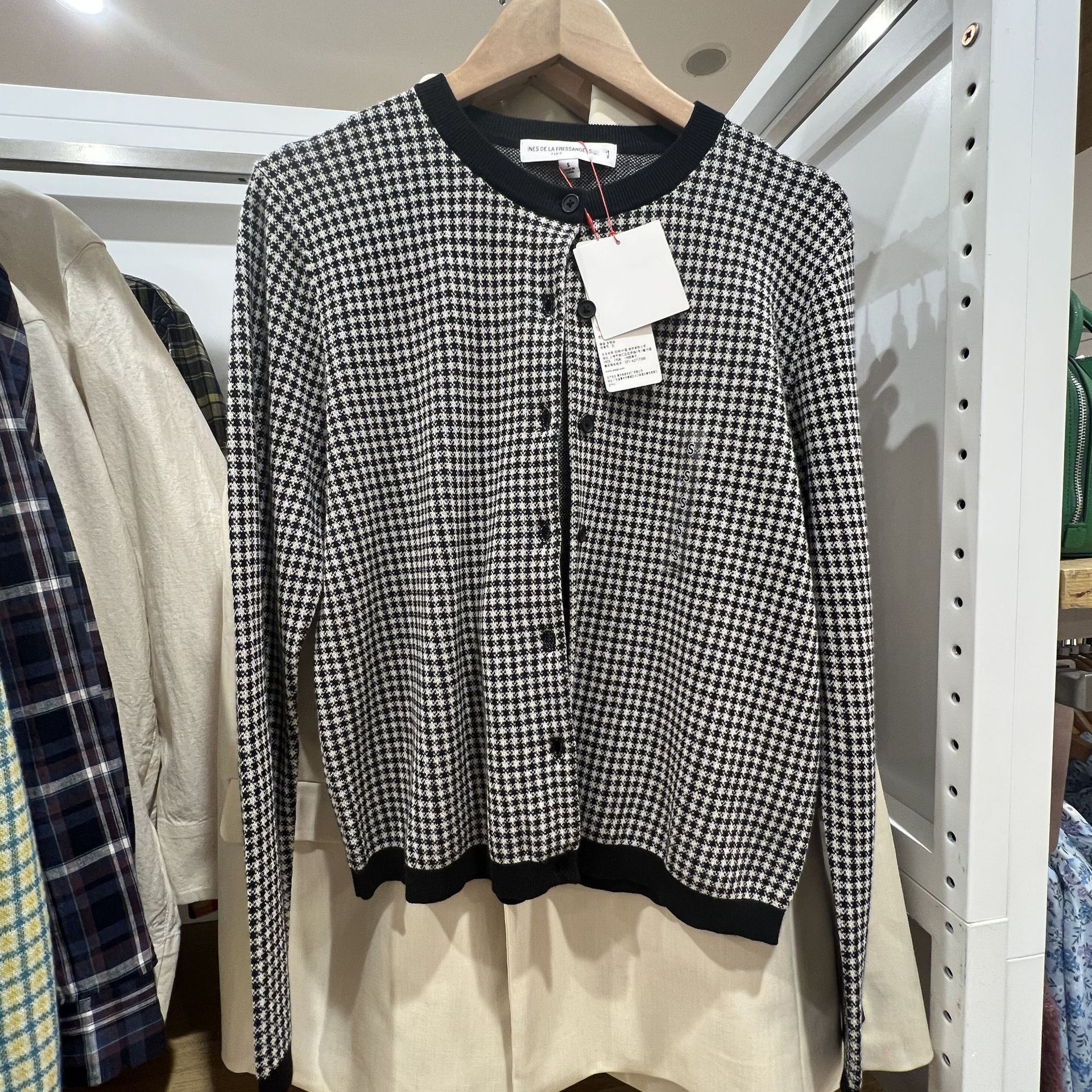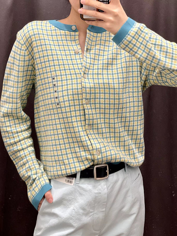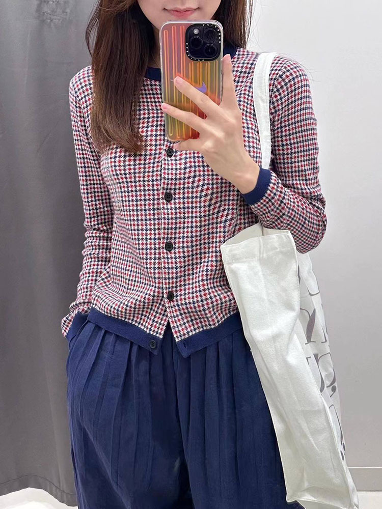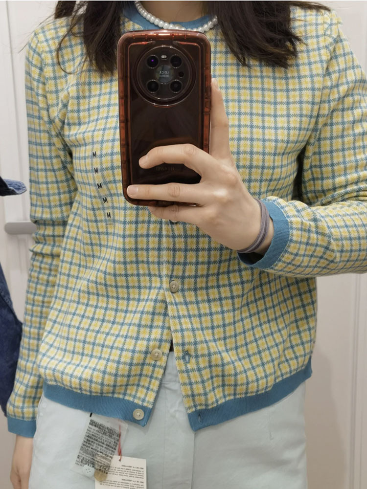 헤어 피팅 룸 2023 봄과 여름 자카드 크루 넥 니트 긴 소매 카디건 여성 스웨터 457349 세대스토어 가기