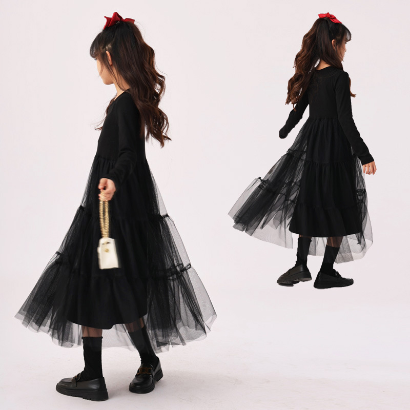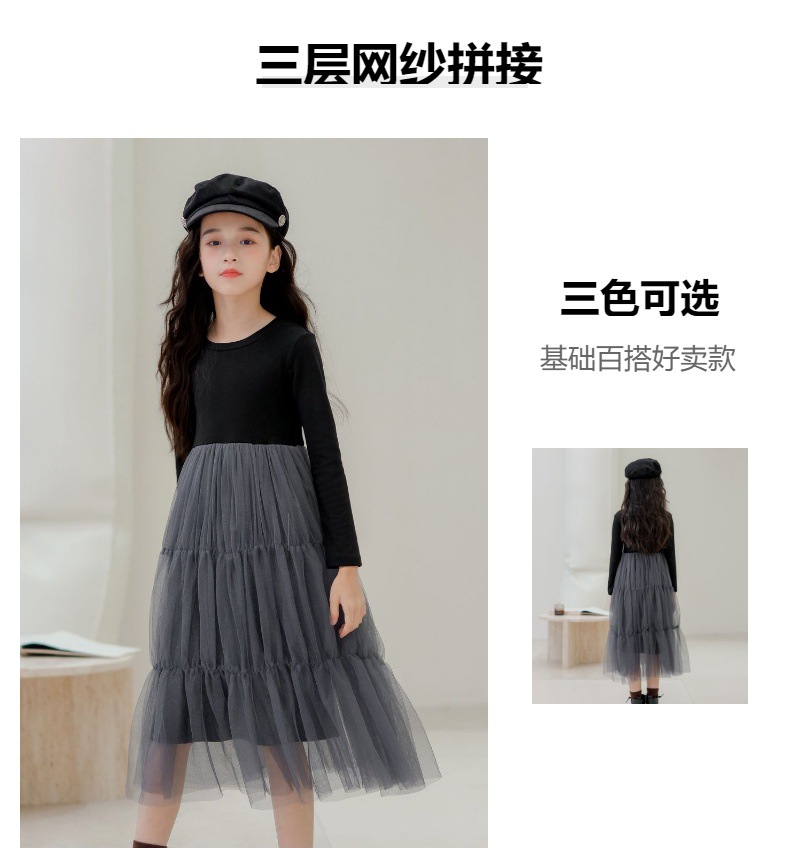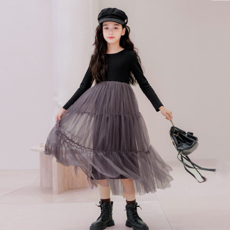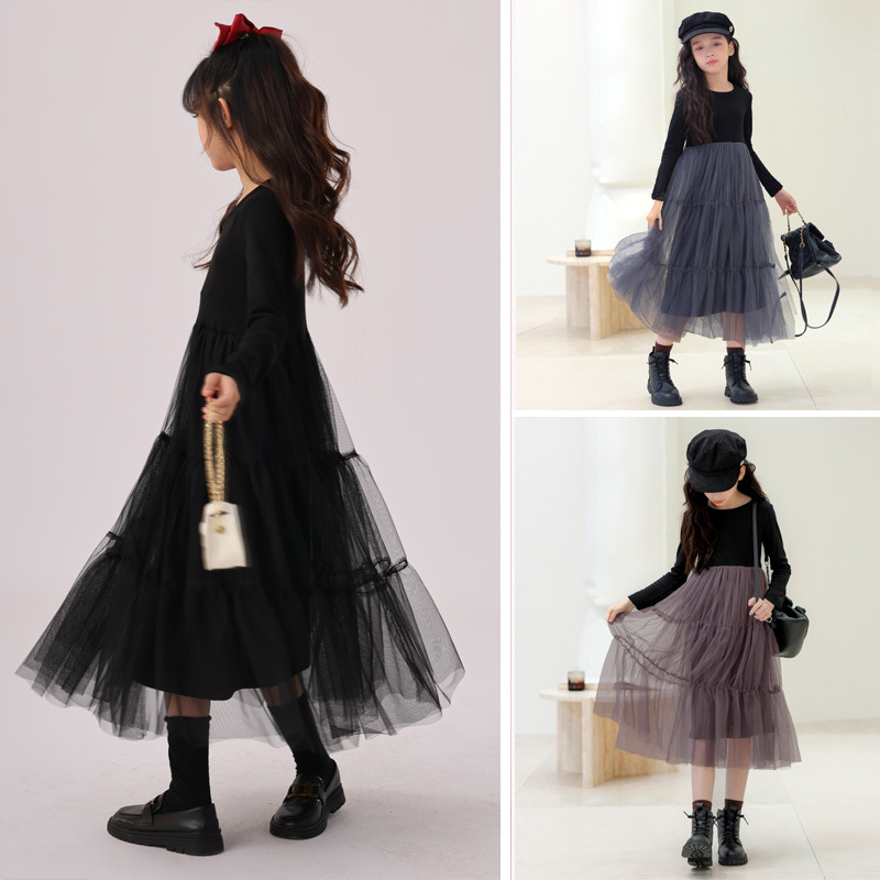 한국 소녀의 면 메쉬 중소 어린이 스티치 원피스 아동 의류 예술적 봄 가을 겨울 큰 스윙 소녀의 치마