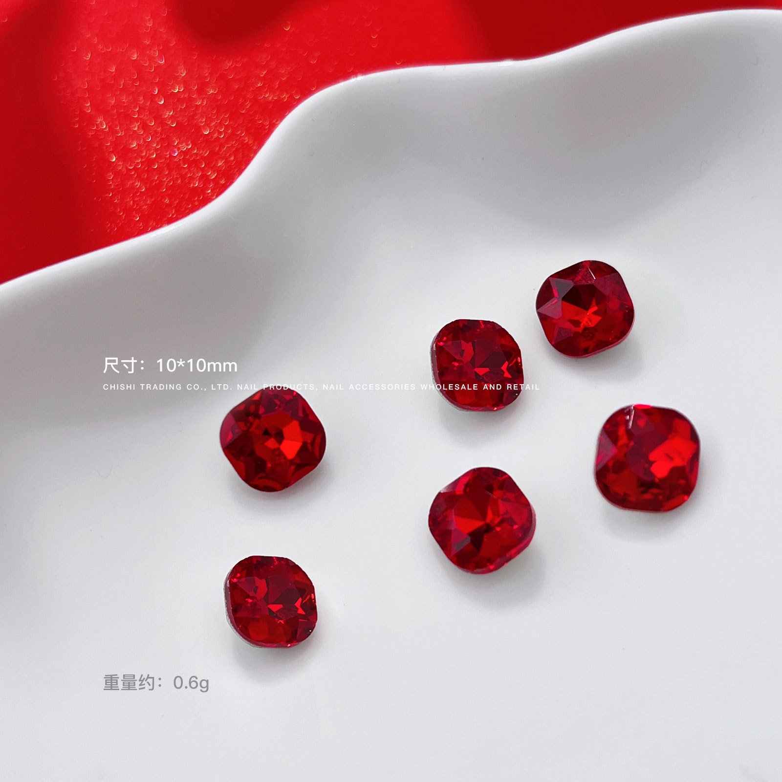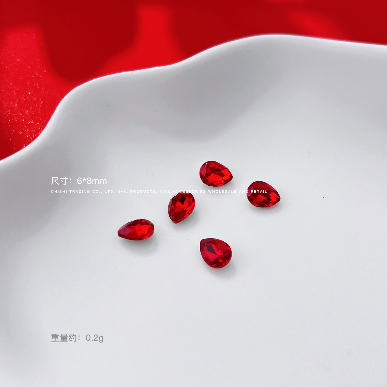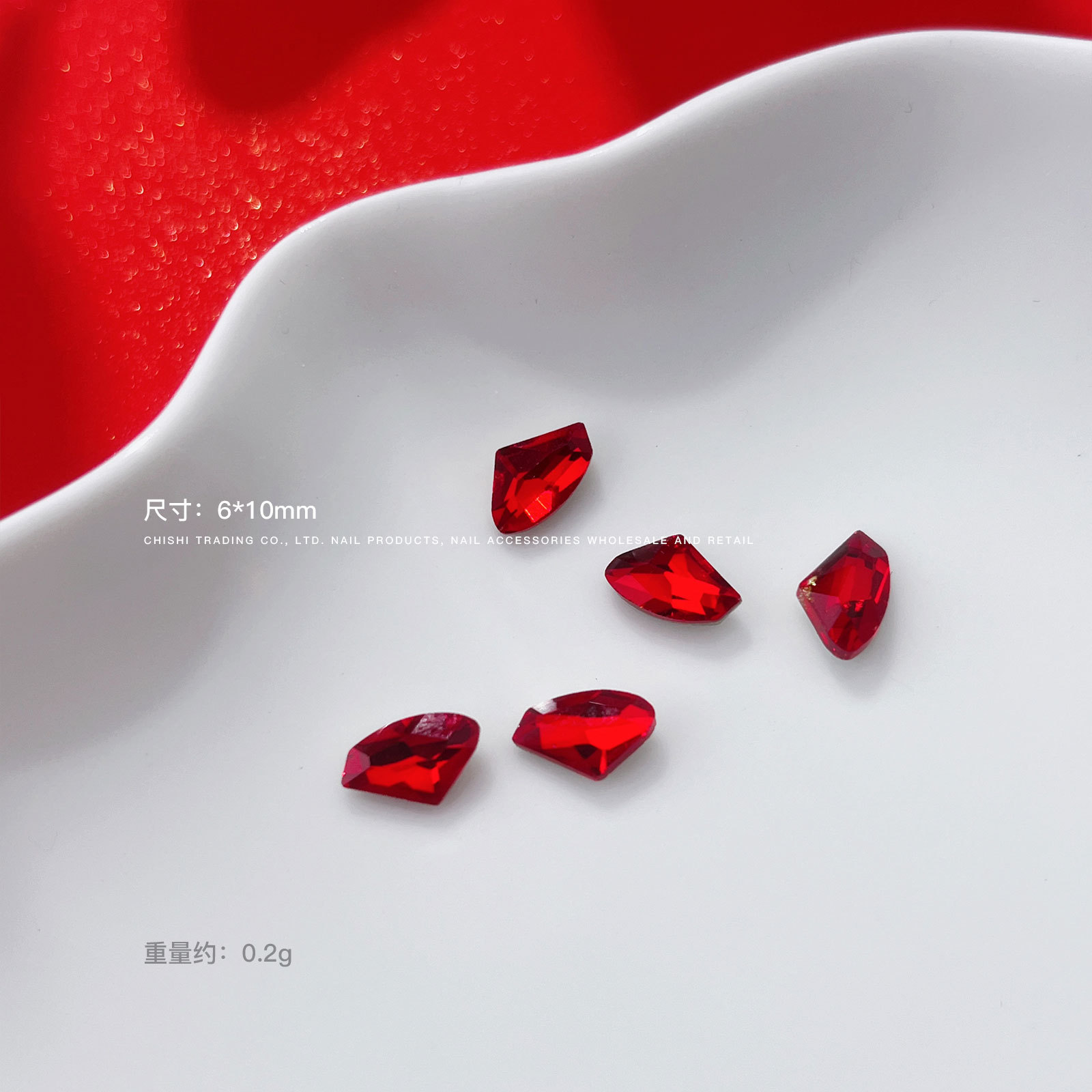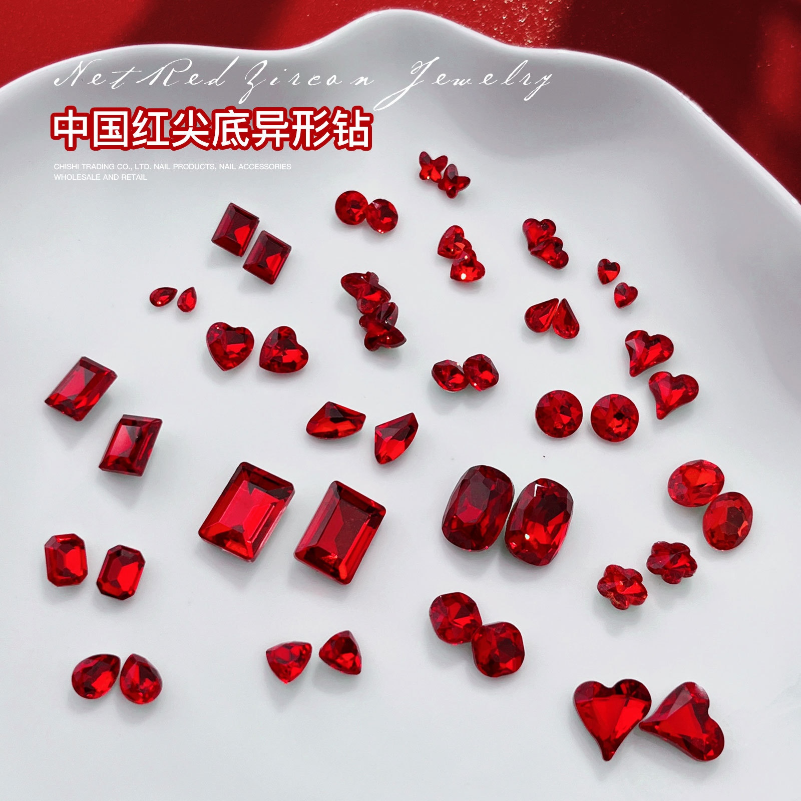 빨간 뾰족한 바닥 모양의 다이아몬드 네일 아트 보석 신부 갑옷 비뚤어진 심장 지방 사각형 다이아몬드 중국 빨간 손톱 쇠고기 피 레드 다이아몬드 도매
