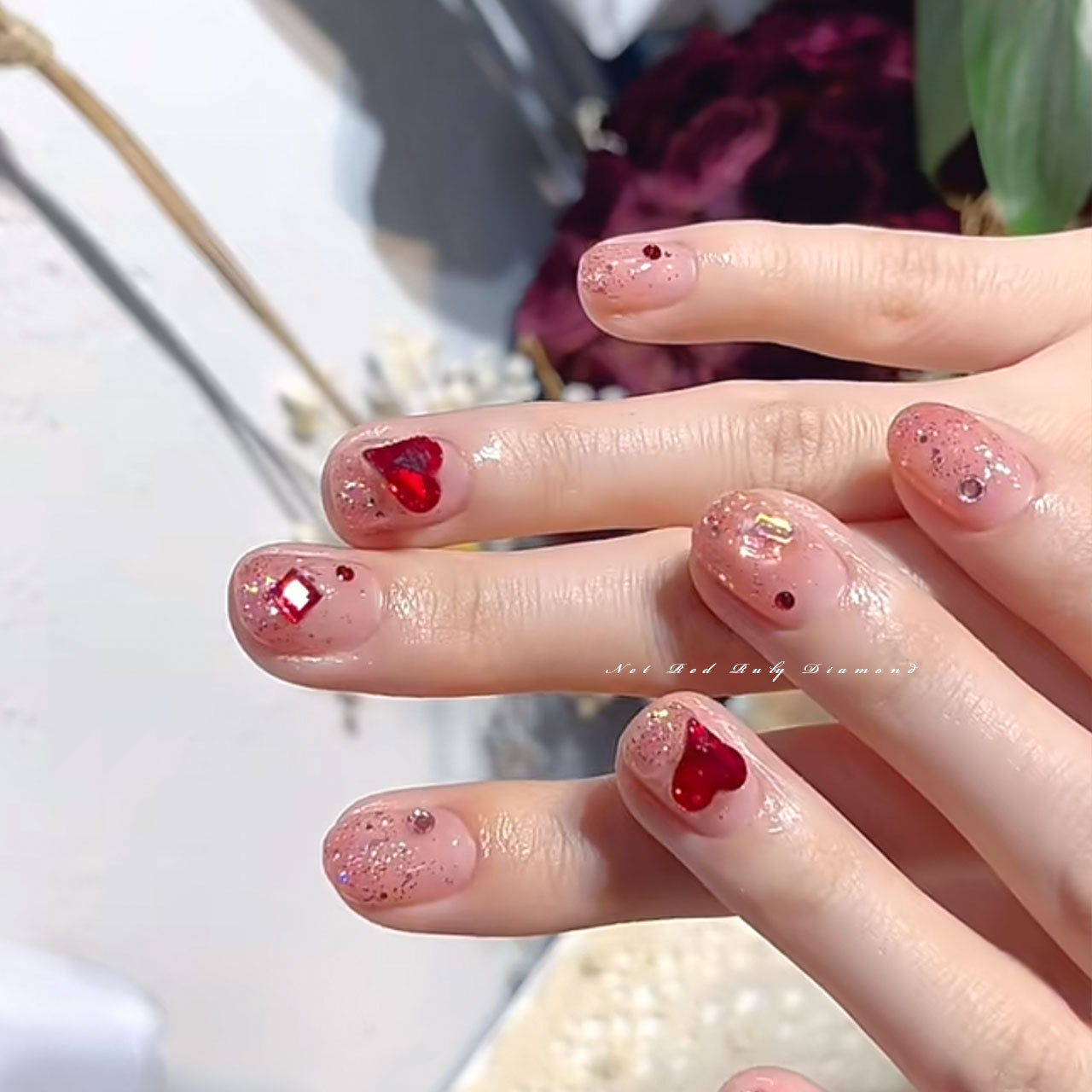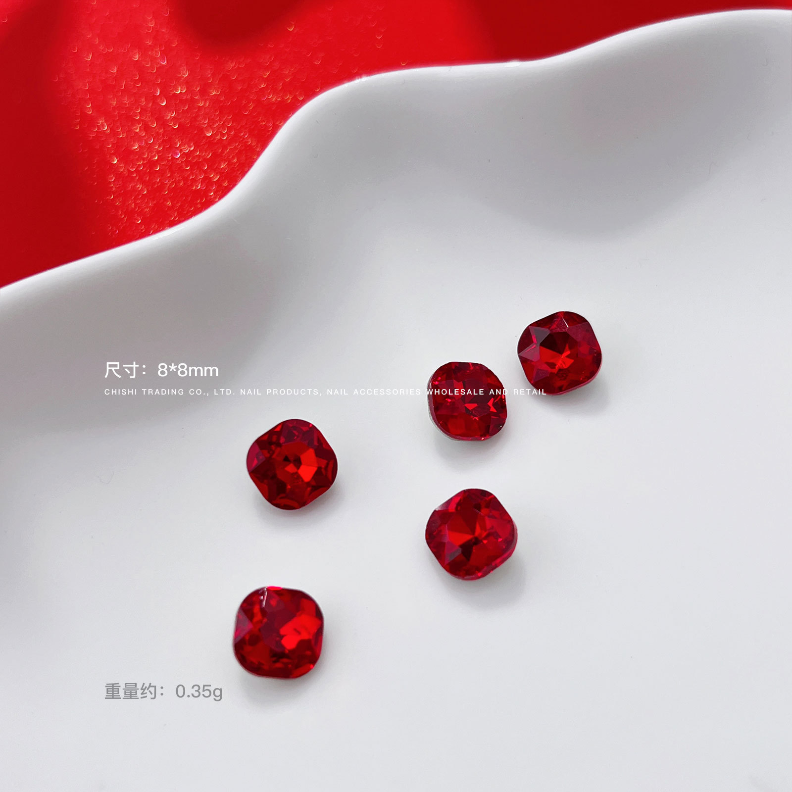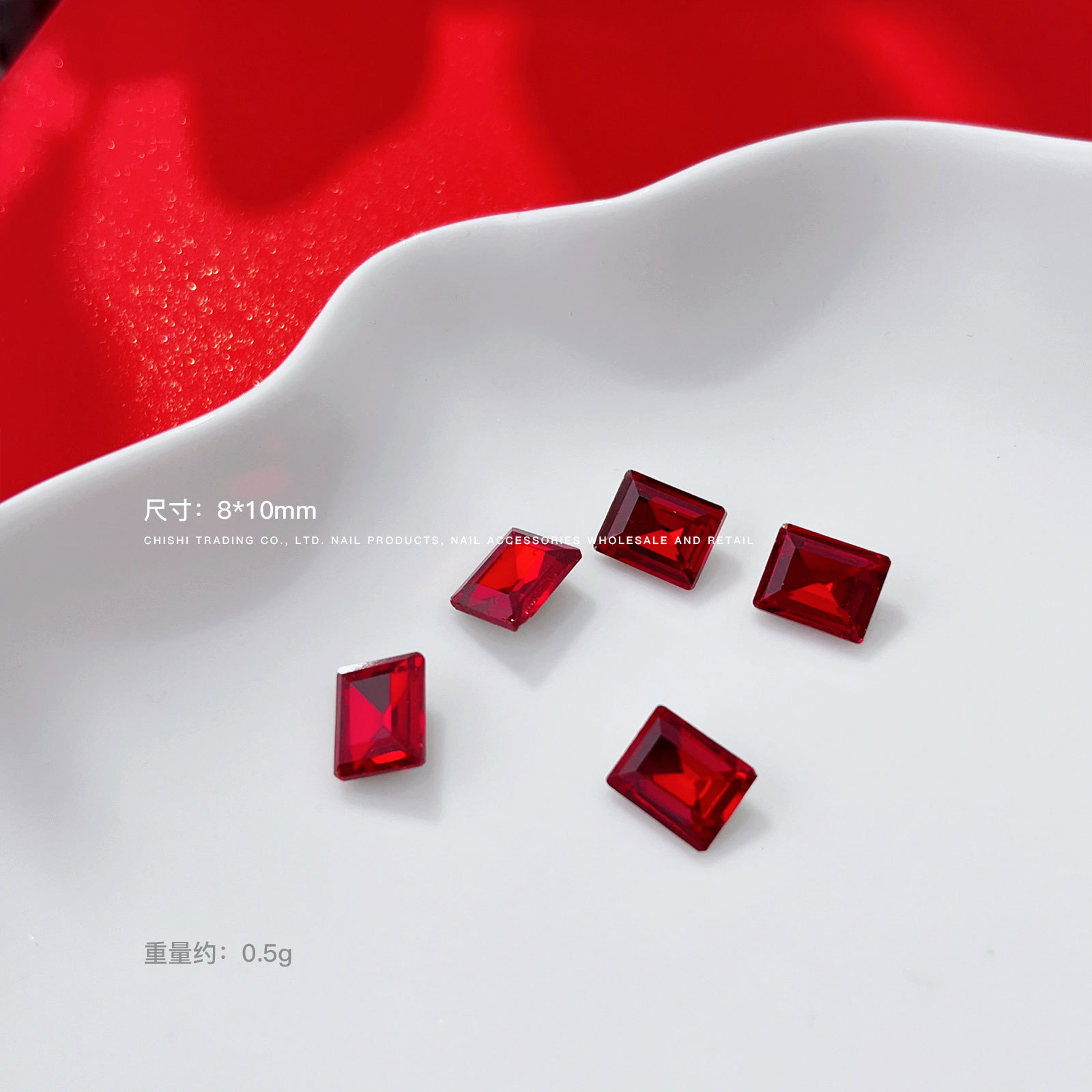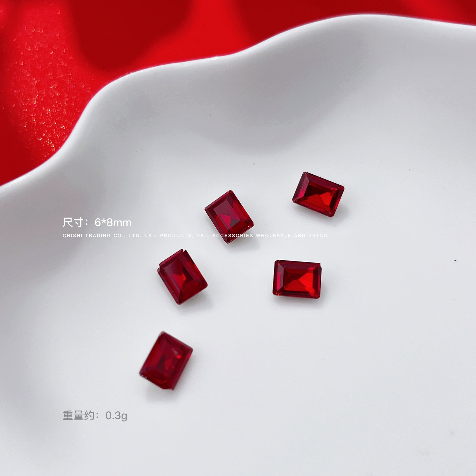 빨간 뾰족한 바닥 모양의 다이아몬드 네일 아트 보석 신부 갑옷 비뚤어진 심장 지방 사각형 다이아몬드 중국 빨간 손톱 쇠고기 피 레드 다이아몬드 도매