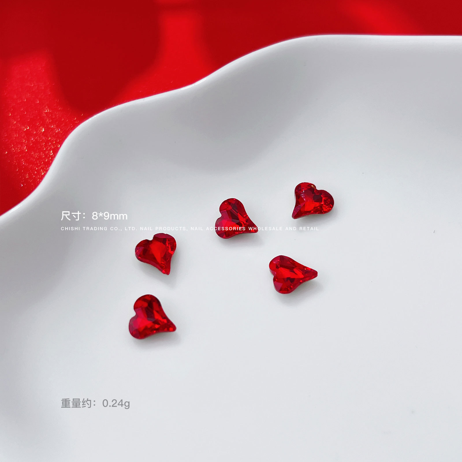 • 싱글 레드 비뚤어진 심장 8*9mm