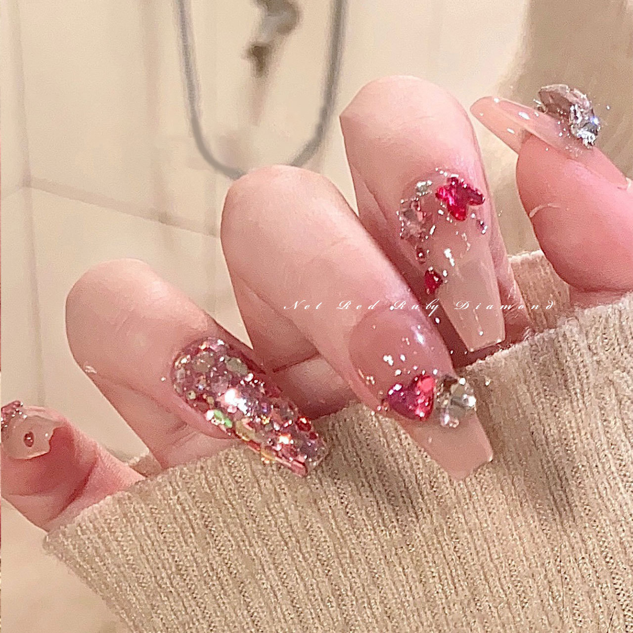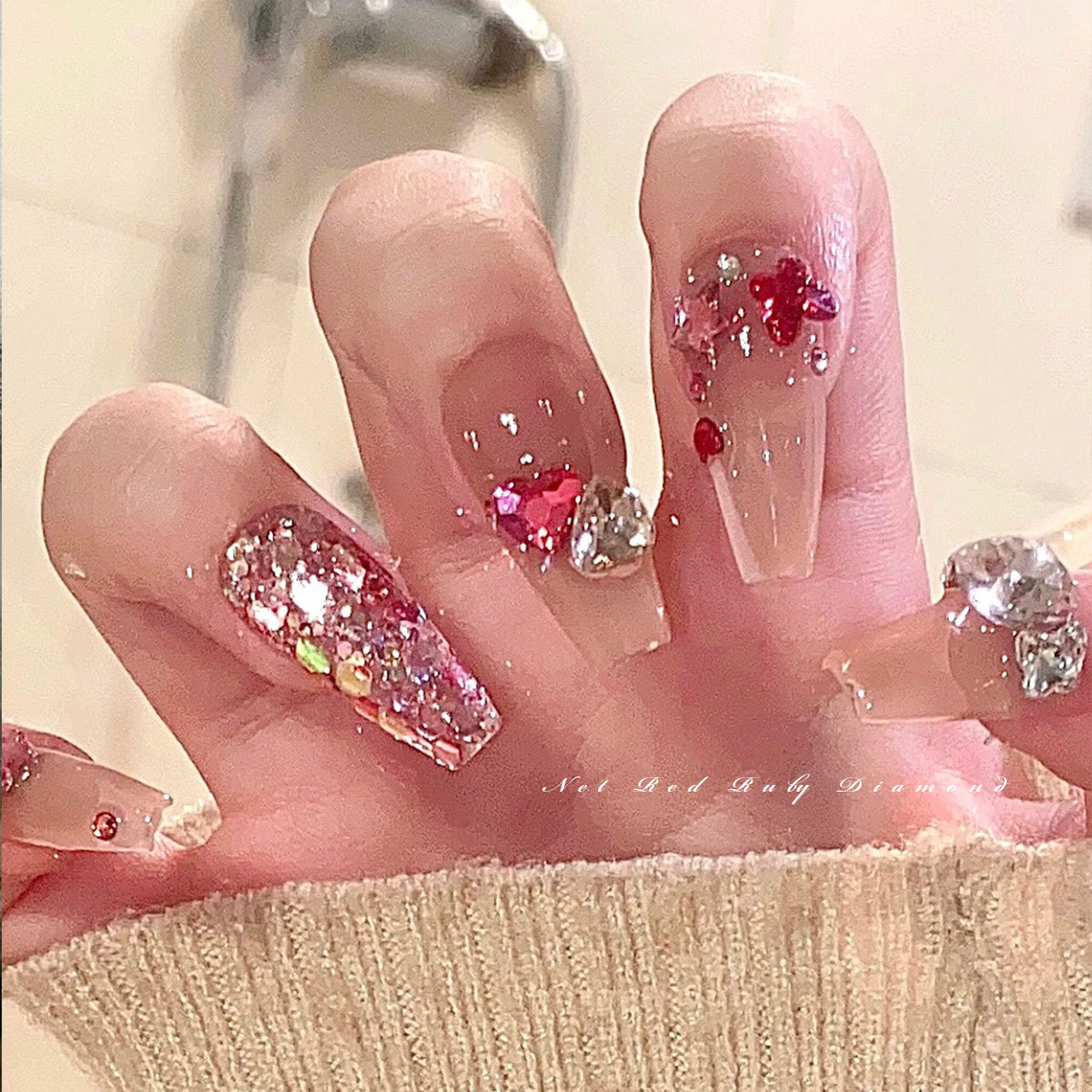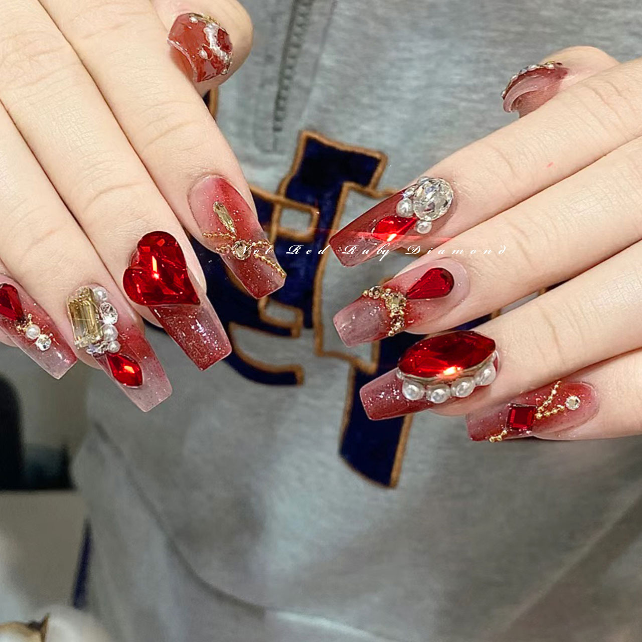 빨간 뾰족한 바닥 모양의 다이아몬드 네일 아트 보석 신부 갑옷 비뚤어진 심장 지방 사각형 다이아몬드 중국 빨간 손톱 쇠고기 피 레드 다이아몬드 도매스토어 가기