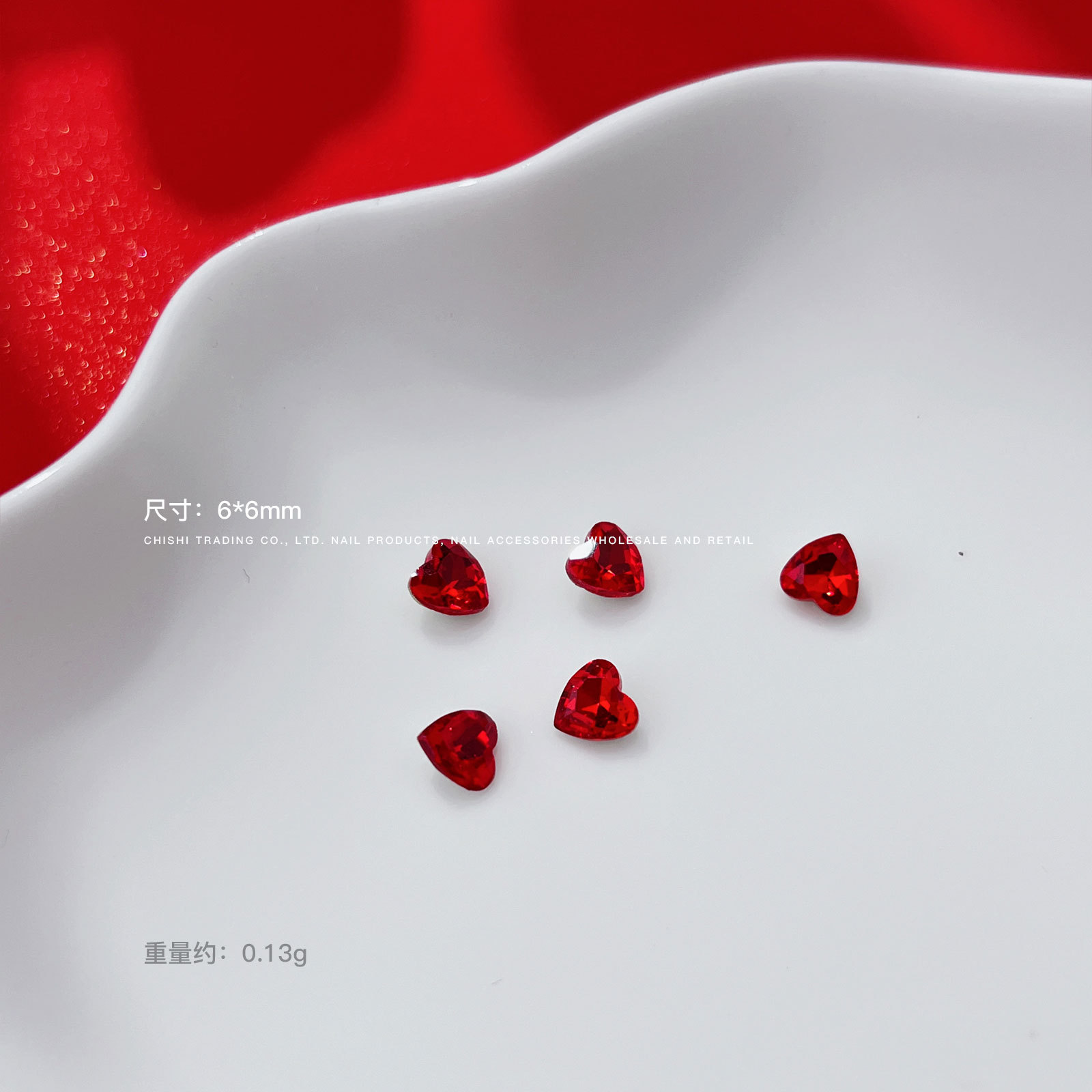 • 싱글 레드 비뚤어진 심장 6*7mm