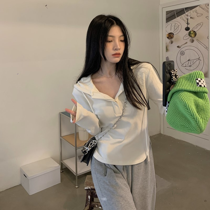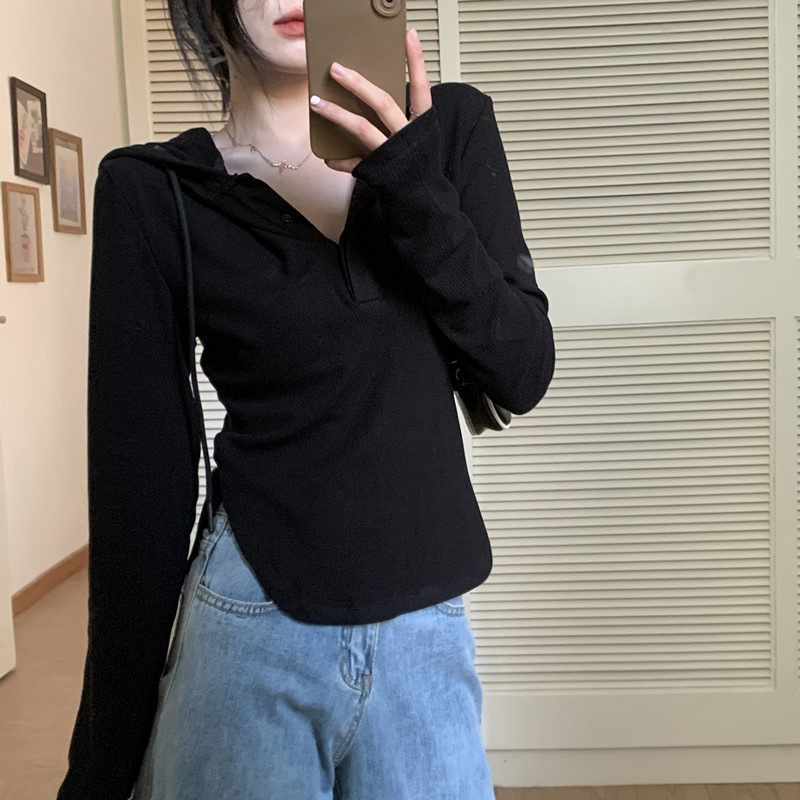 폴리에스터 피쉬 스케일 후드 티셔츠 여성용 가을과 겨울 불규칙한 슬림핏 캐주얼 탑 디자인 센스 긴팔 스웨터 트렌디스토어 가기