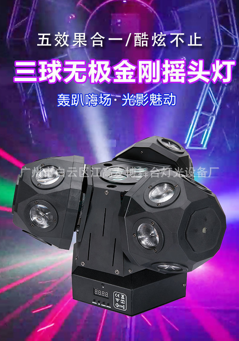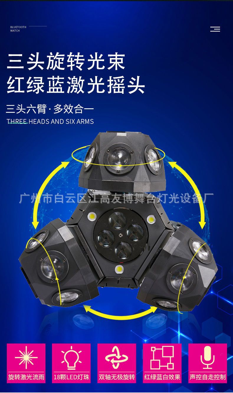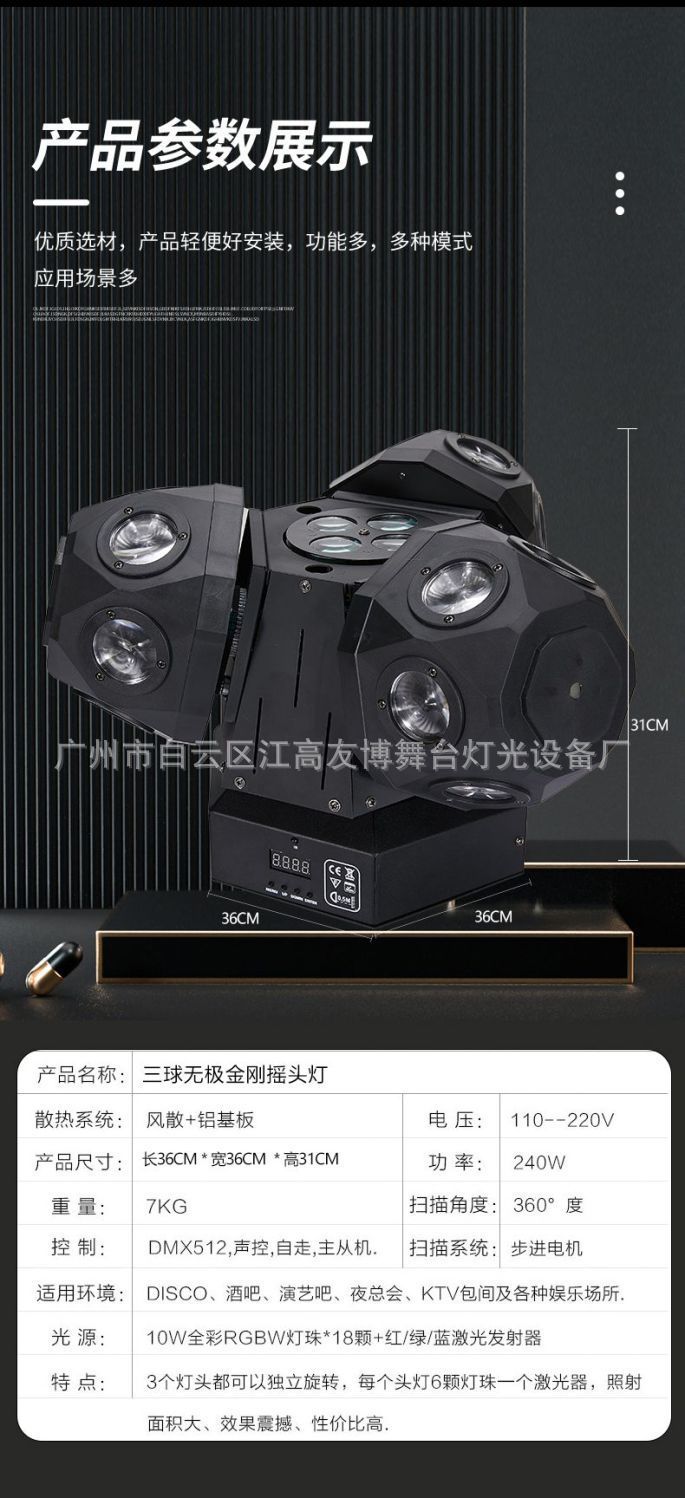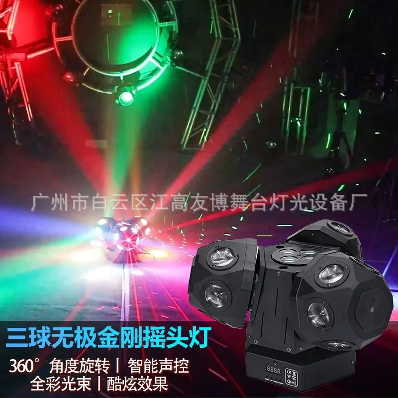 무대 18개의 단일 및 이중 헤드 3볼 암 무단계 다이아몬드 빔 레이저 이동 헤드 룸 바 회전 플래시