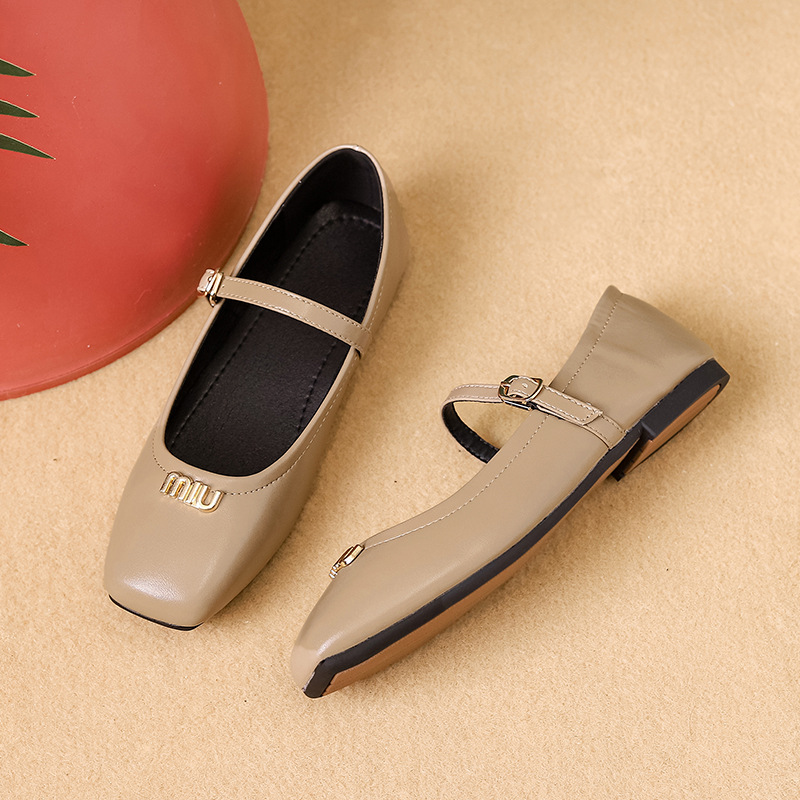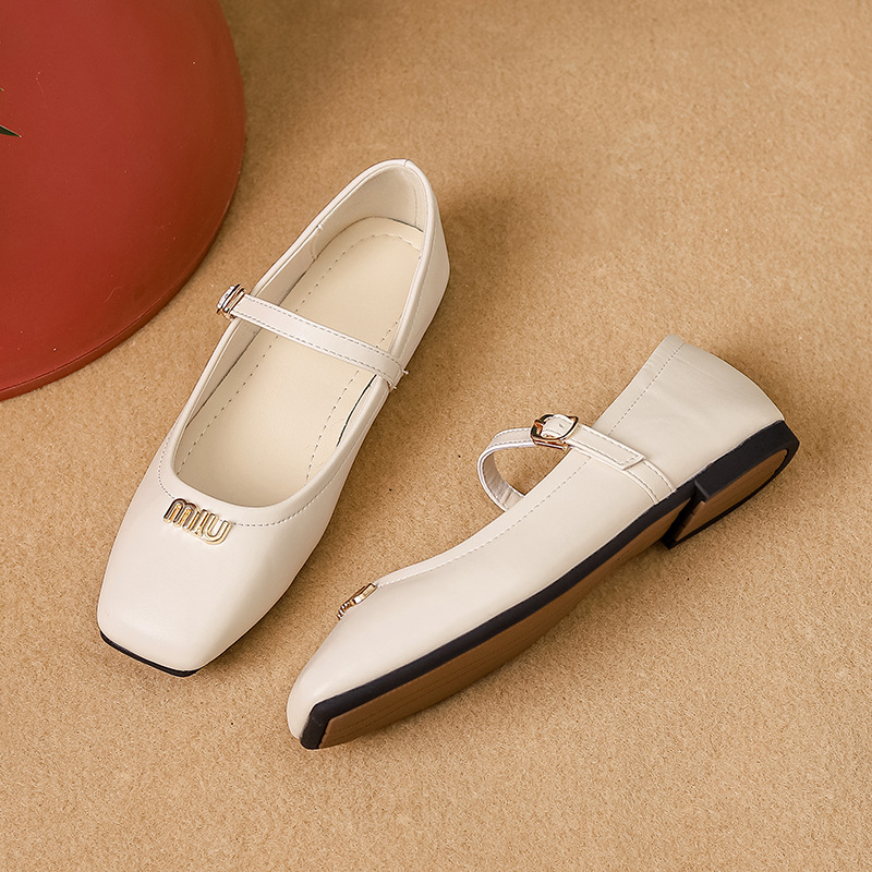 블랙 얕은 입 메리 제인 슈즈 플랫 슈즈 향기로운 스타일 여성용 틈새 디자인 작업 신발 스트레이트 버클 스퀘어 토 펌프스