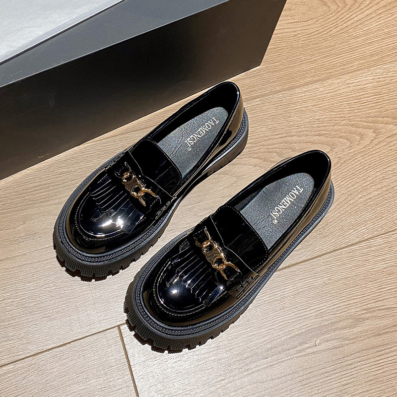 668-39 Huiedong Yixinda 복고풍 영국 스타일 로퍼 술 두꺼운 굽 두꺼운 밑창 높이 증가 여성용 작은 가죽 신발